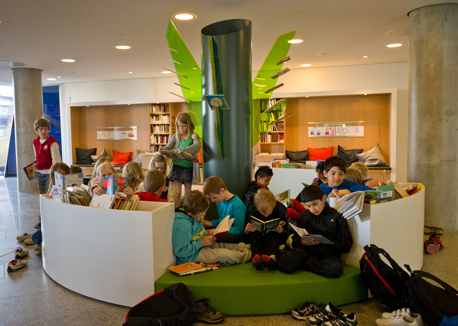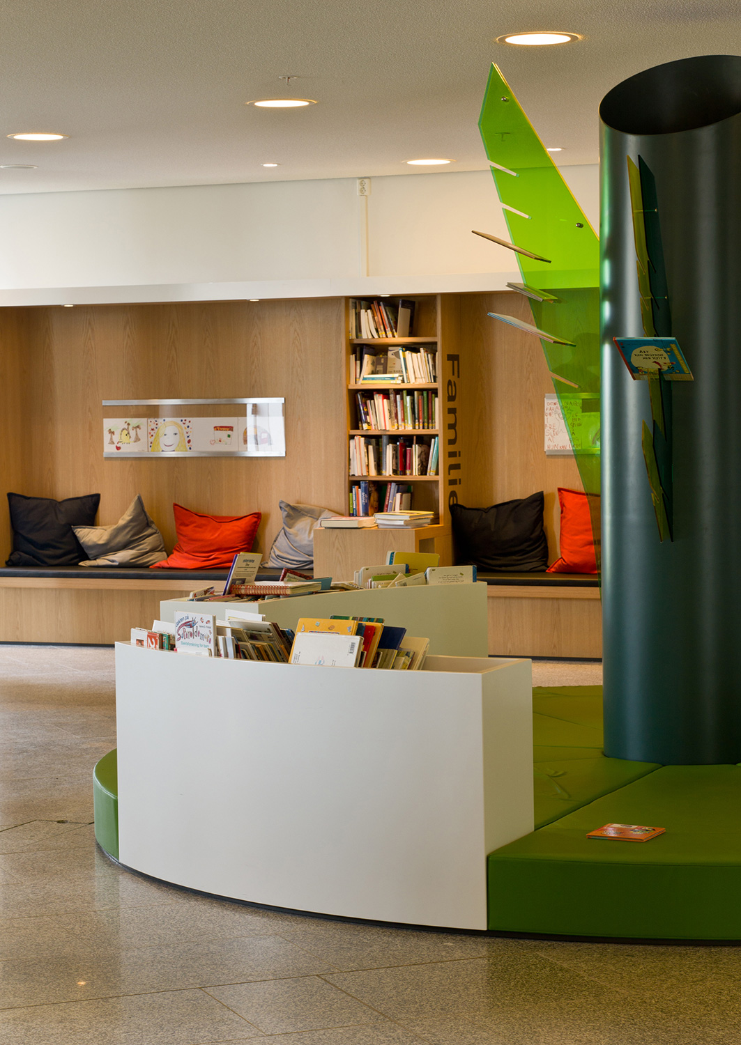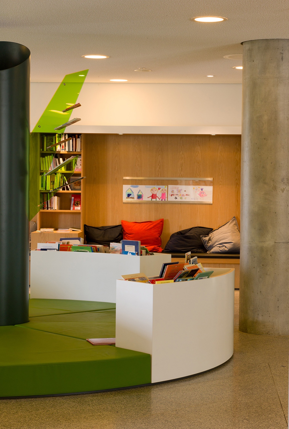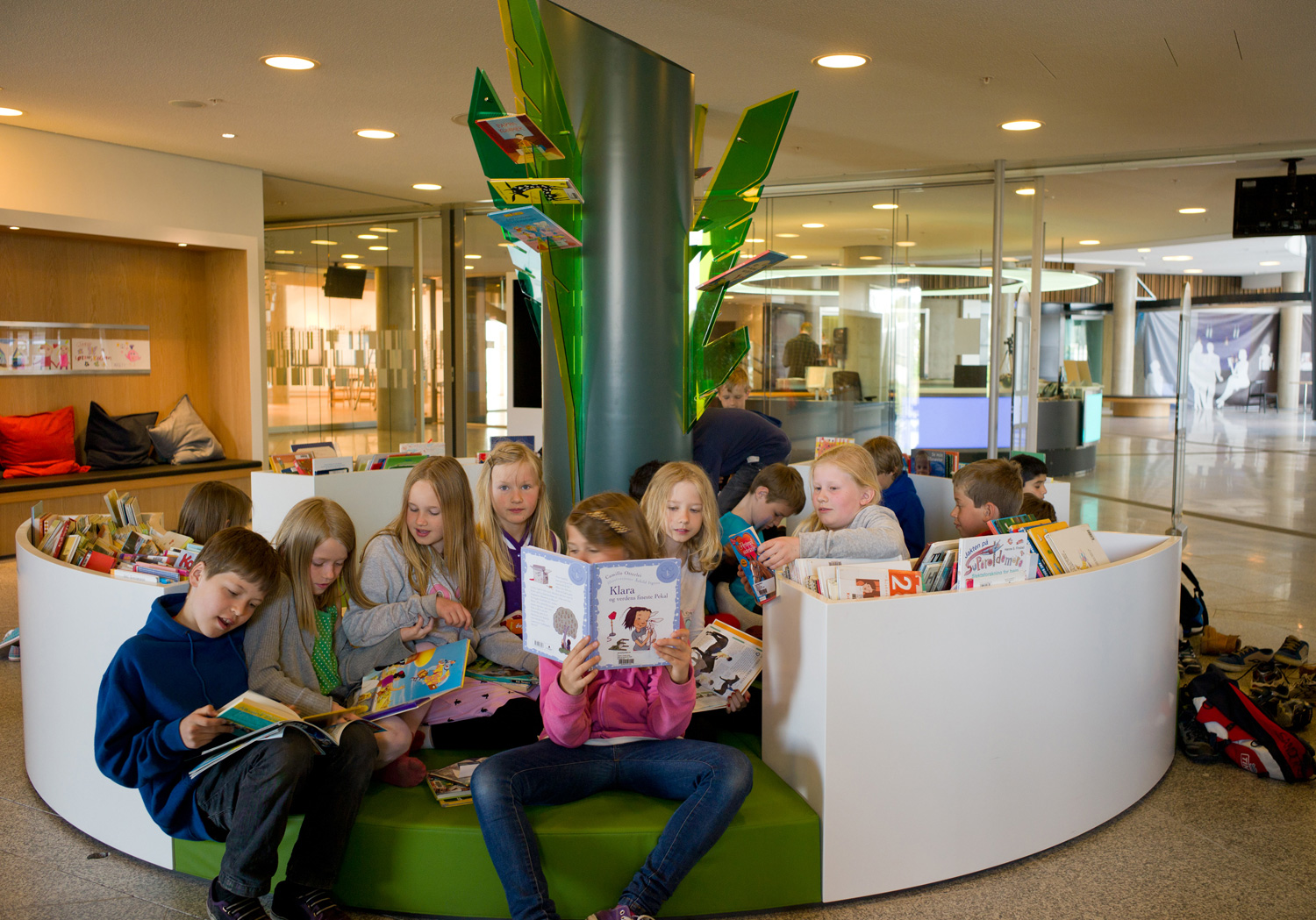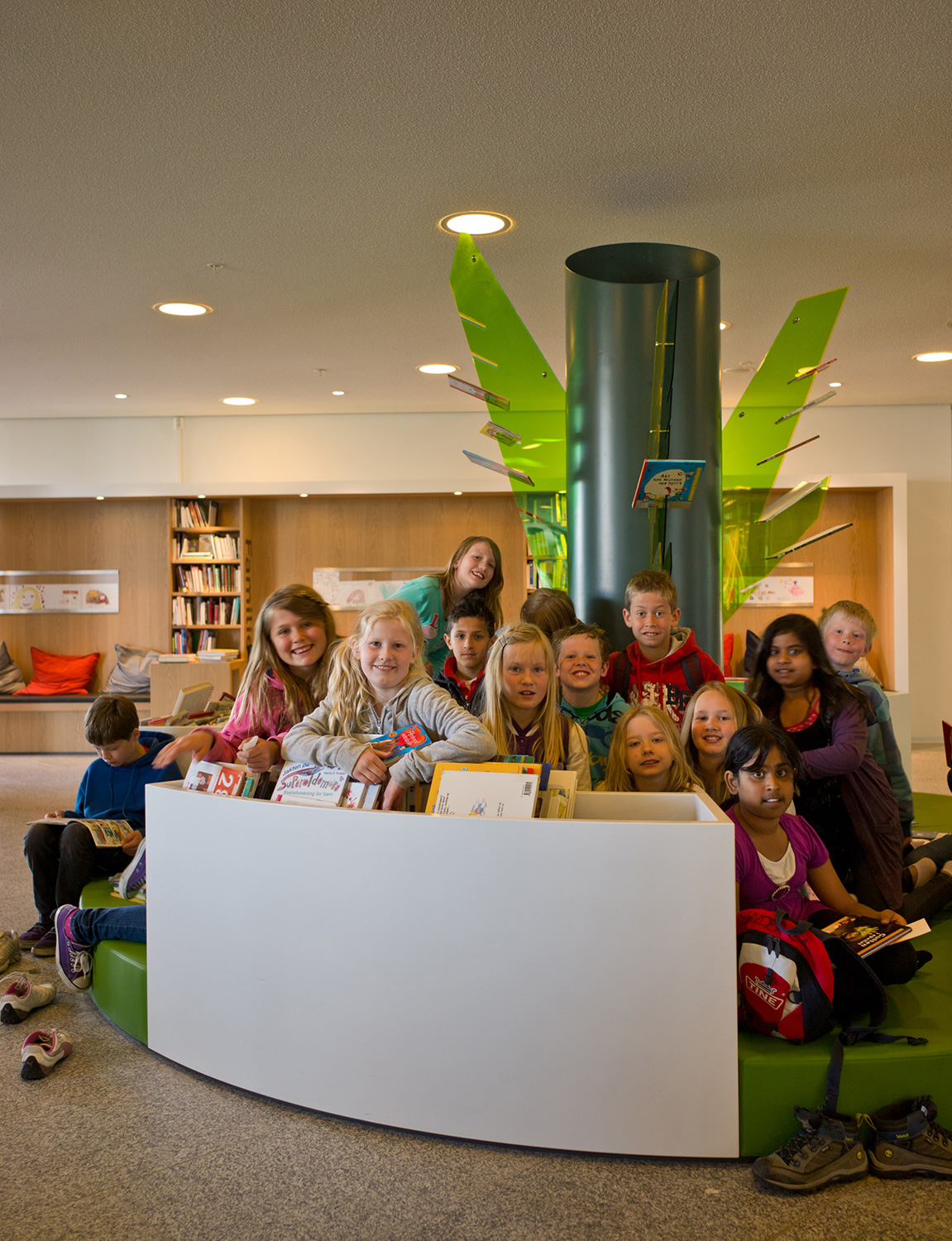 Arkitekterna utmanades nämligen av bibliotekschefen Berit Bjørkild att designa hennes drömhylla. Missionen var att designa ett hyllsystem med hyllplan som kunde ”sälja” böckerna, inspirerad av kommerciella bokhandlare. Specialdesignade hyllor, belysning och unika inredningslösningar skulle vara med att frontexponera böcker på det mest optimala sättet. De specialdesignade hyllorna lutar anigen bakåt, så man kan frontexponera böckerna utan att de ramlar av.