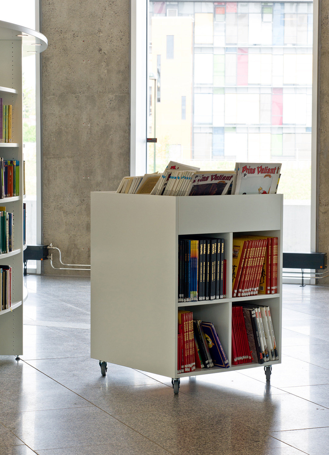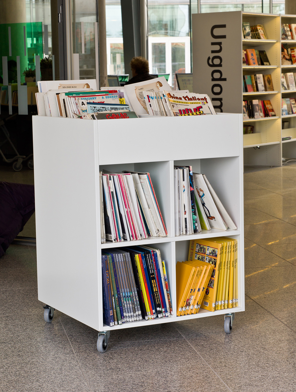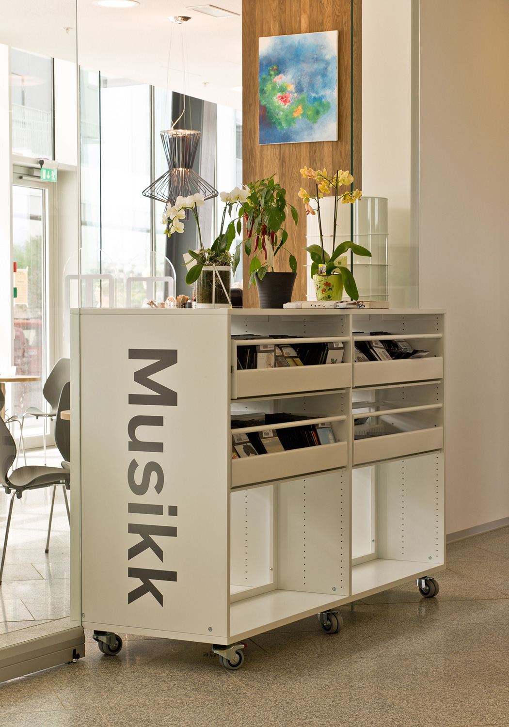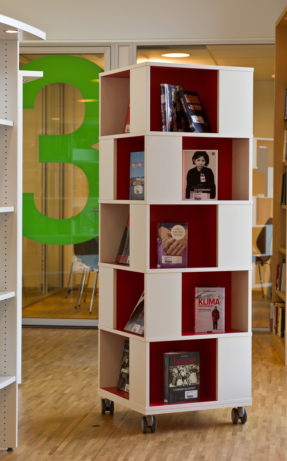 Det nya biblioteket i Lørenskog är designat av arkitekterna Andersen & Flåte och består av tre ljusa och rymliga våningar, som bäst kan beskrivas som en dröm för både besökare och medarbetare. Men det är inredningsdetaljerna och hyllsystemet som gör den stora skillnaden för användarupplevelsen.