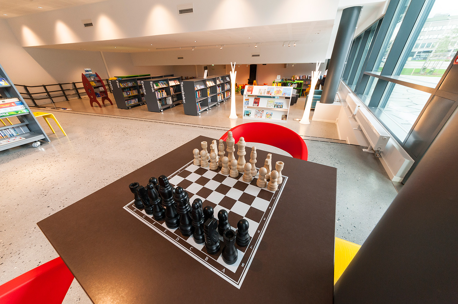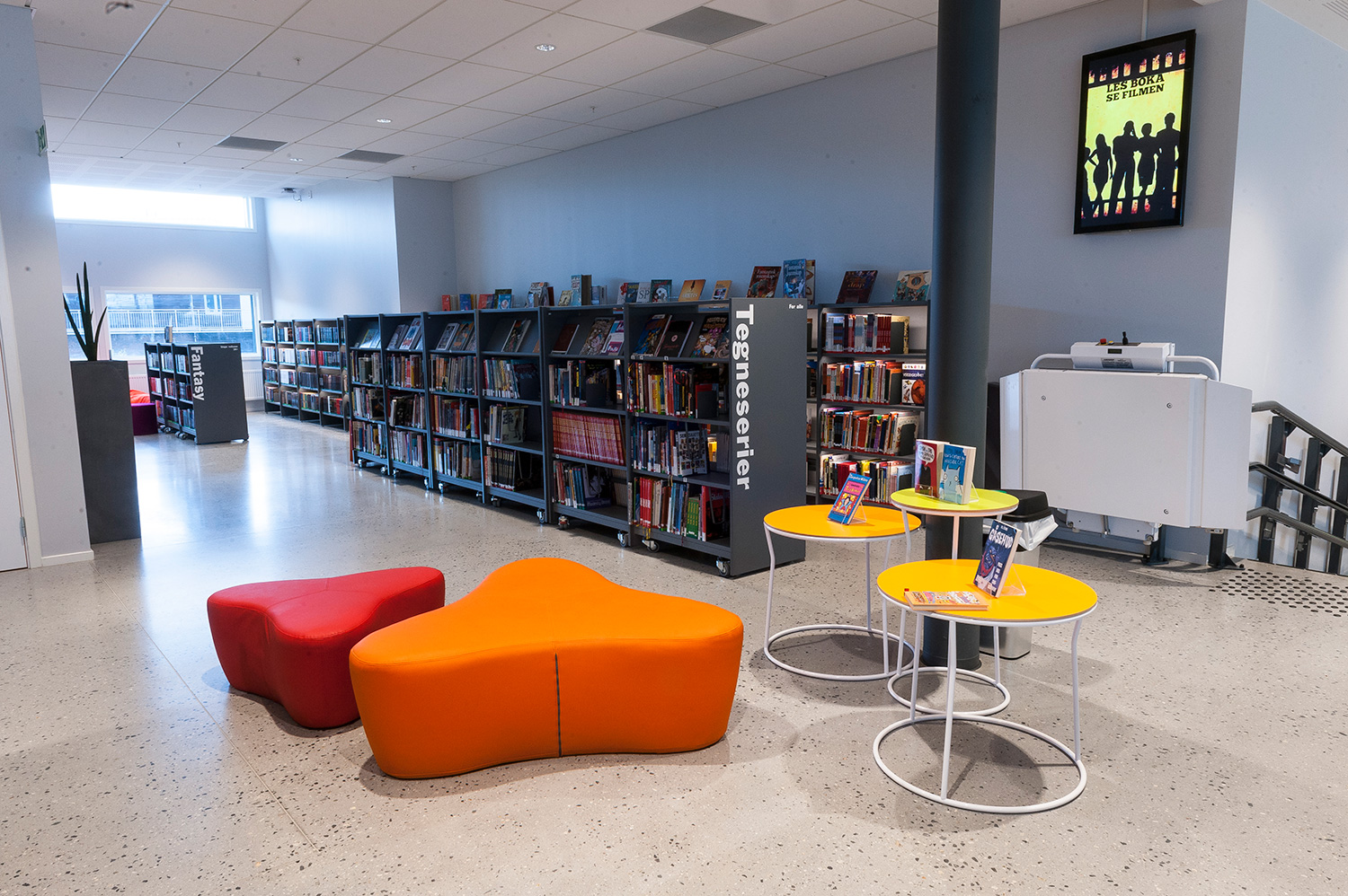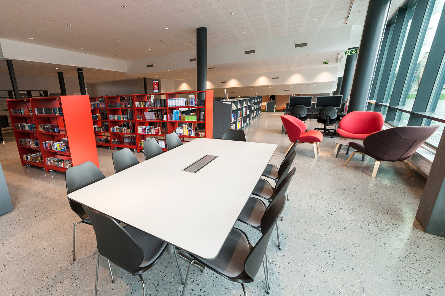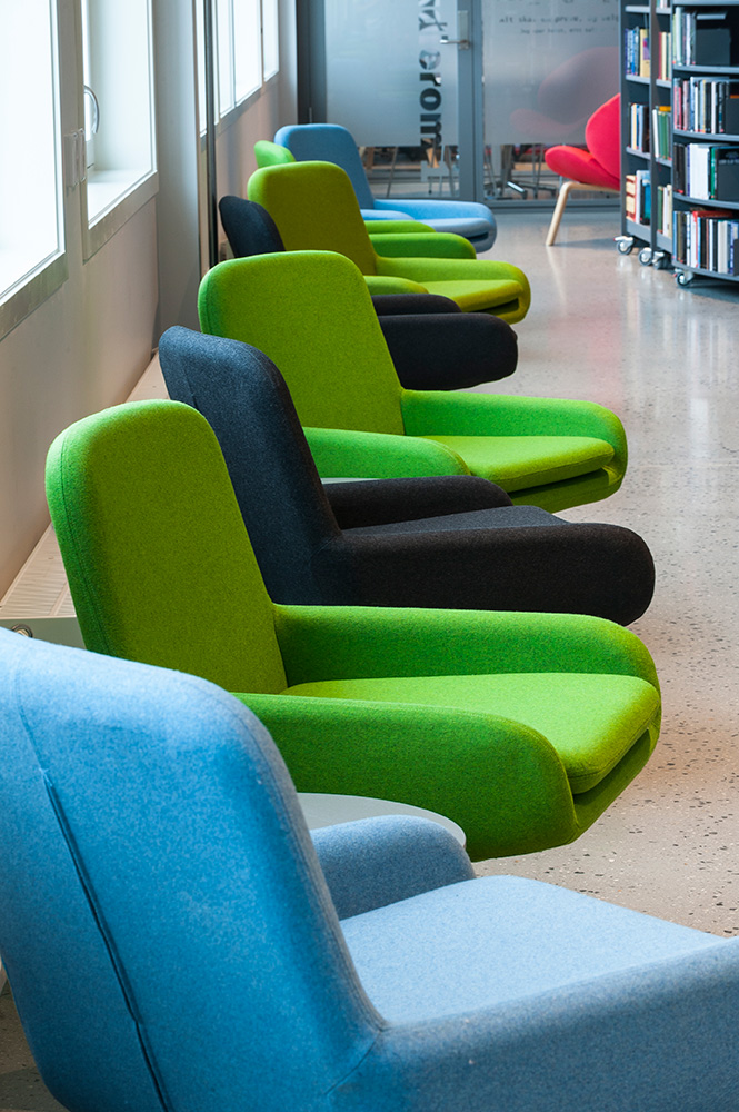 Vårt systerbolag, BS Eurobib, har försett biblioteket med hyllsystem, möbler och interaktiva lösningar.