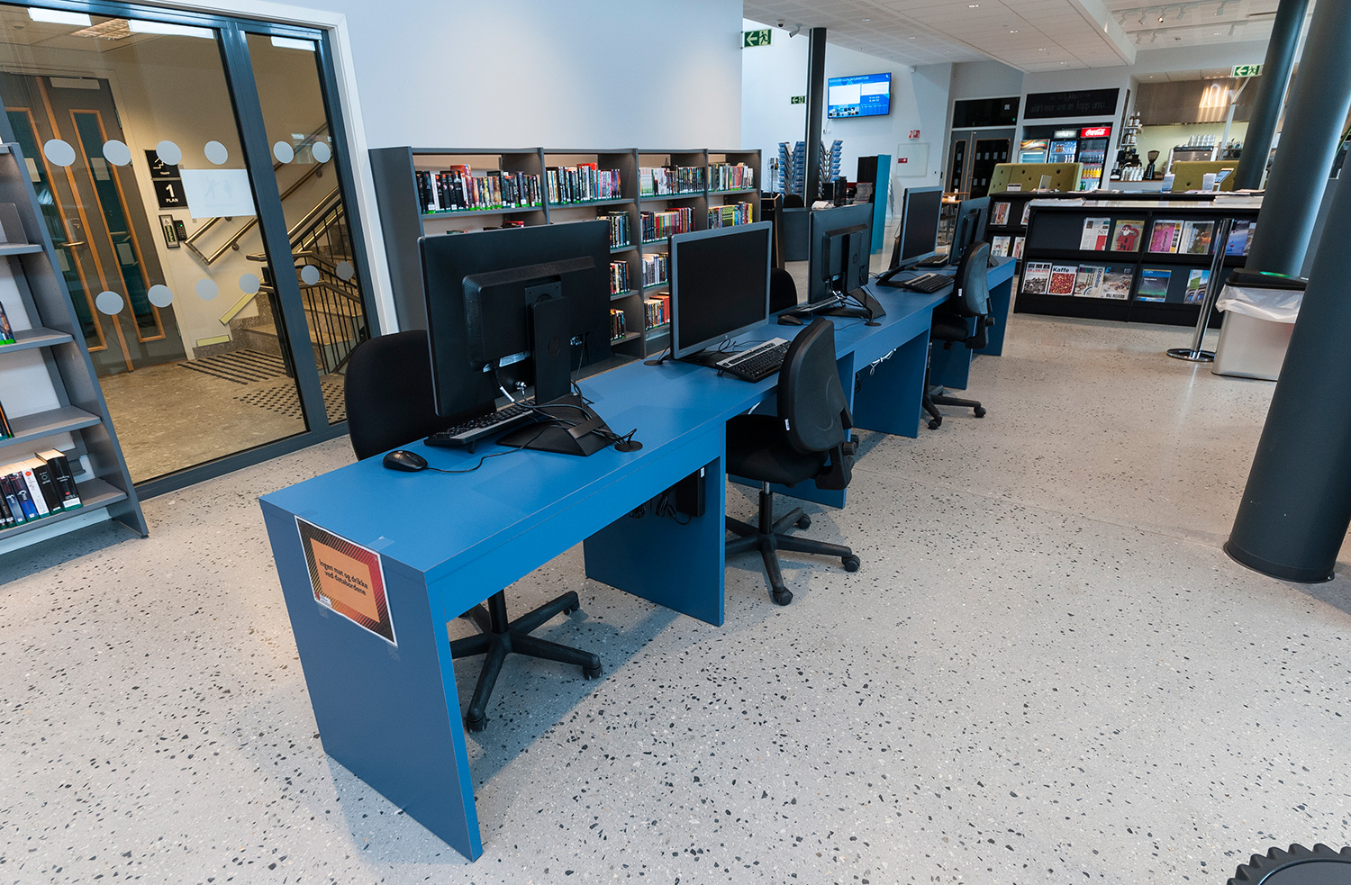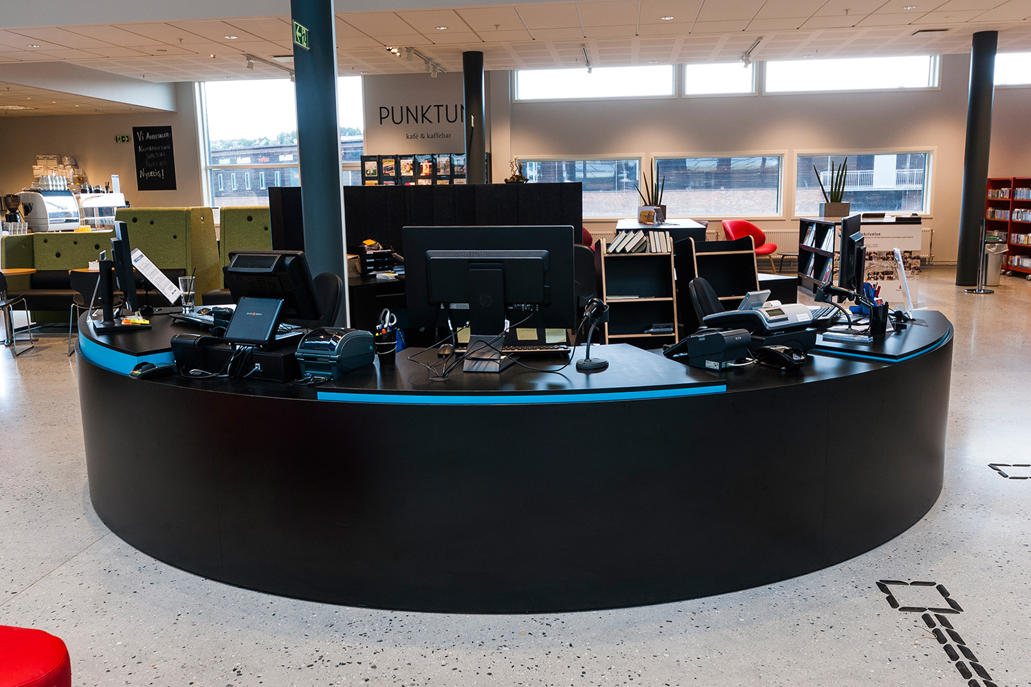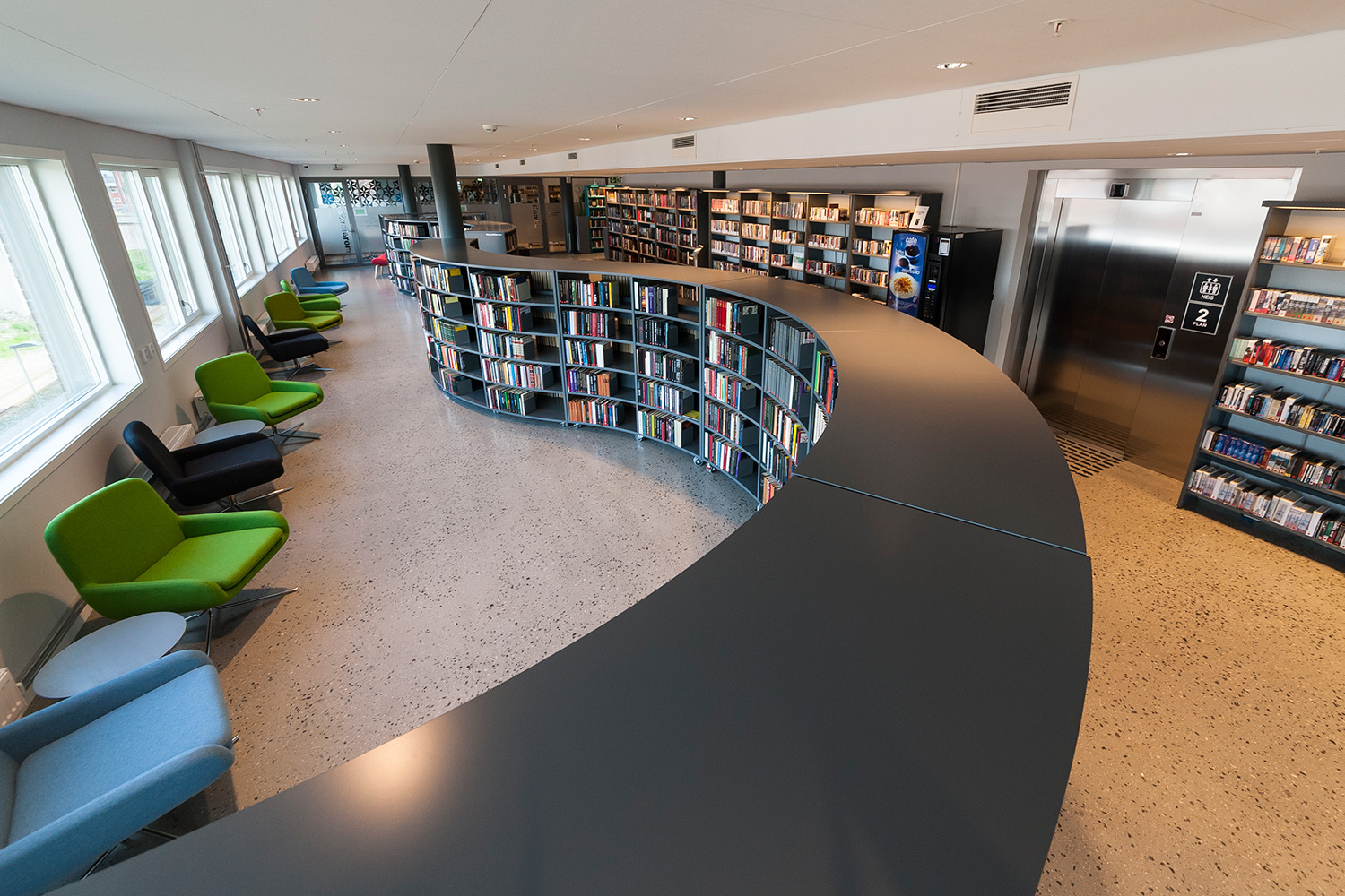 Vårt systerbolag, BS Eurobib, har försett biblioteket med hyllsystem, möbler och interaktiva lösningar.