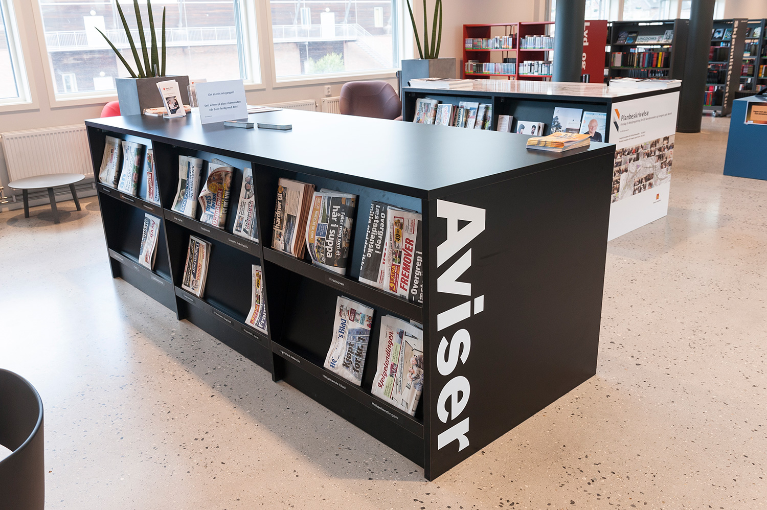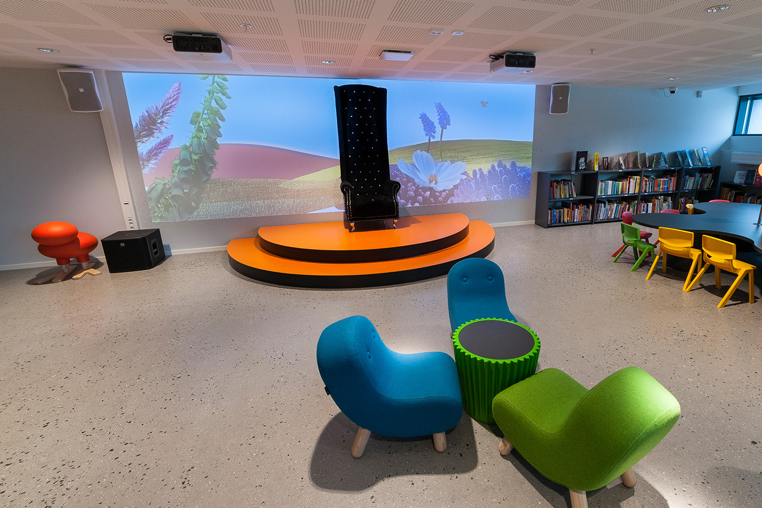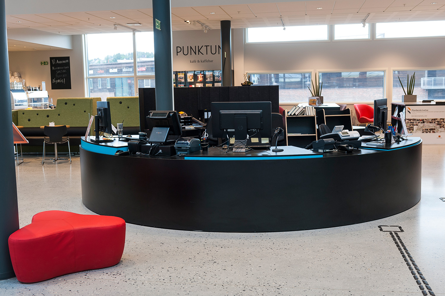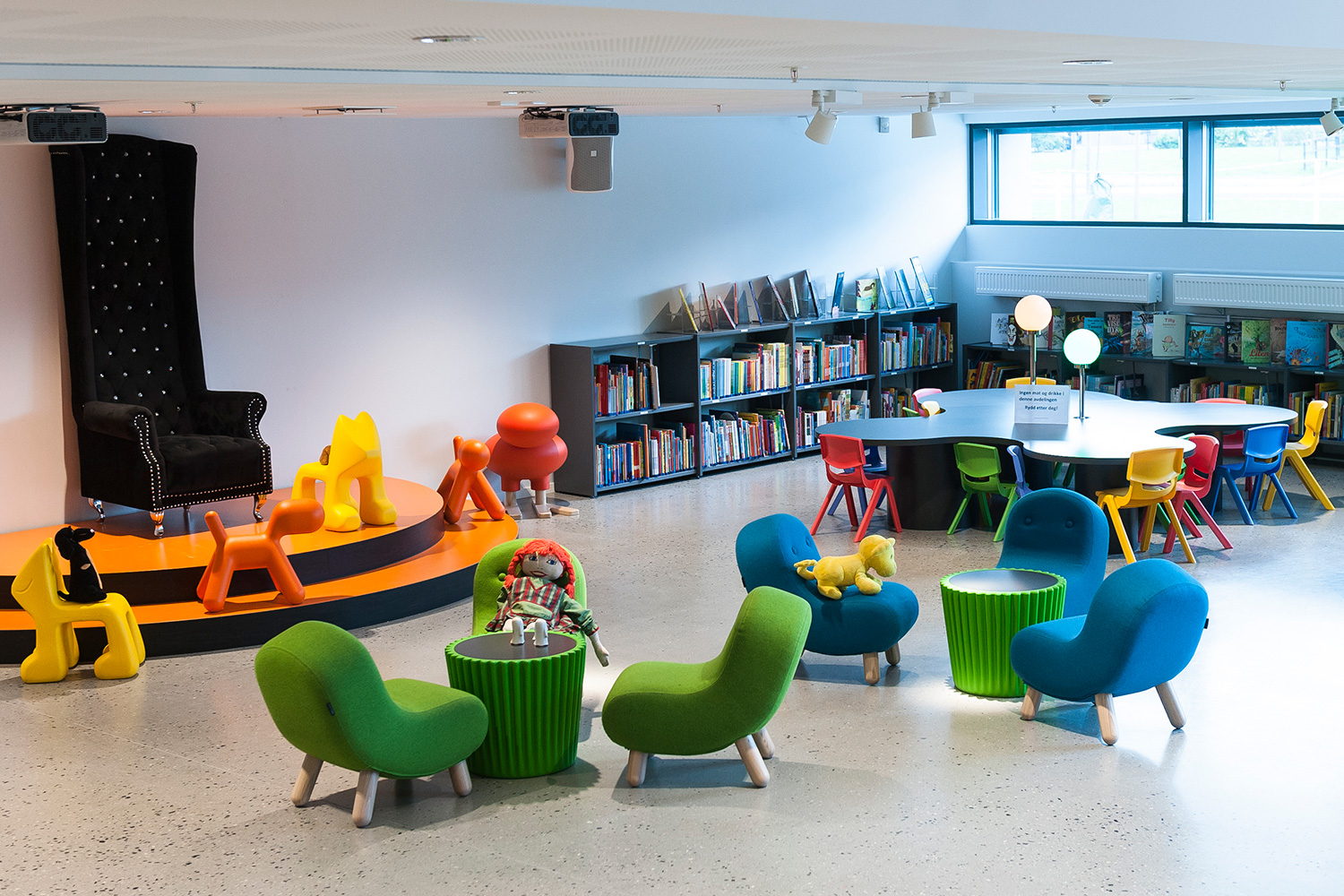 Vårt systerbolag, BS Eurobib, har försett biblioteket med hyllsystem, möbler och interaktiva lösningar.