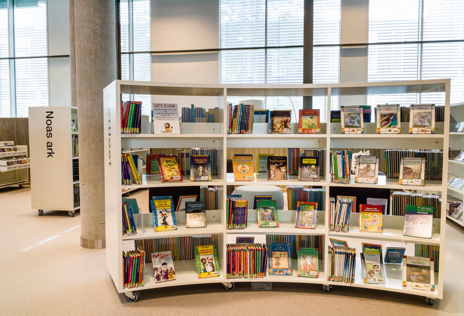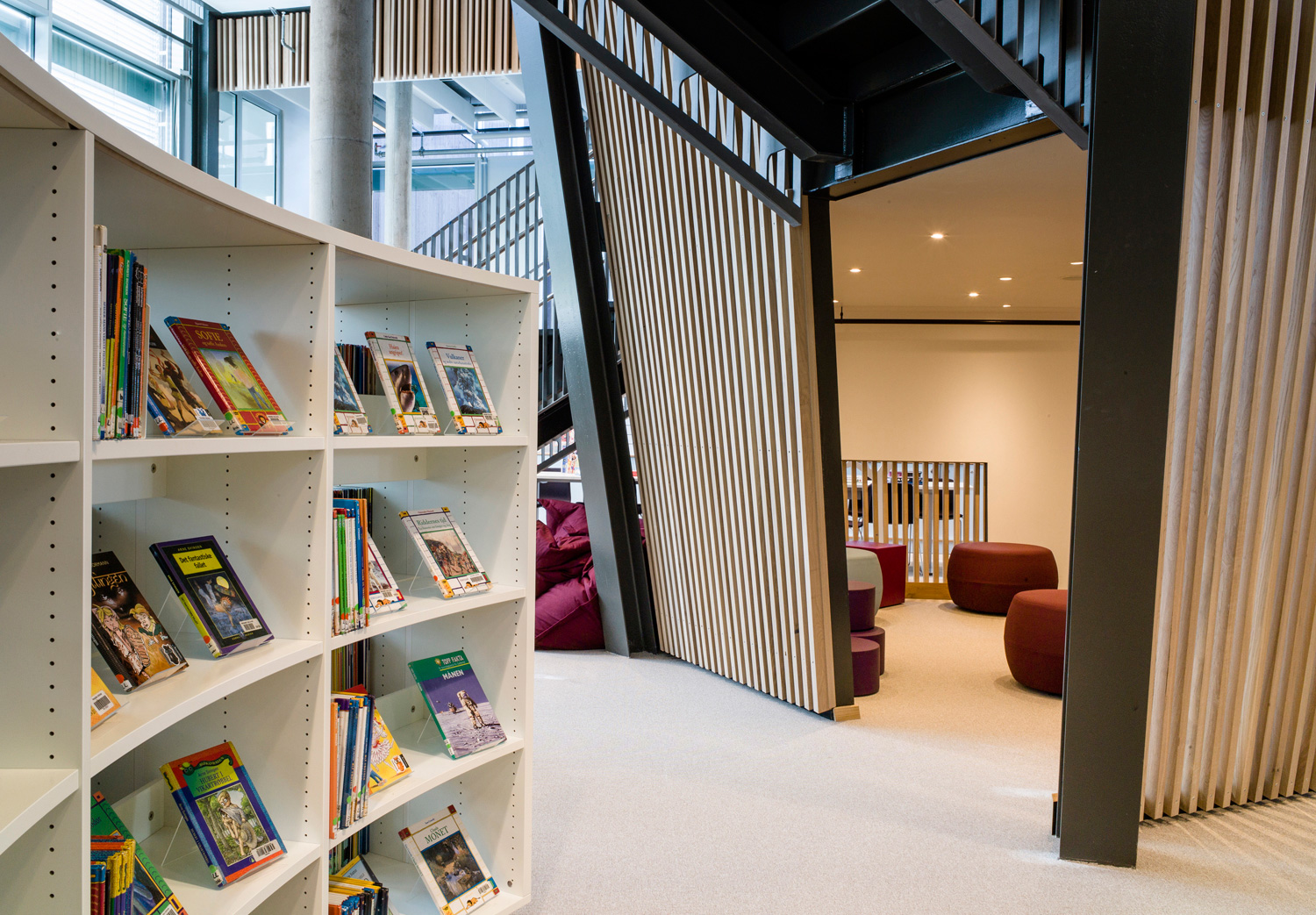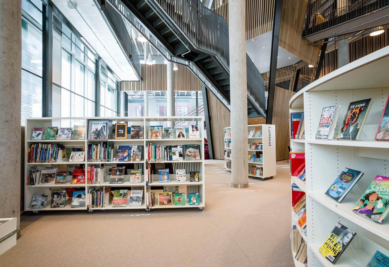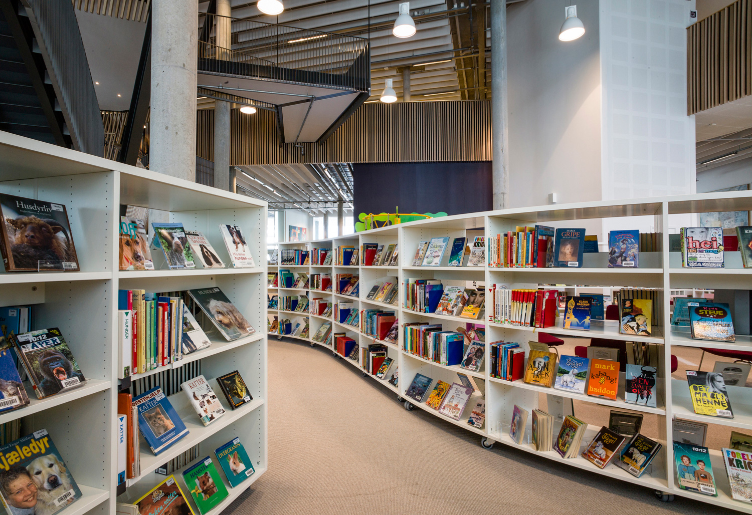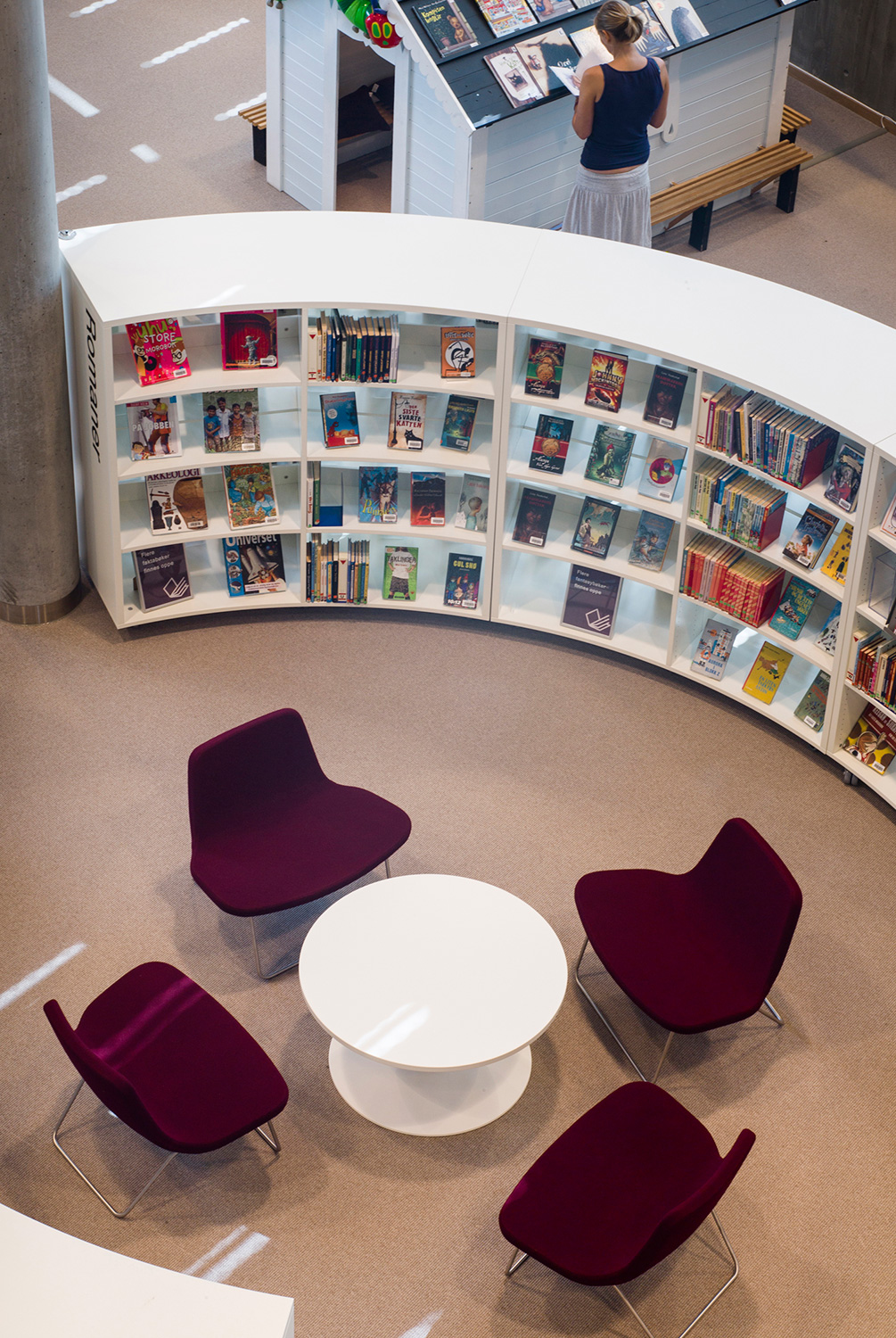 Det är ett bibliotek som kännetecknas av nytänkande med organiska former och mjuka kurvor. Det visar sig inte bara i arkitekturen utan också i hyllinredningen som följer den organiska formen. Där är massor av läsbord och bekväma sittplatser, informationspunkter och självbetjäningsstationer, vilka göra biblioteket till er sant nöje för besökarna.