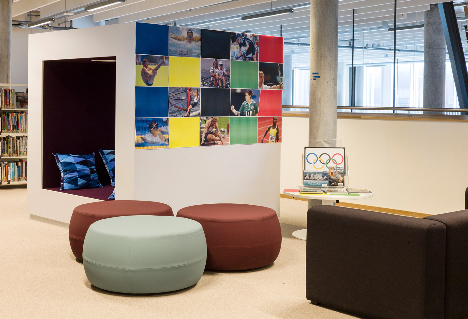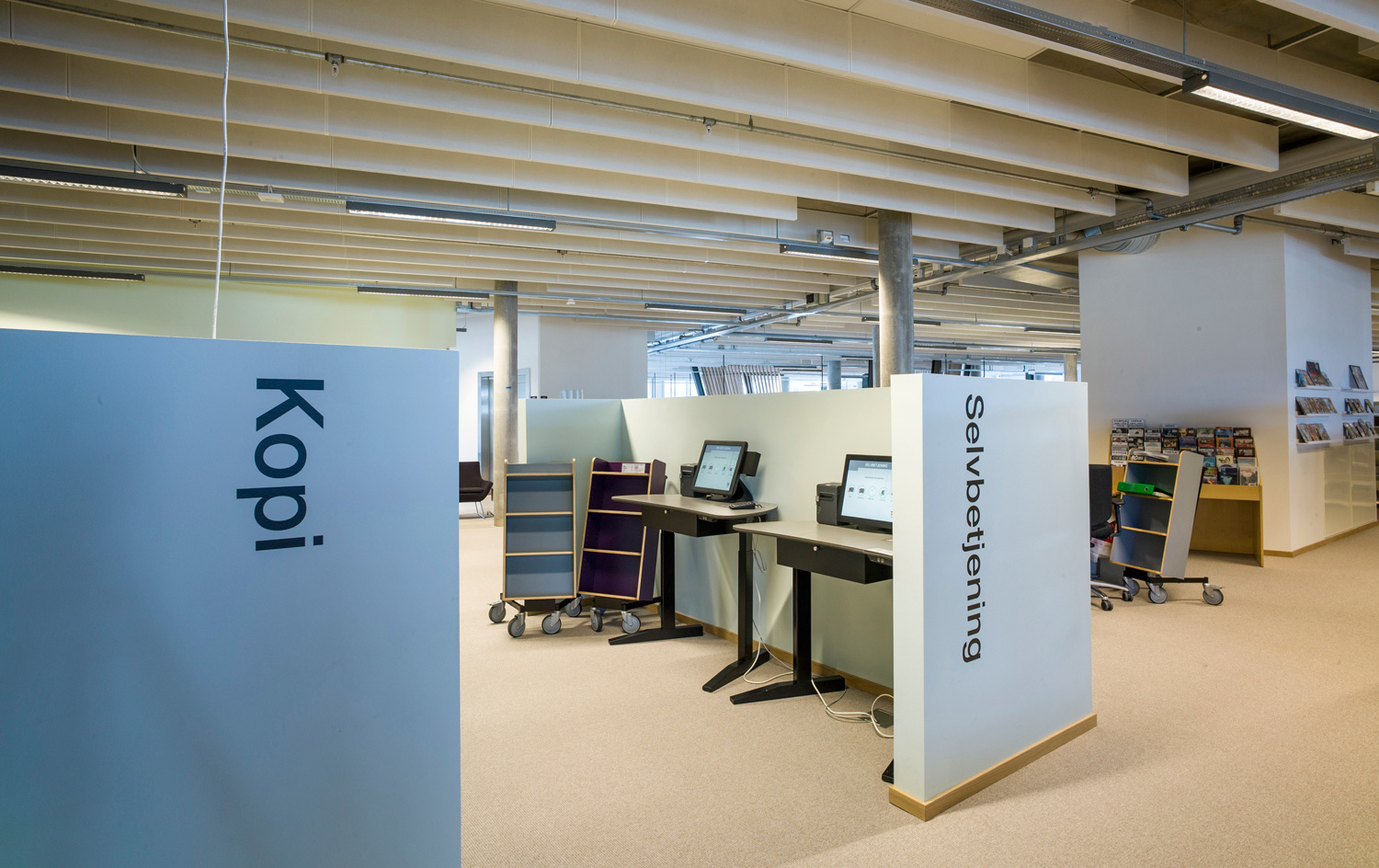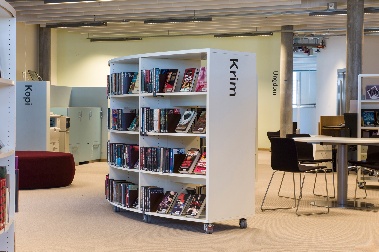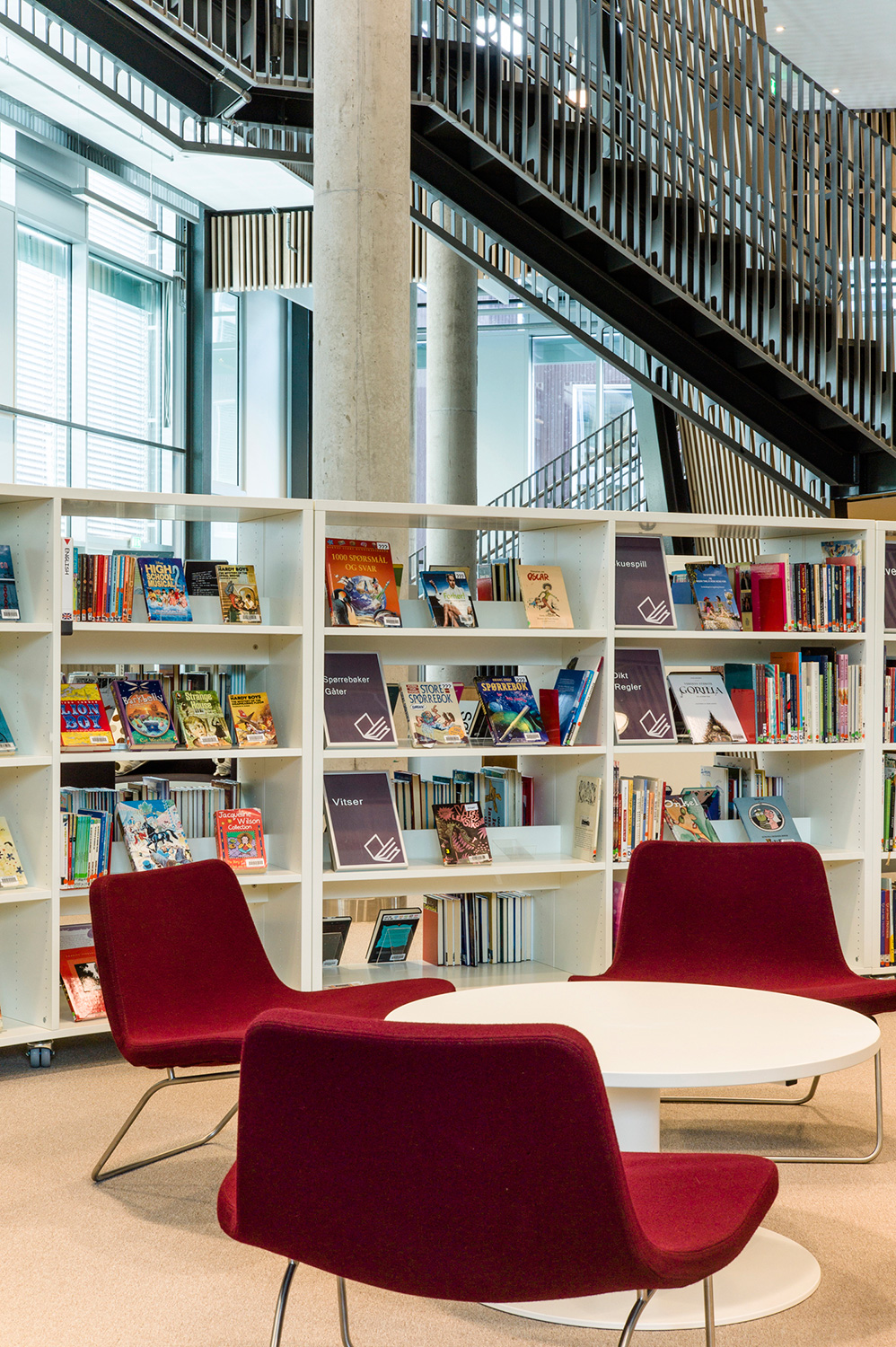 Det är ett bibliotek som kännetecknas av nytänkande med organiska former och mjuka kurvor. Det visar sig inte bara i arkitekturen utan också i hyllinredningen som följer den organiska formen. Där är massor av läsbord och bekväma sittplatser, informationspunkter och självbetjäningsstationer, vilka göra biblioteket till er sant nöje för besökarna.