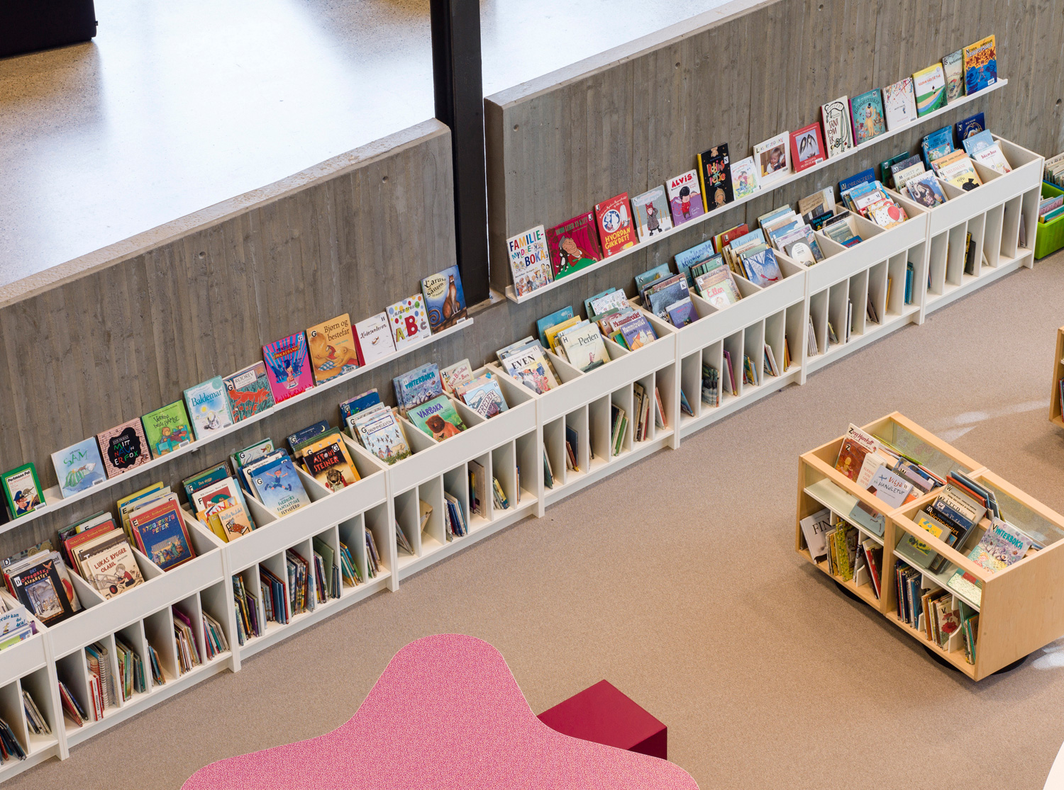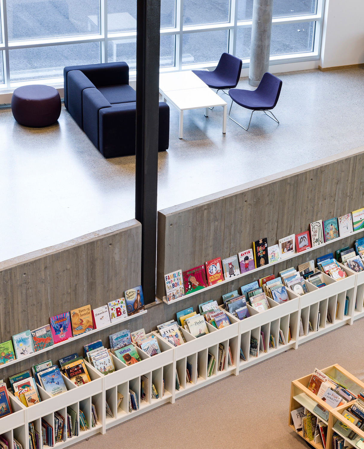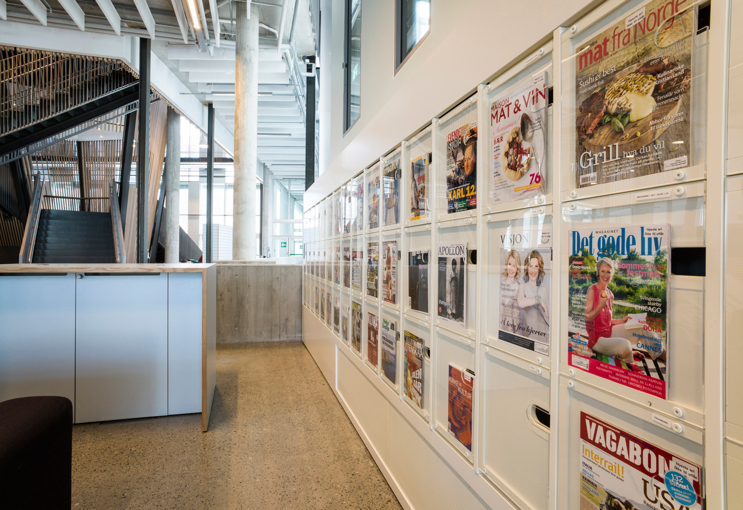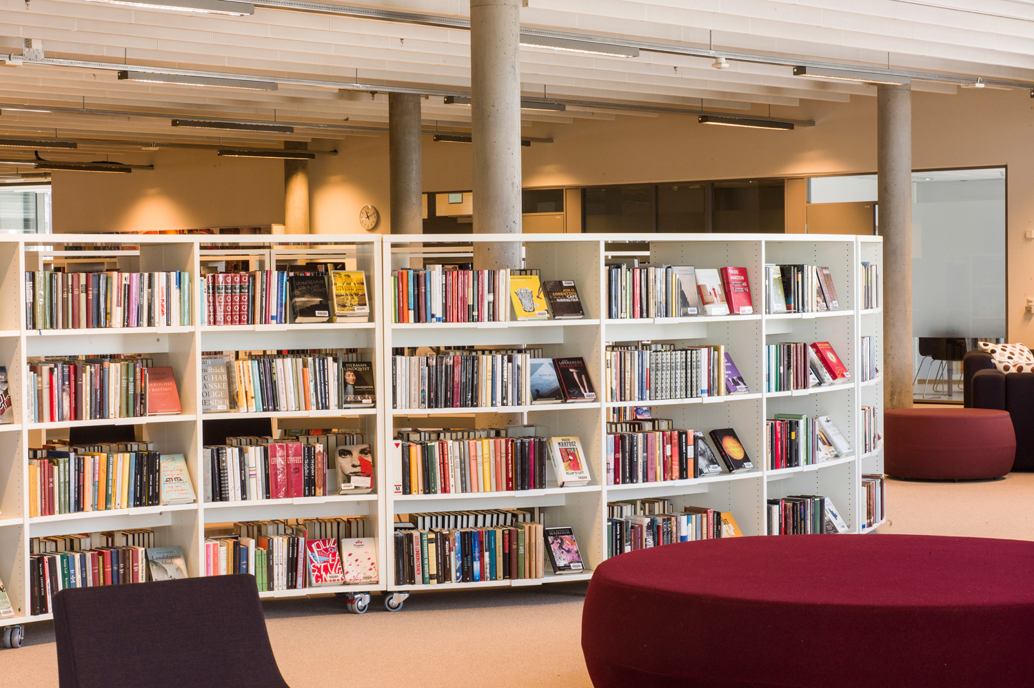 Det är ett bibliotek som kännetecknas av nytänkande med organiska former och mjuka kurvor. Det visar sig inte bara i arkitekturen utan också i hyllinredningen som följer den organiska formen. Där är massor av läsbord och bekväma sittplatser, informationspunkter och självbetjäningsstationer, vilka göra biblioteket till er sant nöje för besökarna.