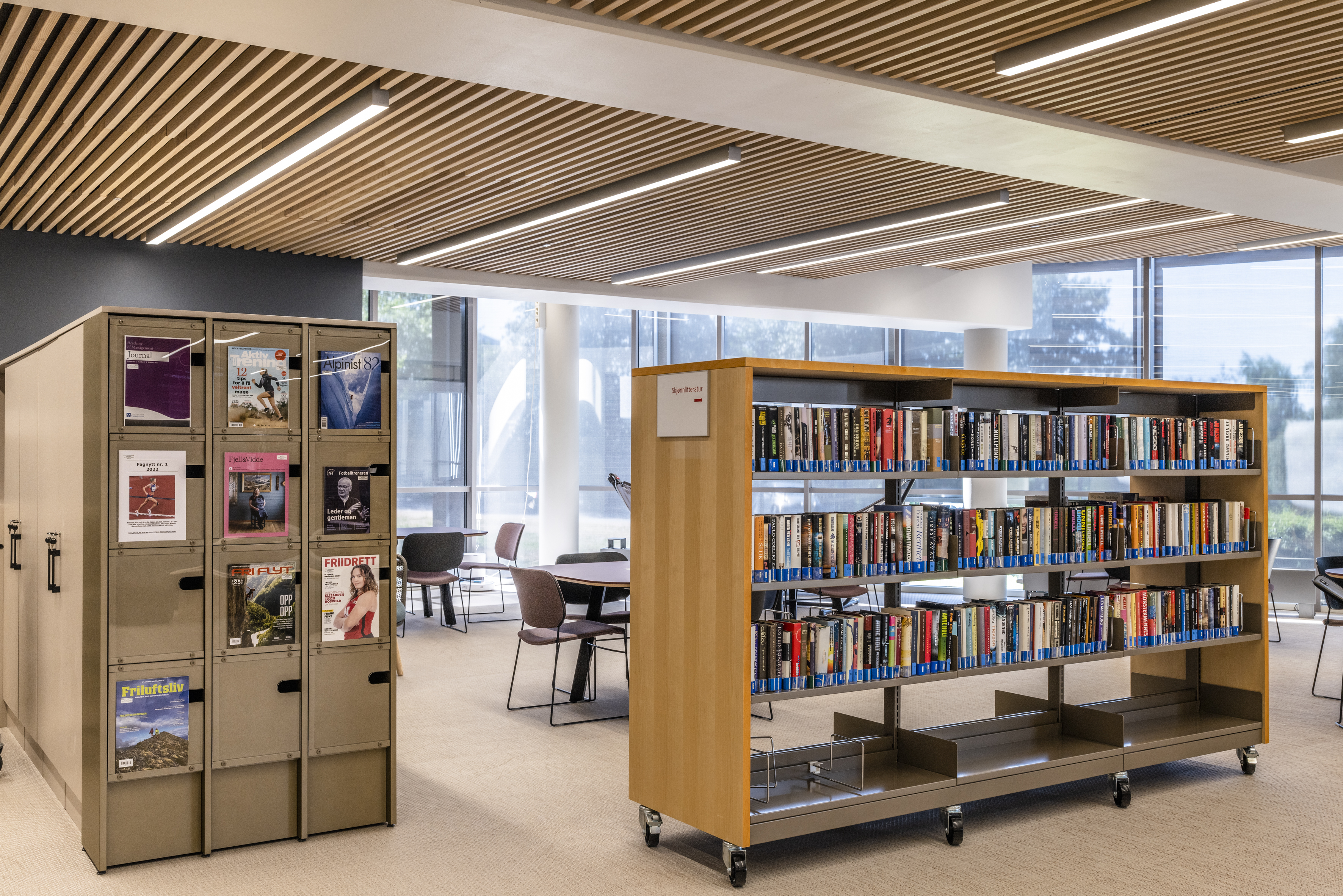 BS Eurobib i Norge levererade 60/30 stålhyllor under 2019 och hade under 2021 nöjet att komplettera biblioteket med fler hyllor av samma typ. Biblioteket består dessutom av Ordrup tidskriftshyllor i samma grå färg som stålhyllorna.