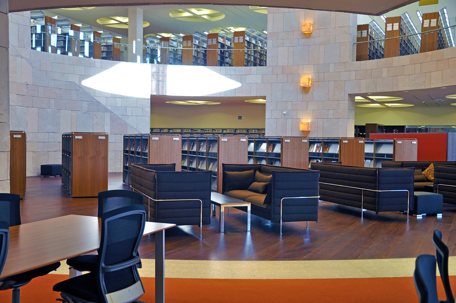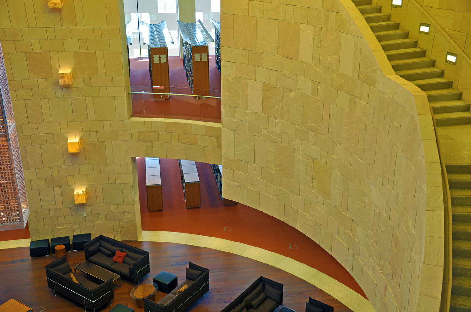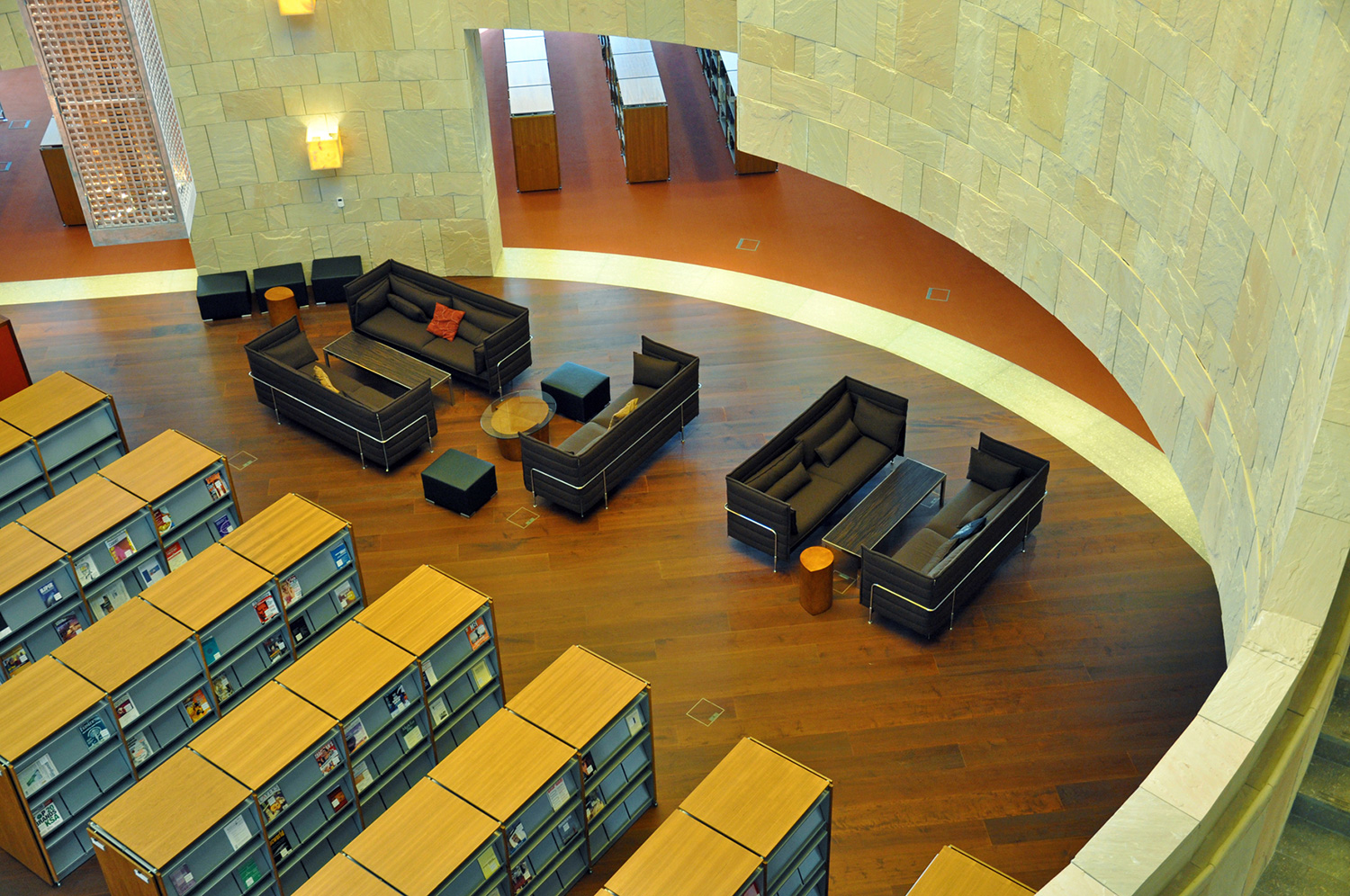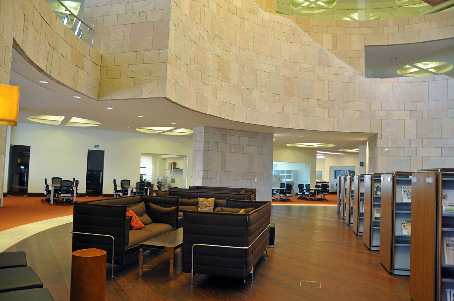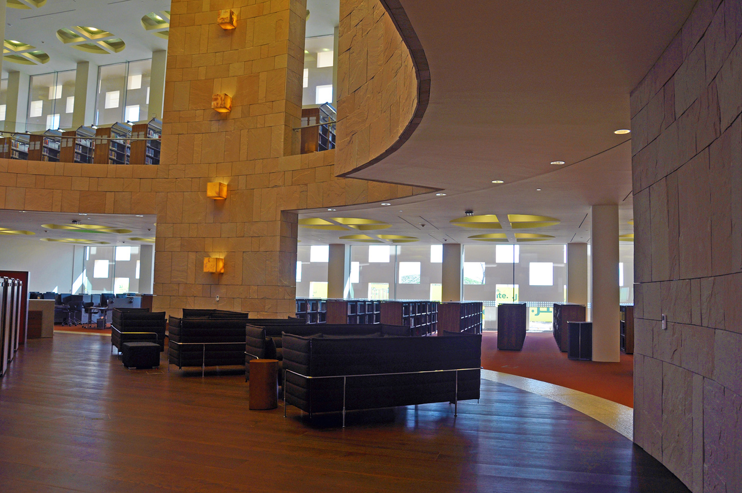 Byggnaden är 33.000 kvadratmeter stor och innehåller en tre våningar hög innergård, ett auditorium, klassrum, föreläsningssalar, kontor och ett nytt bibliotek. Med en nuvarande samling på 60.000 böcker, 4.500 DVD och tillgång till åtskilliga databaser är biblioteket ett av de mest omfattande i regionen.
