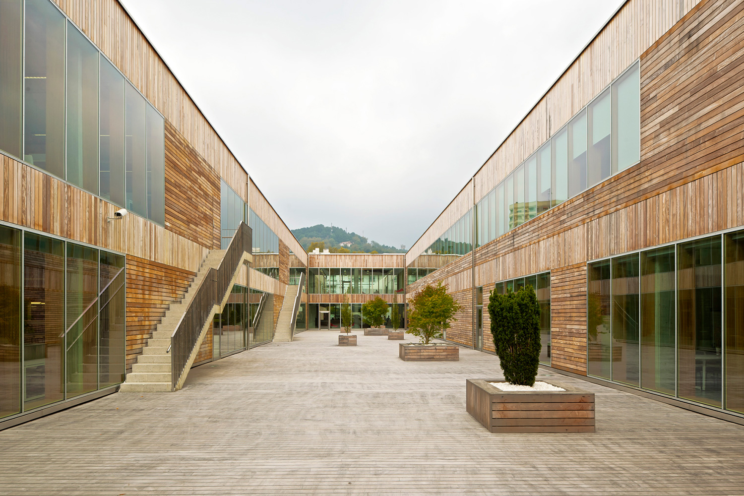 Det svängda centret med sin betongfasad är primärt hem för campusets nya bibliotek, men de 16.600 kvadratmetrarna rymmer också språklaboratorier och andra pedagogiska resurser. Arkitekten beskriver designen som ”tänkt som en enorm container, formad ur en spontant påkommen kontur som följer de naturliga kurvorna. Linjen är muren som innehåller två block arrangerade i nordöstlig riktning, och vars högsta punkt är på den plats som vi anser vara viktigast: byggnadens huvudingång som öppnar sig som en stor mun och pekar sitt krön mot himlen”.