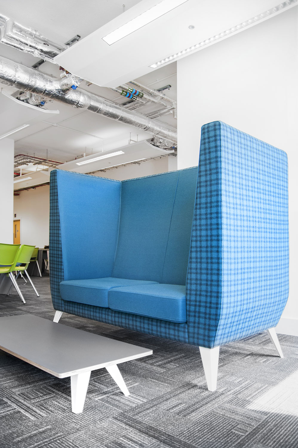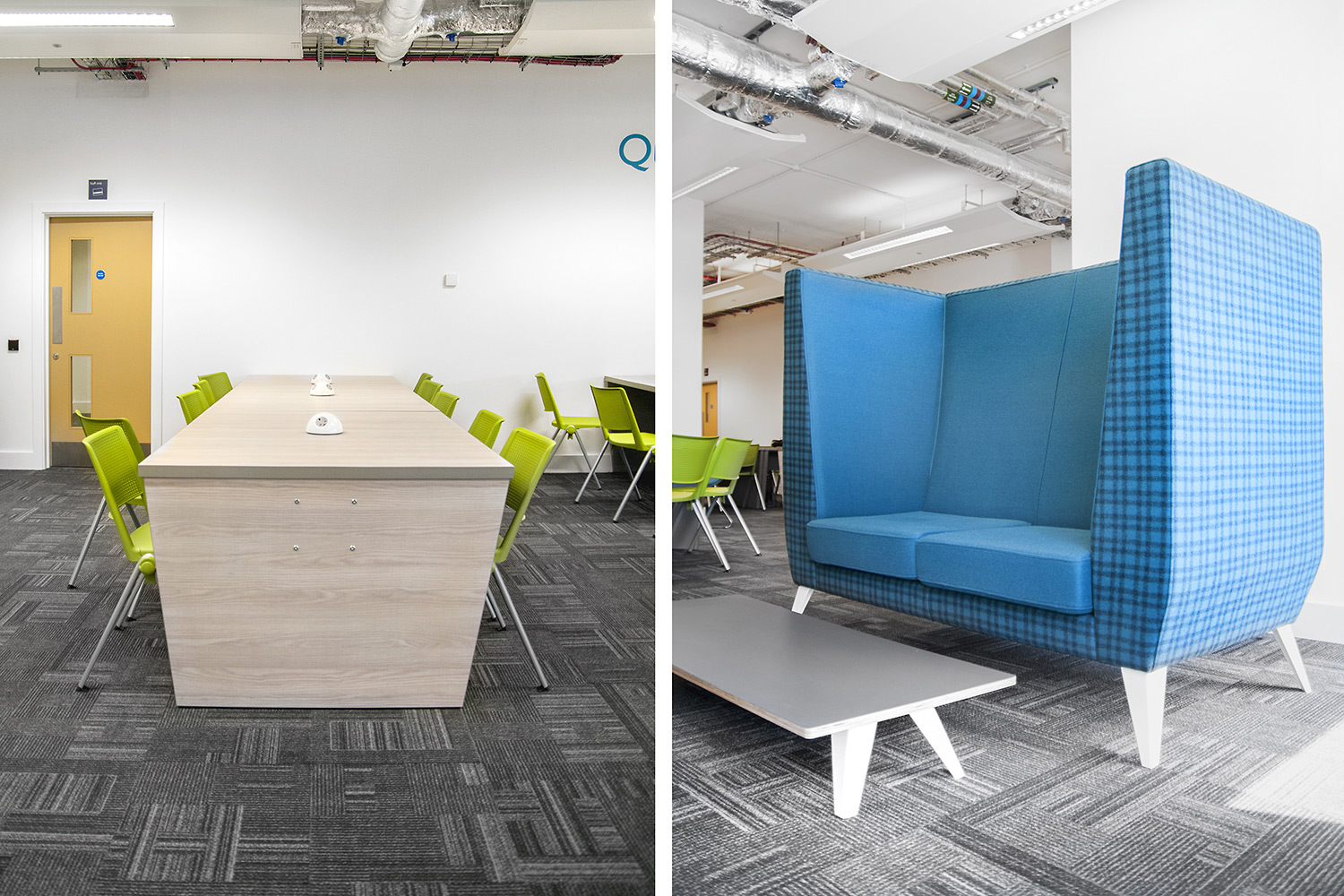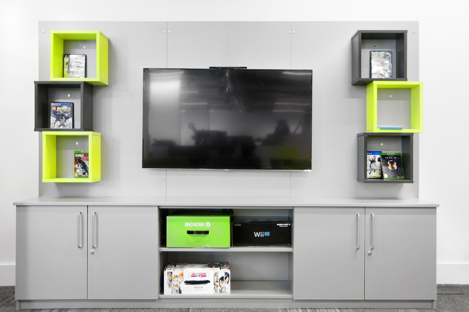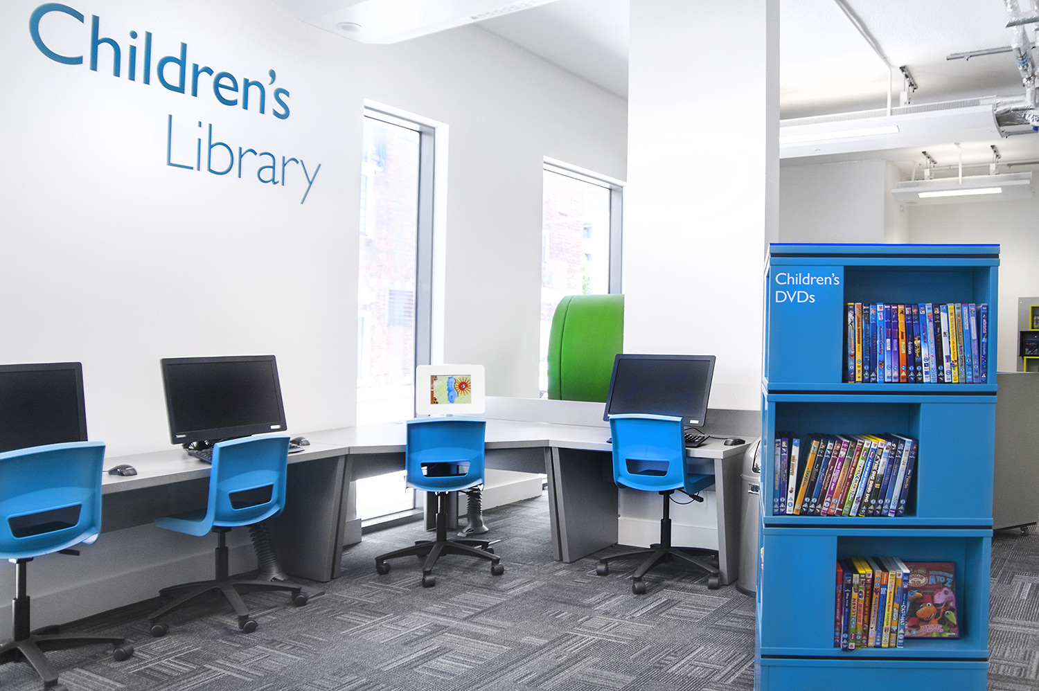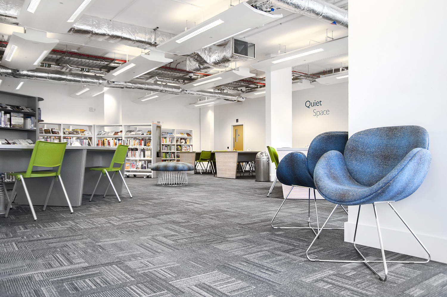 Unga får möjlighet att njuta av bibliotekszoner utrustade med spelkonsoler, stora skärmar samt fräcka och innovativa möbler för bästa komfort.