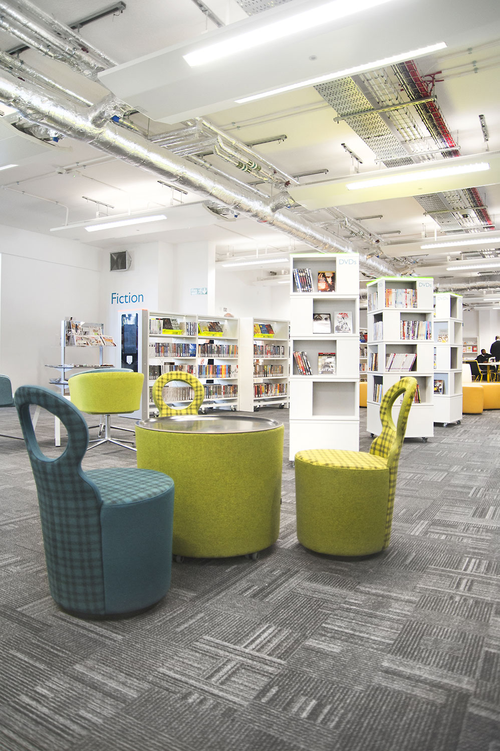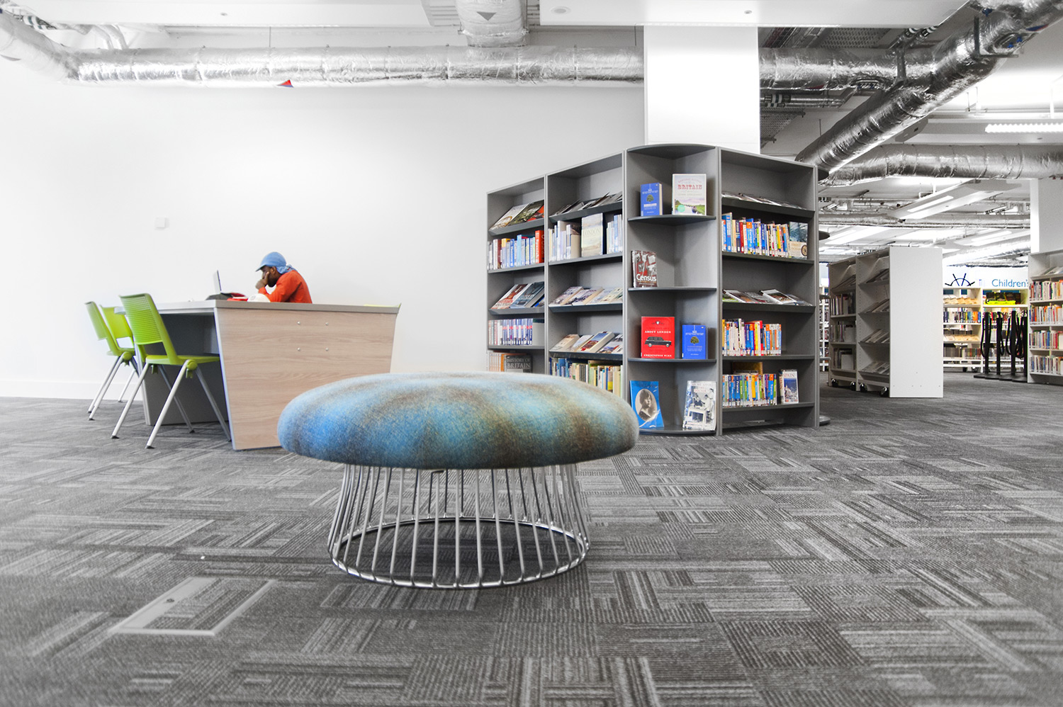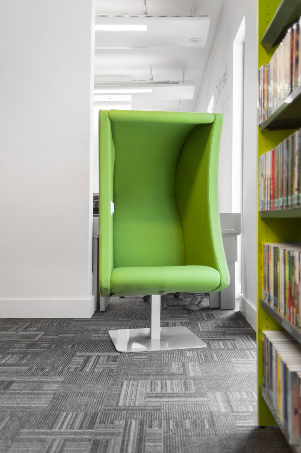 Thedesignconcept presenterade flera spännande och stimulerande inredningslösningar, laddstationer och digital teknik till denna inspirerande bibliotekslokal.