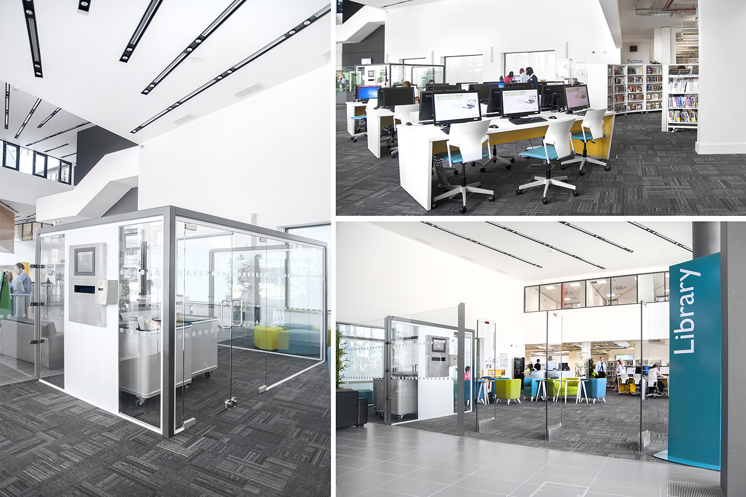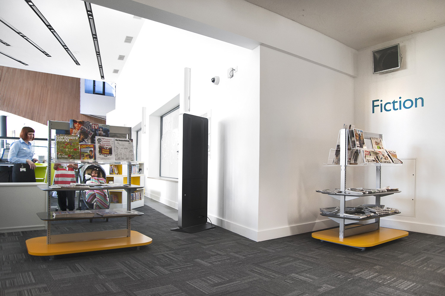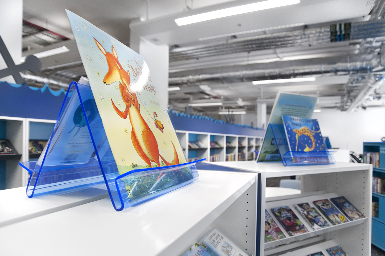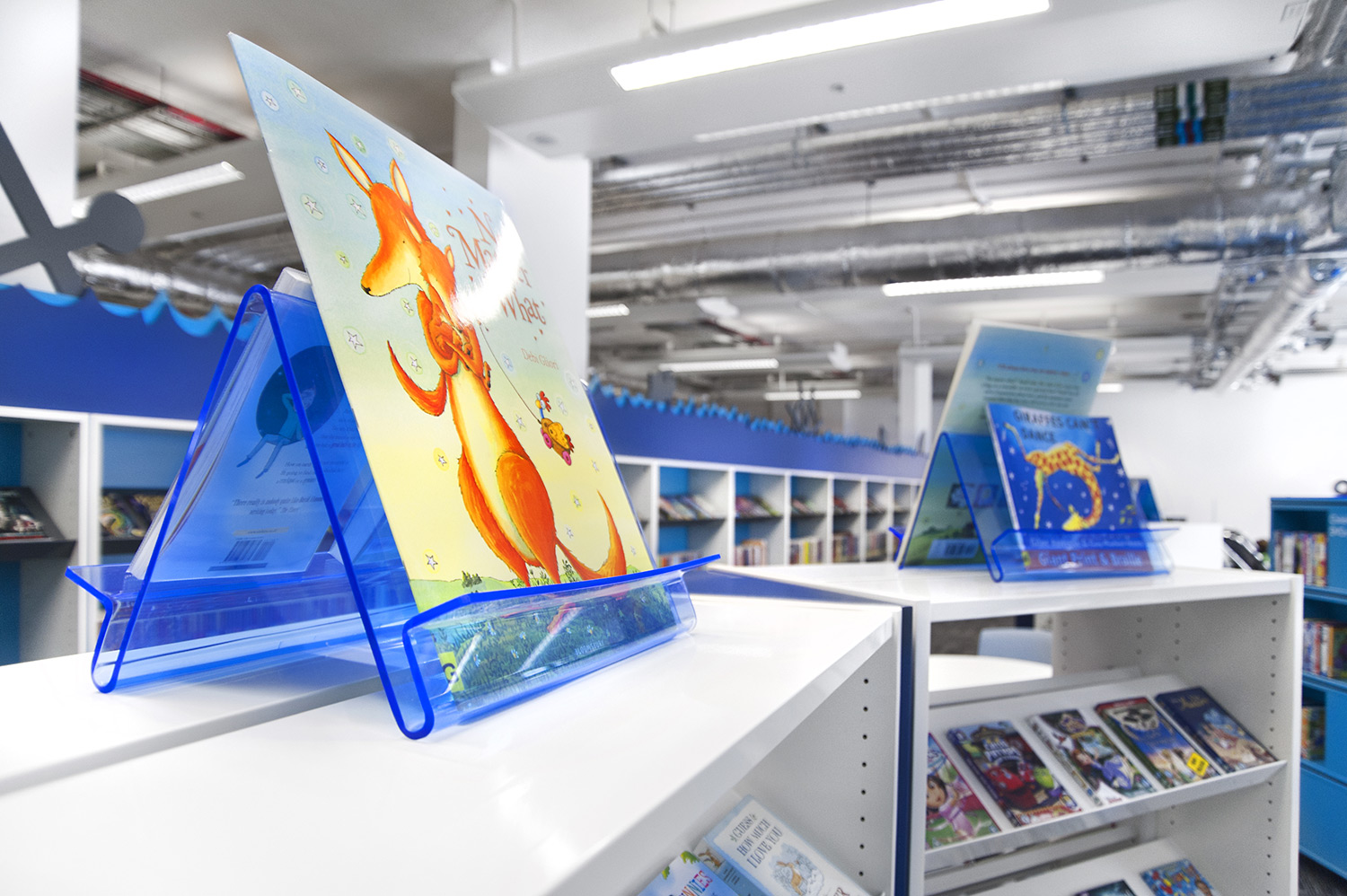 Överallt på biblioteket syns digitala paneler på hyllgavlarna som gör det möjligt för kunderna att leta efter specifika böcker och författare. Man får också tillgång till bibliotekets egna app som lyfter fram nya böcker och tjänster som finns tillgängliga för alla besökare.