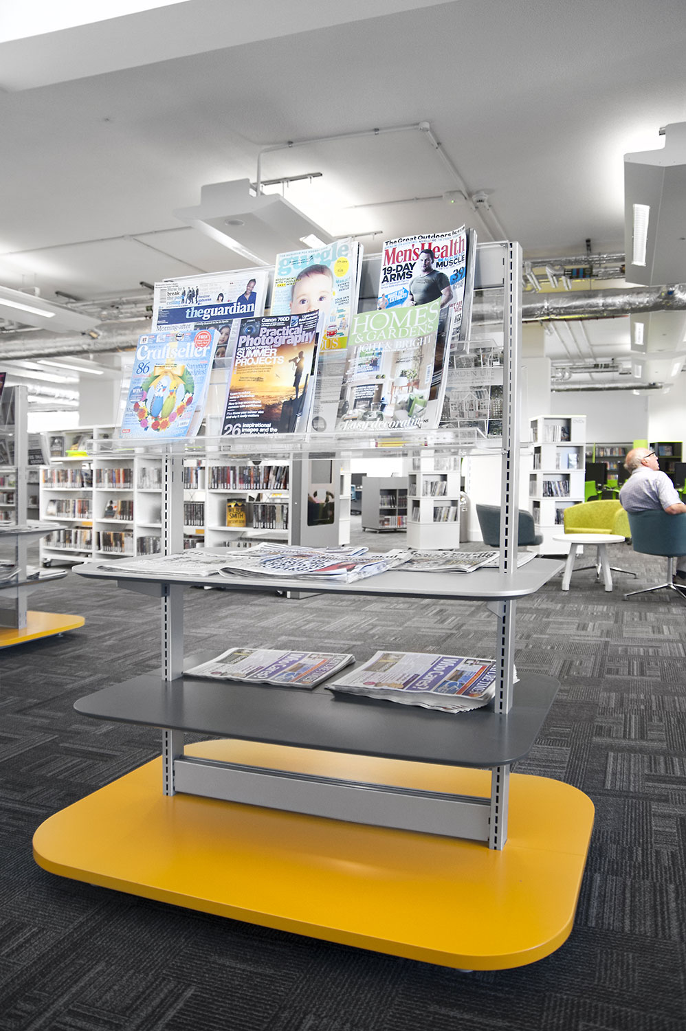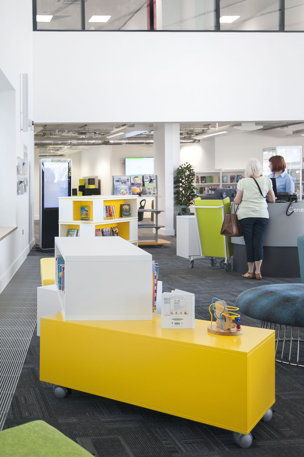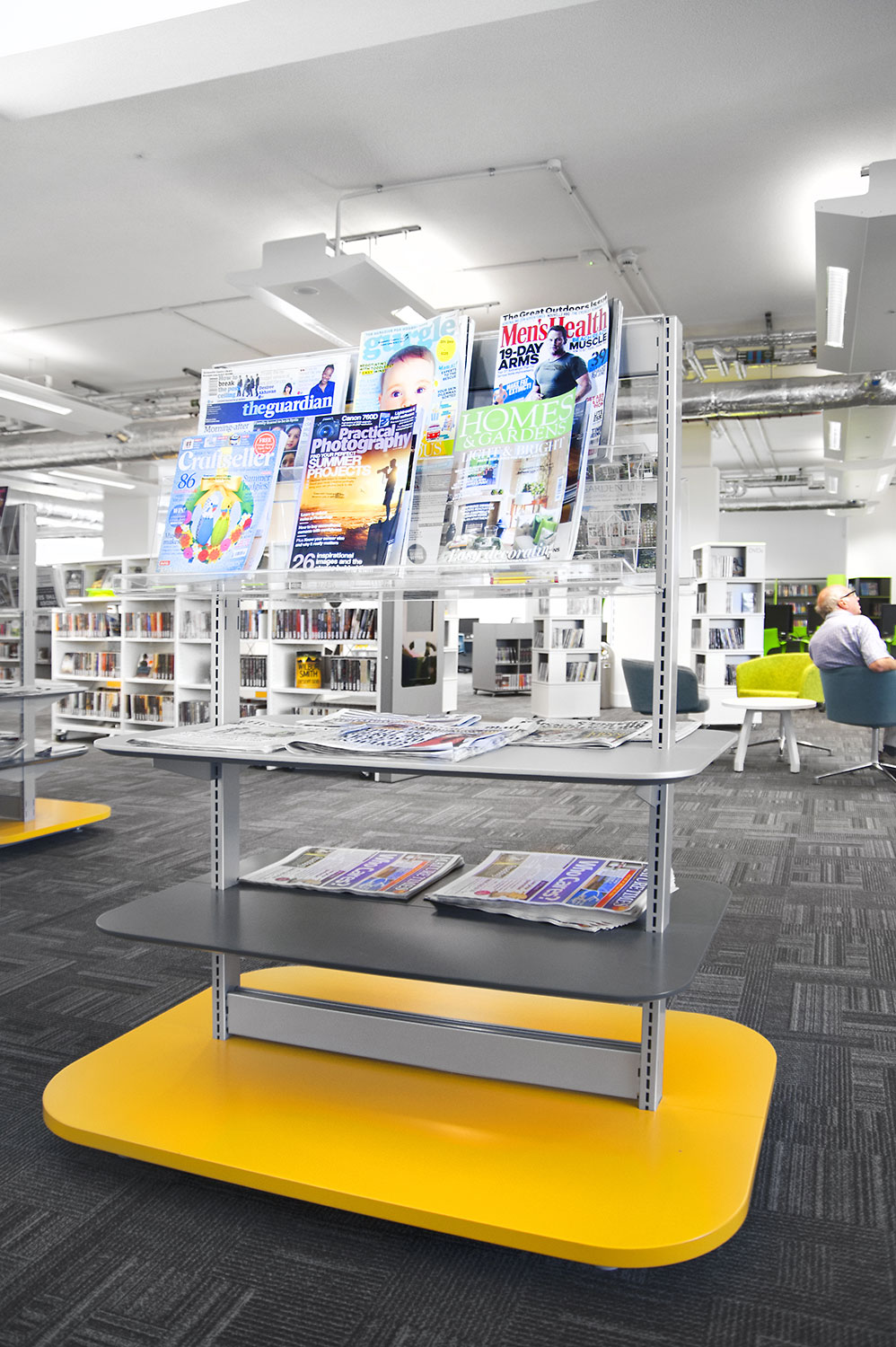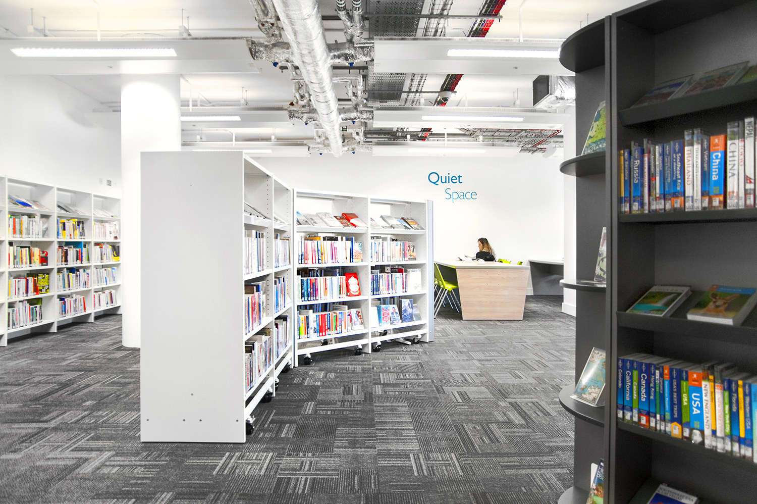 Överallt på biblioteket syns digitala paneler på hyllgavlarna som gör det möjligt för kunderna att leta efter specifika böcker och författare. Man får också tillgång till bibliotekets egna app som lyfter fram nya böcker och tjänster som finns tillgängliga för alla besökare.