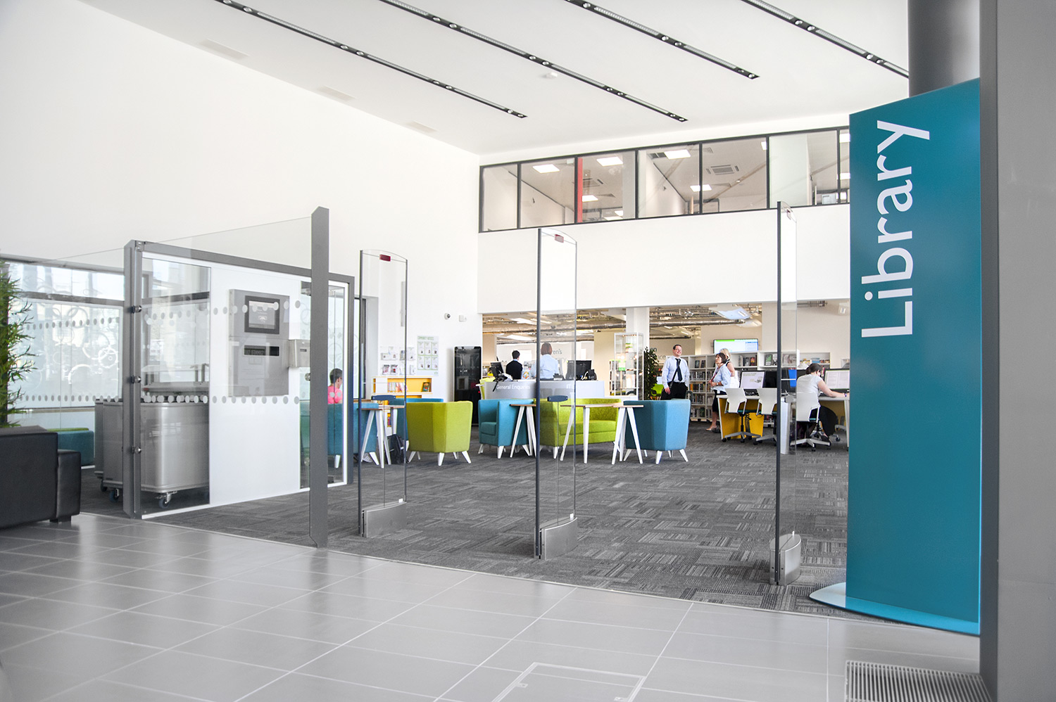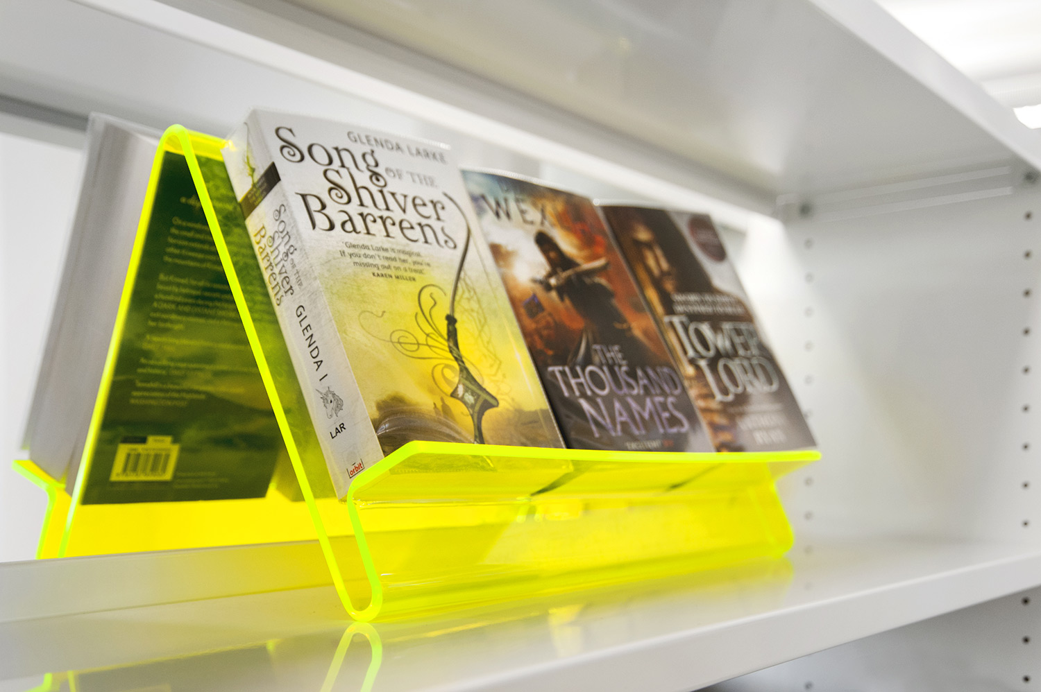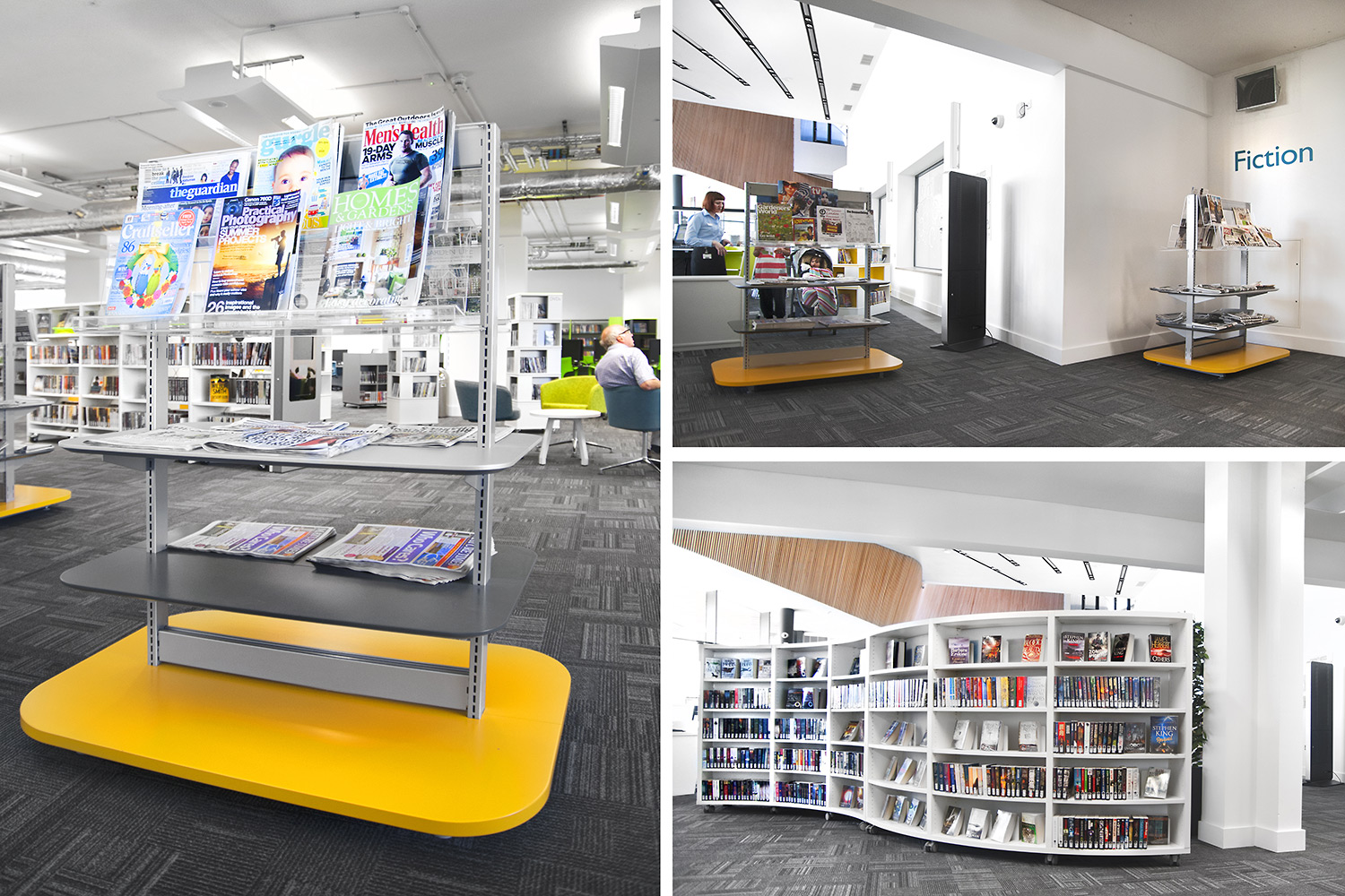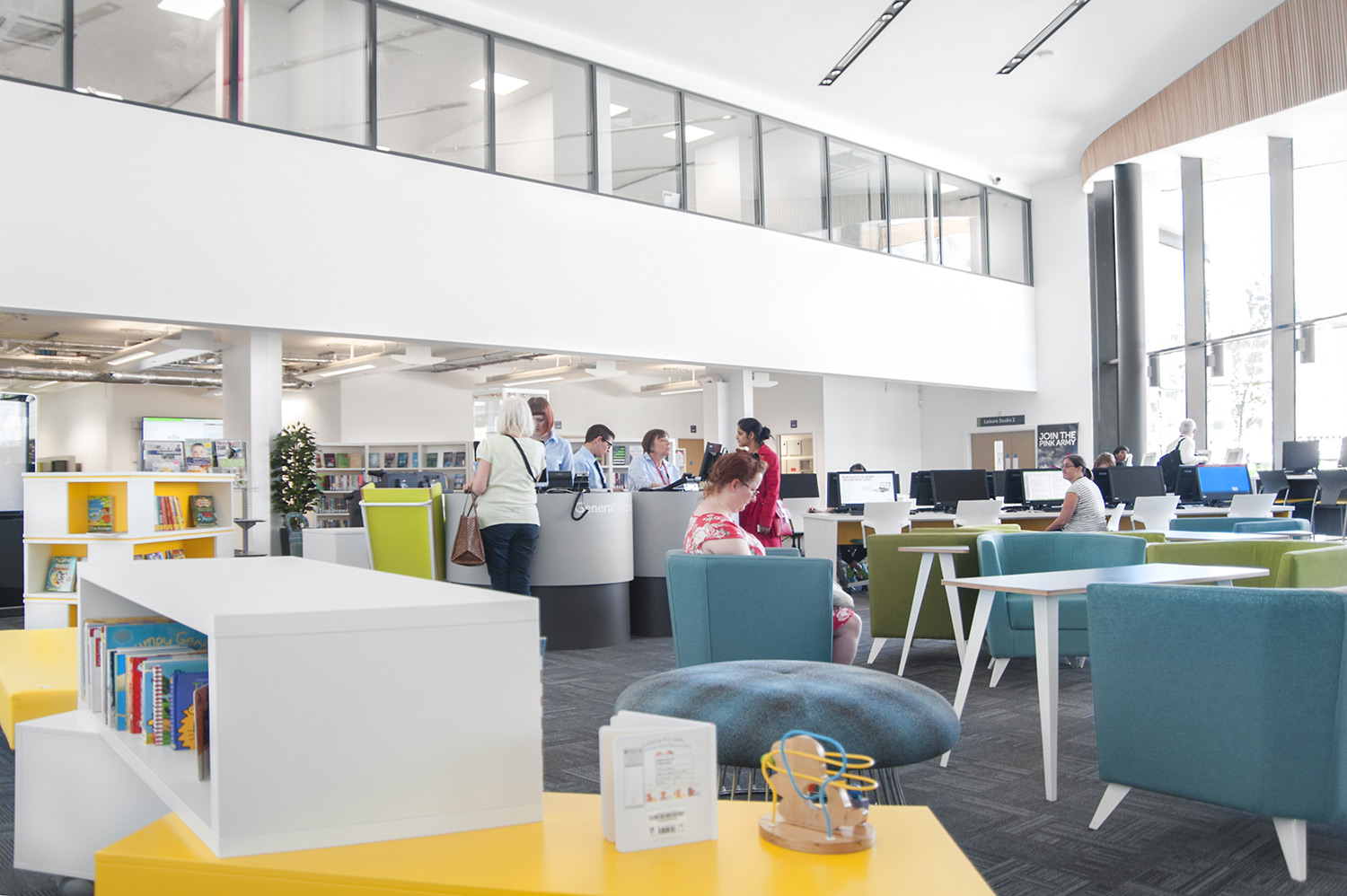 Överallt på biblioteket syns digitala paneler på hyllgavlarna som gör det möjligt för kunderna att leta efter specifika böcker och författare. Man får också tillgång till bibliotekets egna app som lyfter fram nya böcker och tjänster som finns tillgängliga för alla besökare.
