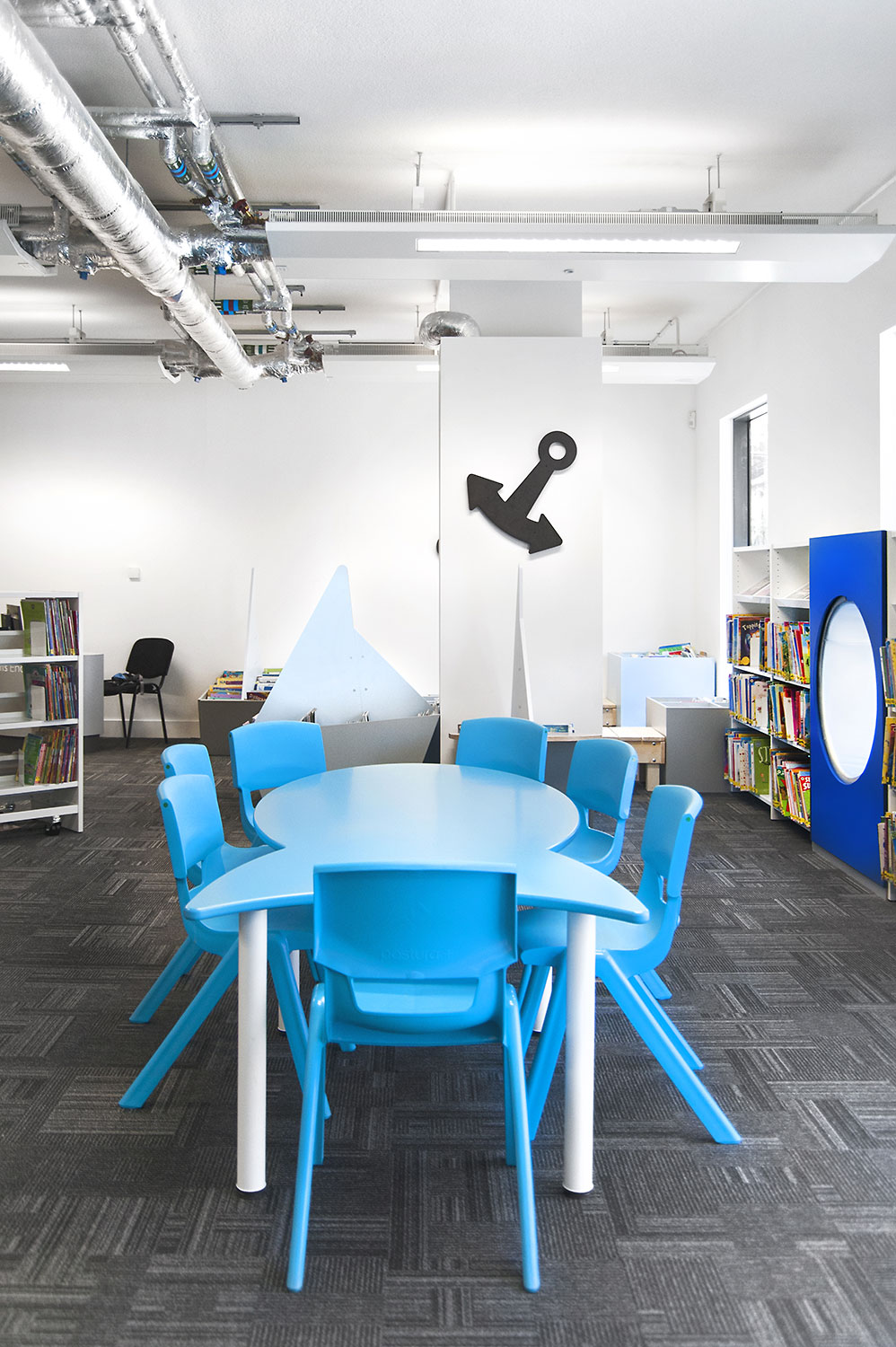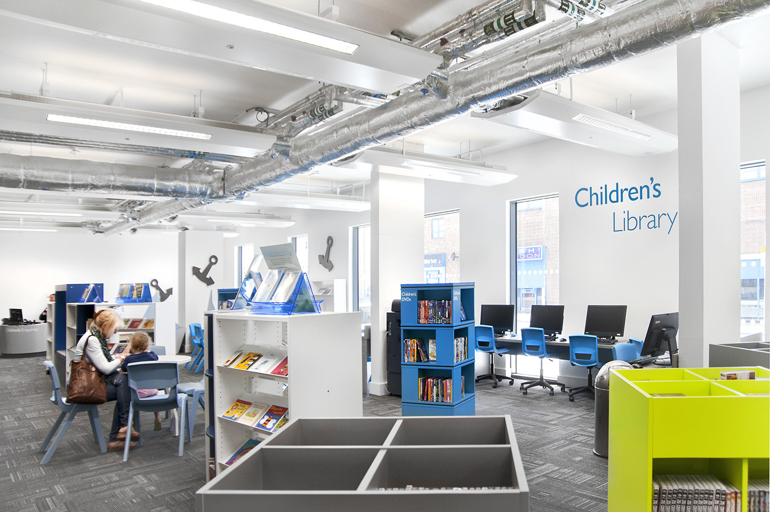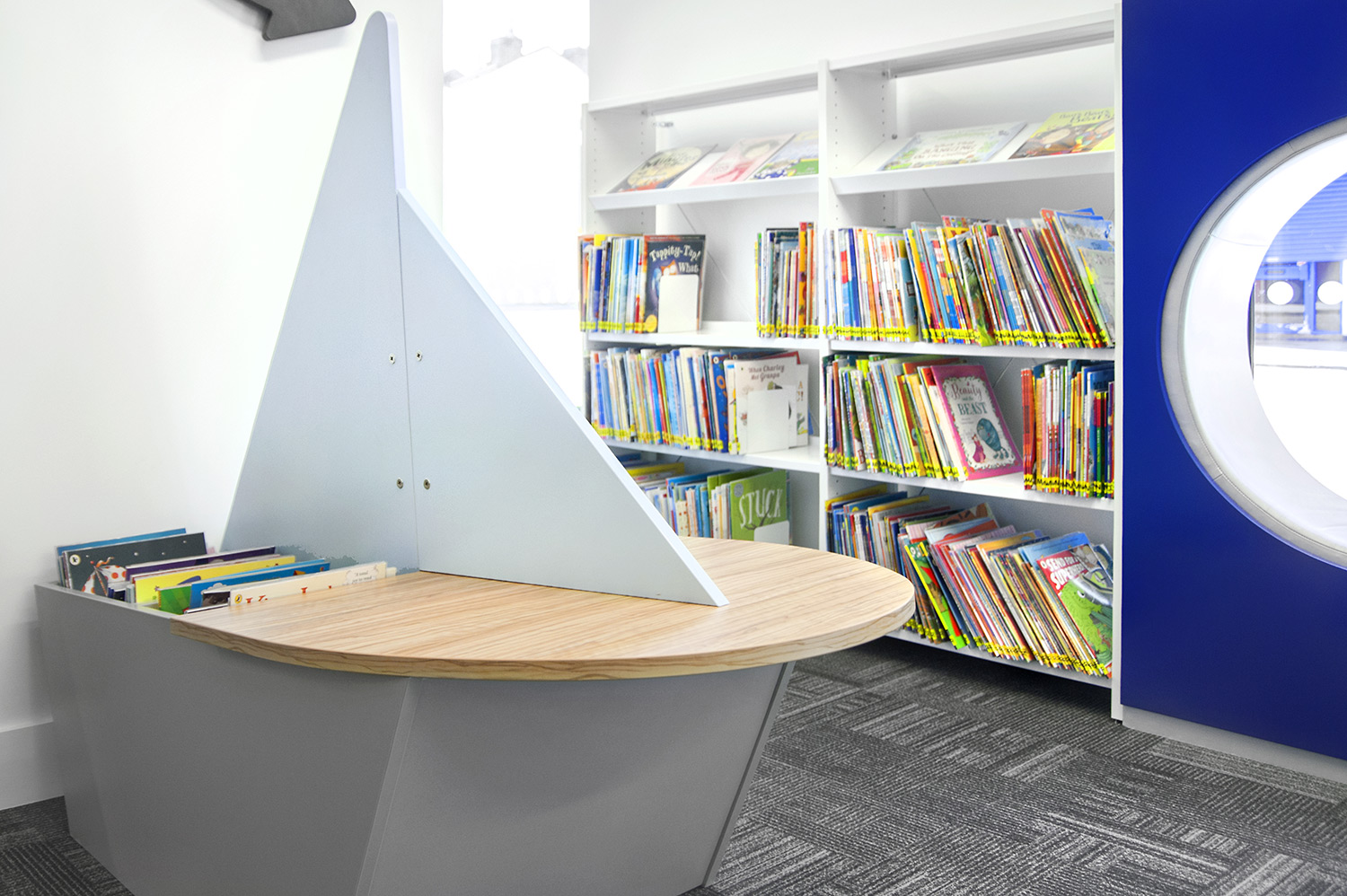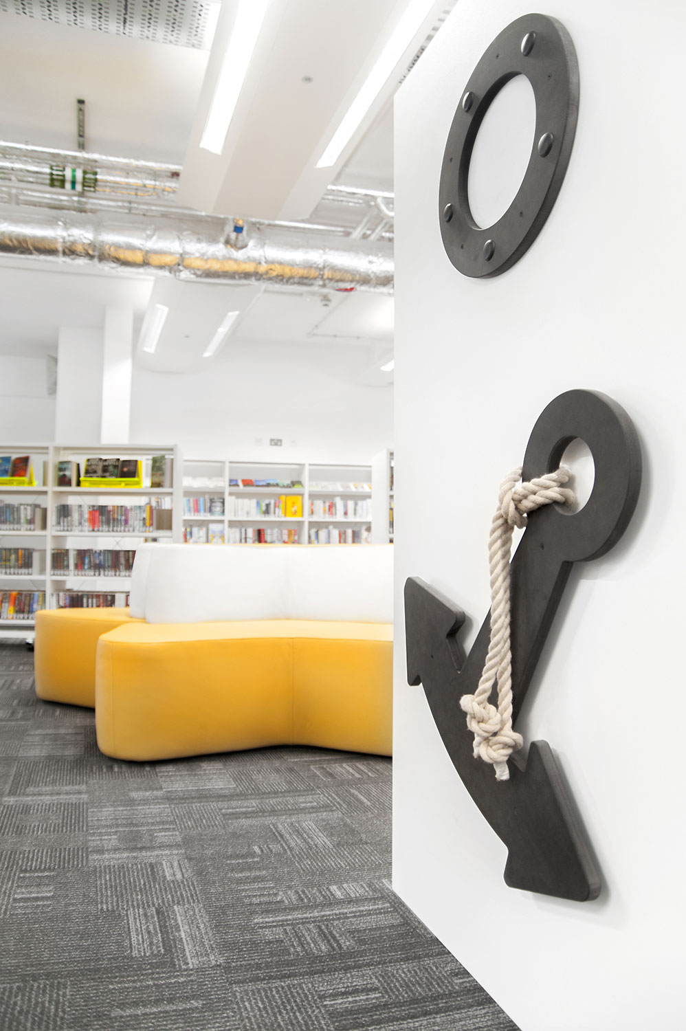 Då man önskat lyfta Greenwichs rika, maritima historia har barnavdelningen inretts i detta tema. Bilderbokslådor i form av båtar, hyllor dekorerade med vågor, ankare och ventiler för att lustfyllt väcka läslusten hos de små. Barnens bibliotek har även datorer och läsplattor tillgängliga för de yngre besökarna.