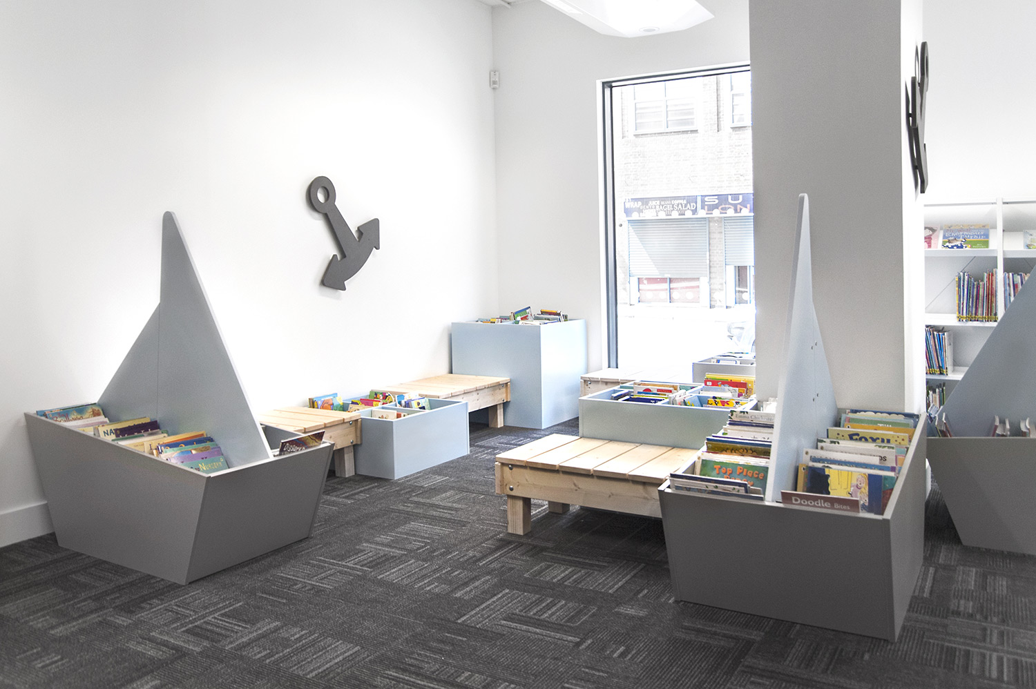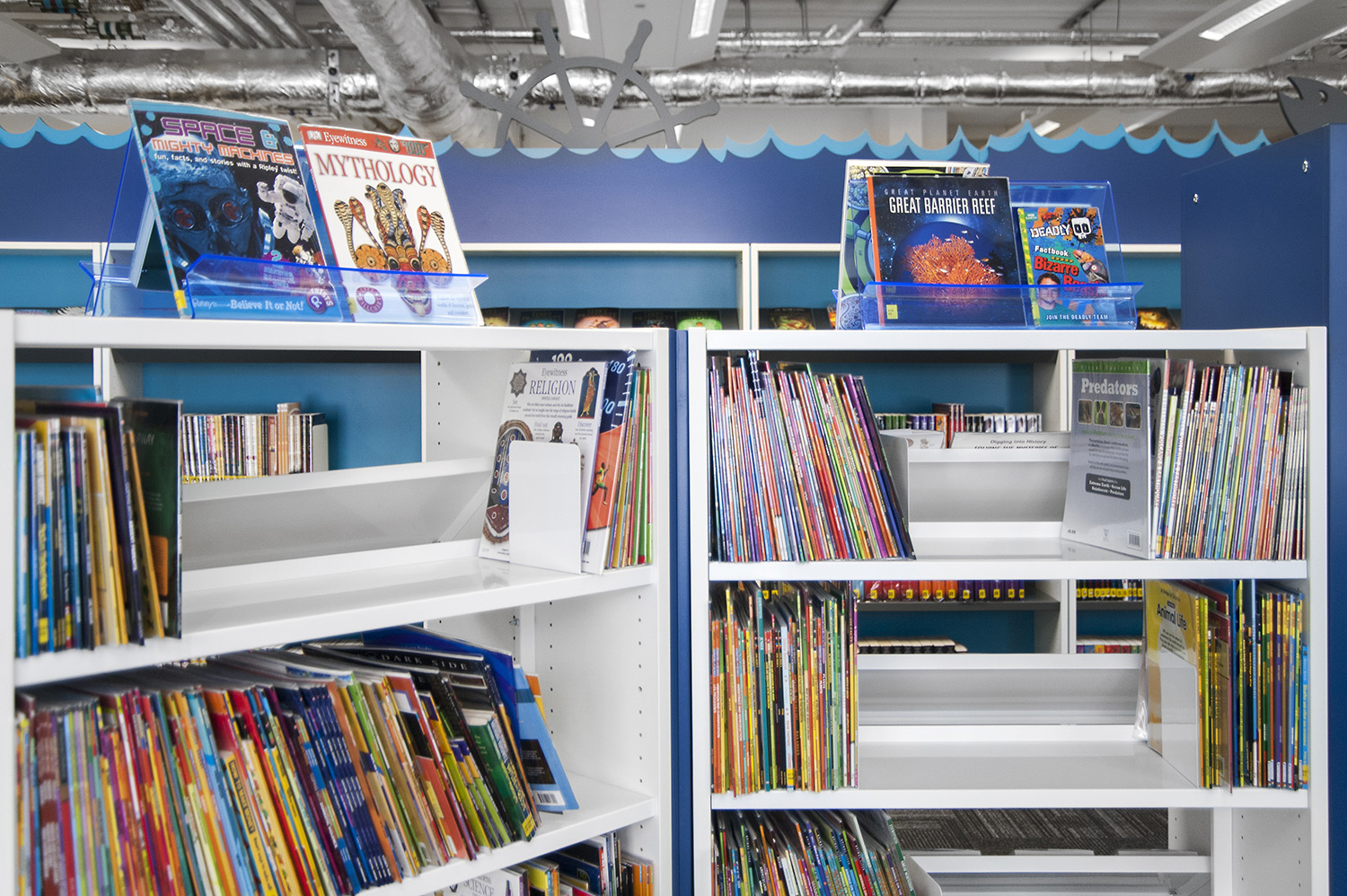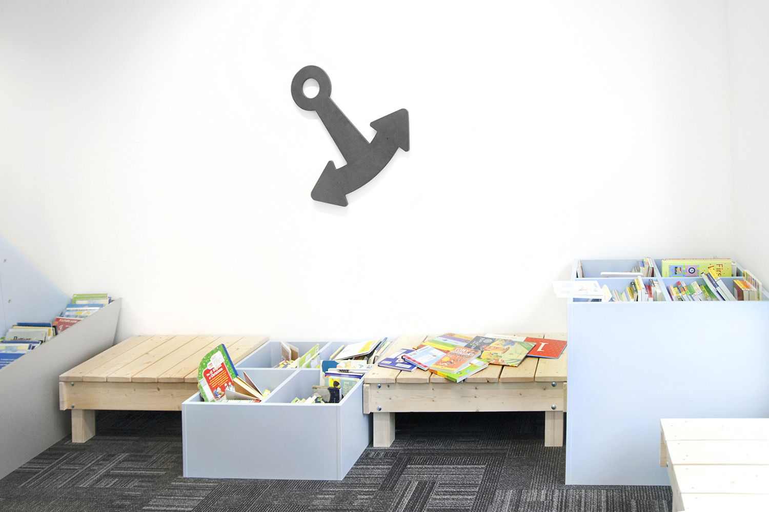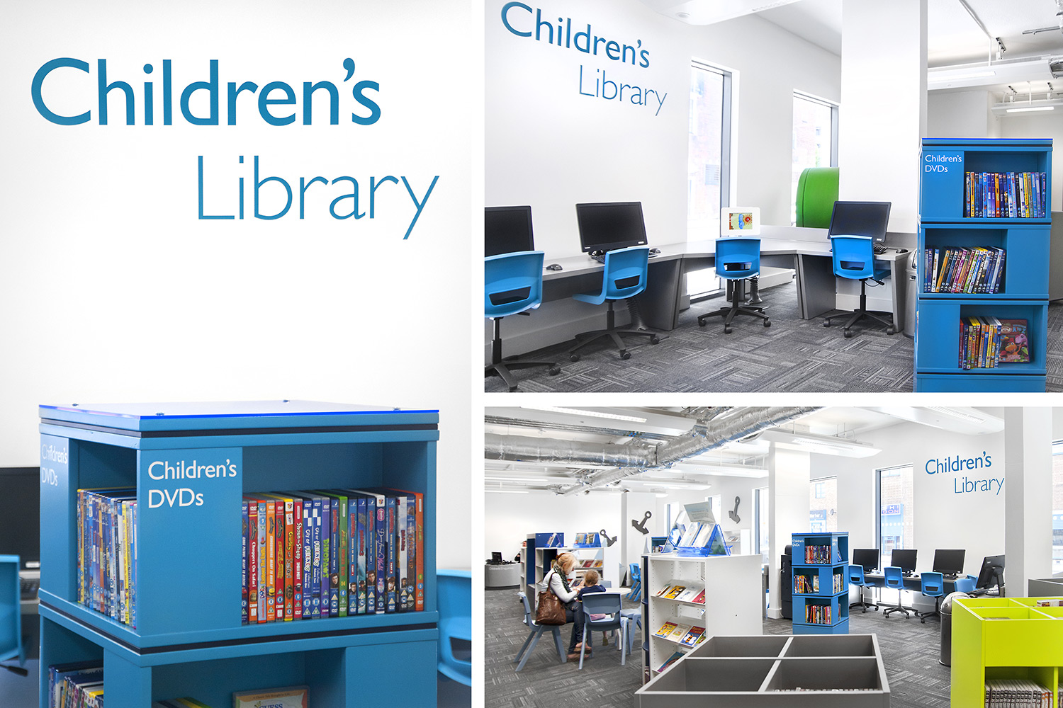 Då man önskat lyfta Greenwichs rika, maritima historia har barnavdelningen inretts i detta tema. Bilderbokslådor i form av båtar, hyllor dekorerade med vågor, ankare och ventiler för att lustfyllt väcka läslusten hos de små. Barnens bibliotek har även datorer och läsplattor tillgängliga för de yngre besökarna.