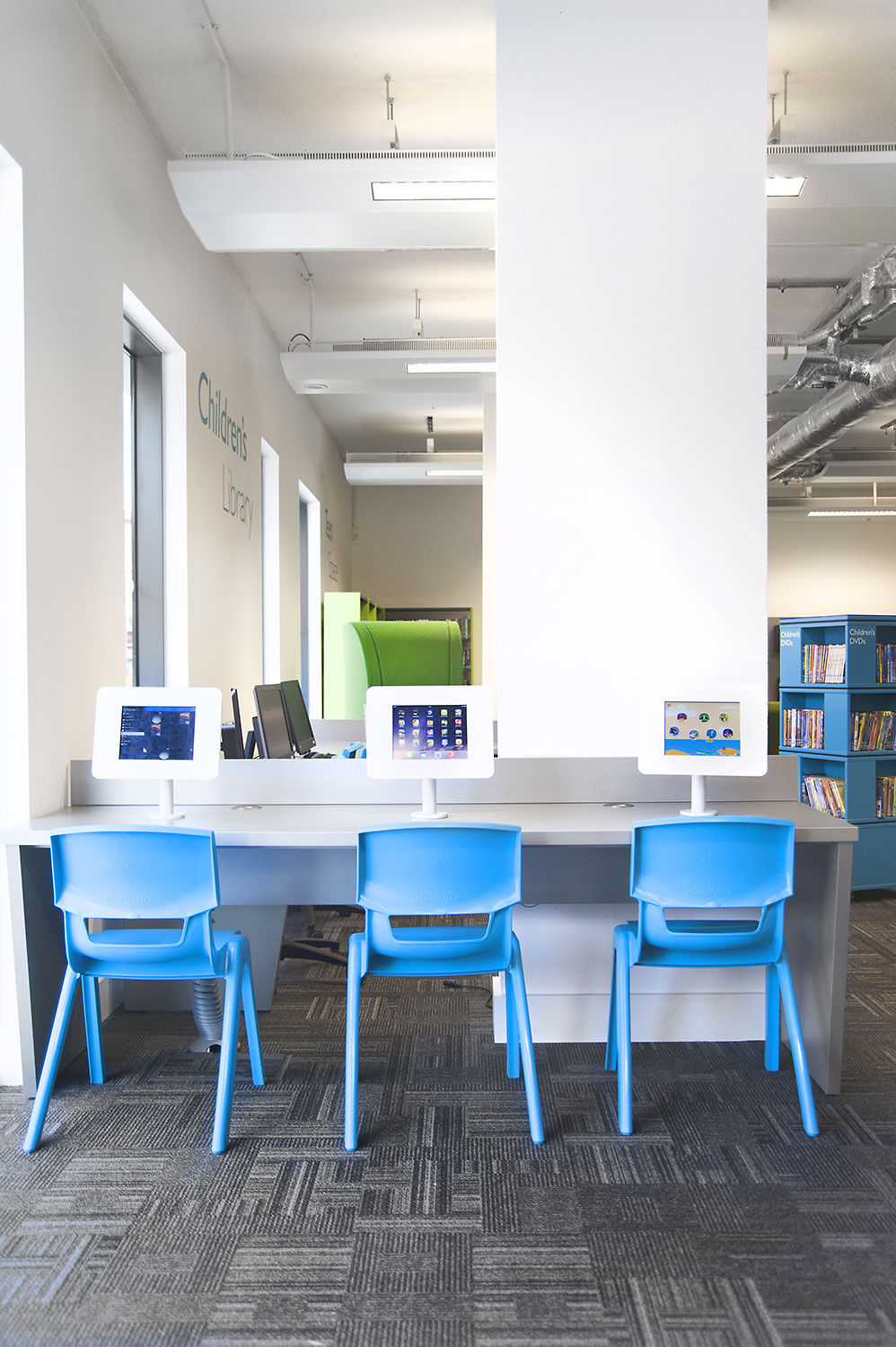 Biblioteket erbjuder en datorpark som är lätt tillgänglig för allmänheten att använda internet på. Laddstationer med laddningsmöjligheter för både telefoner och bärbara datorer finns i bibliotekets ”tysta” studiedel.