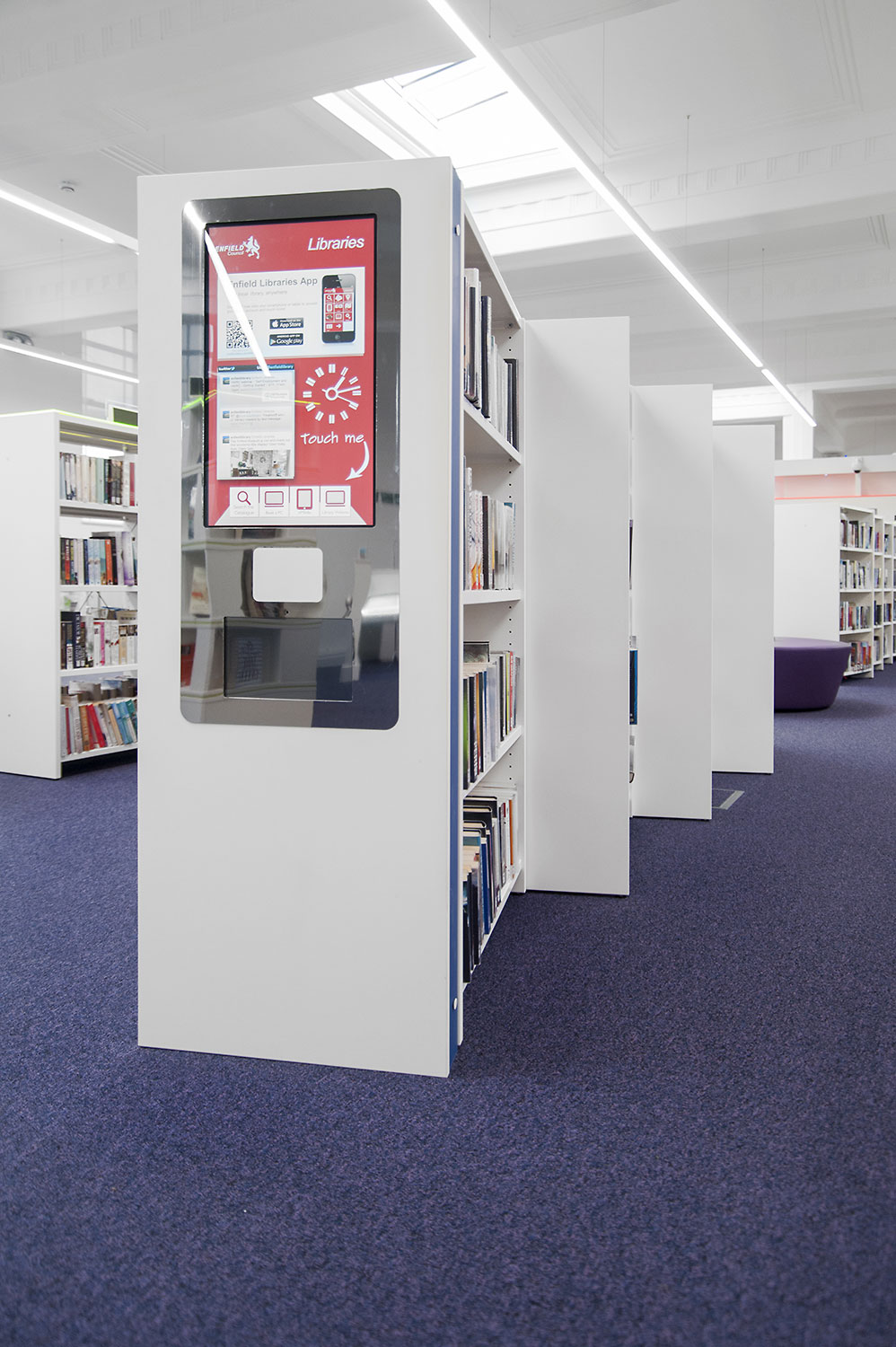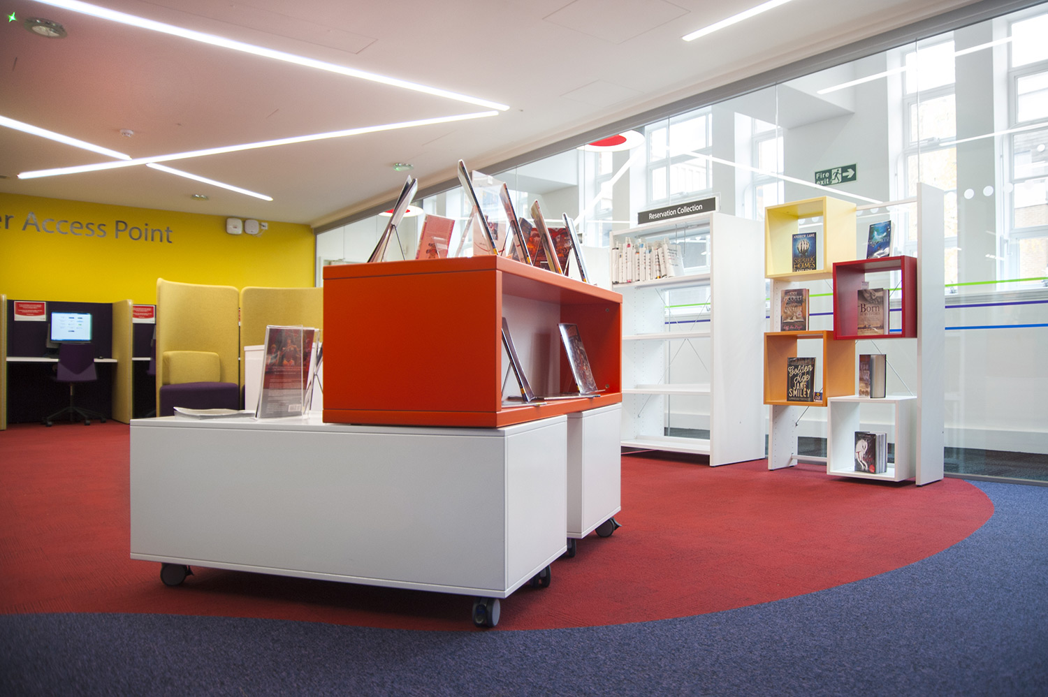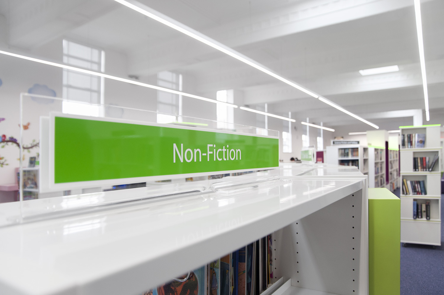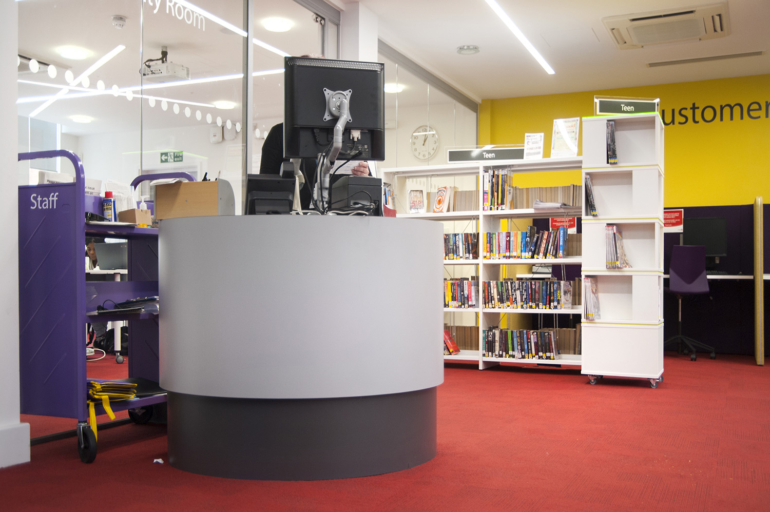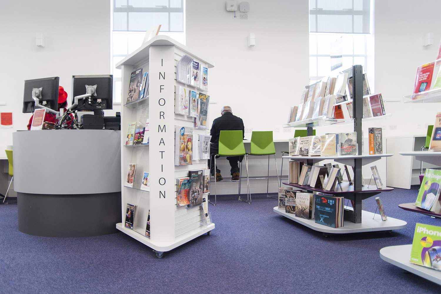 Produkter som används på Palmers Green bibliotek, London, Storbritannien