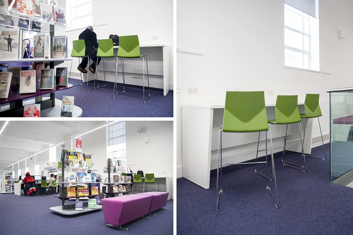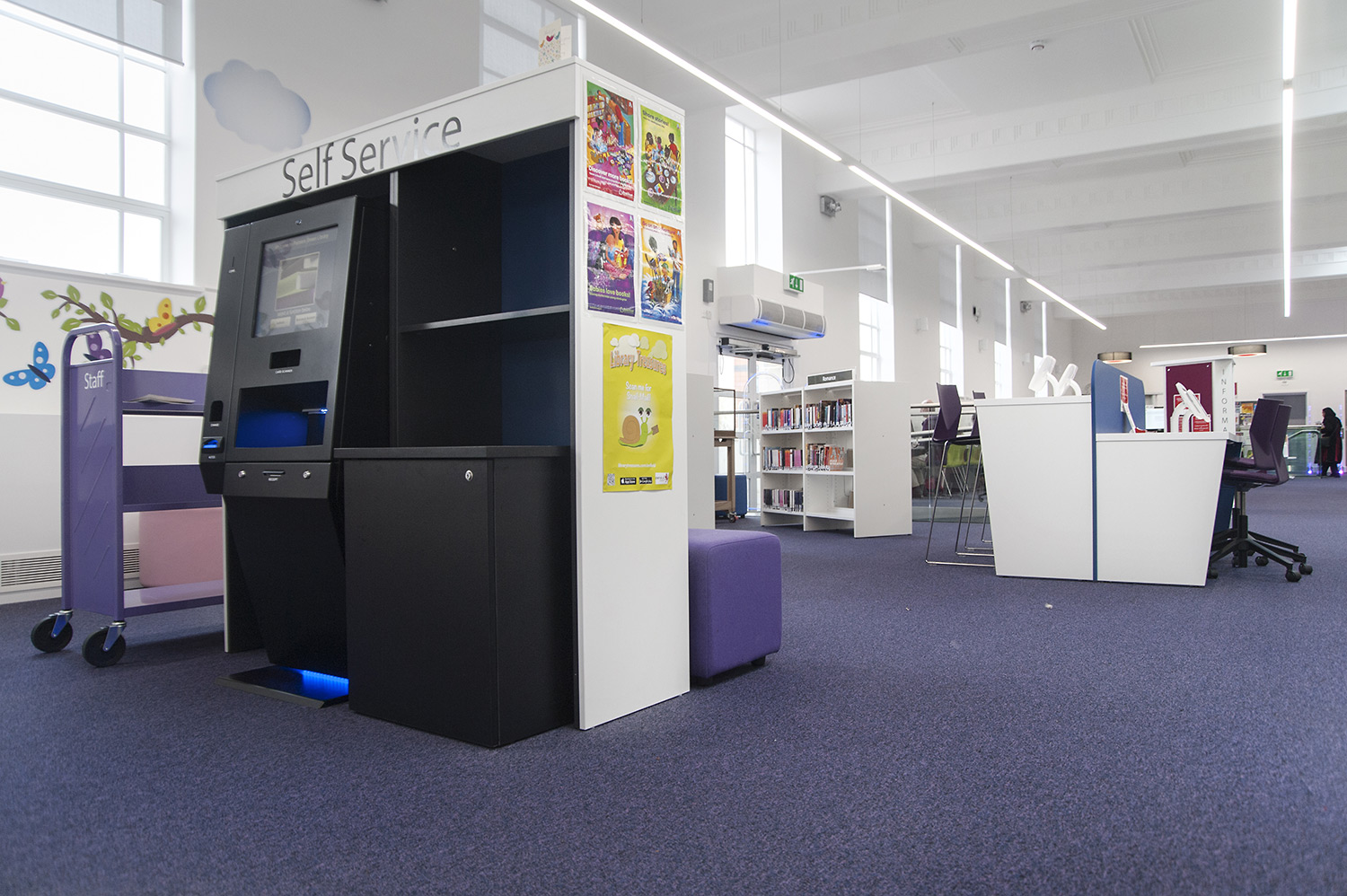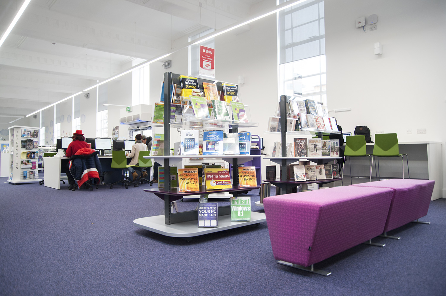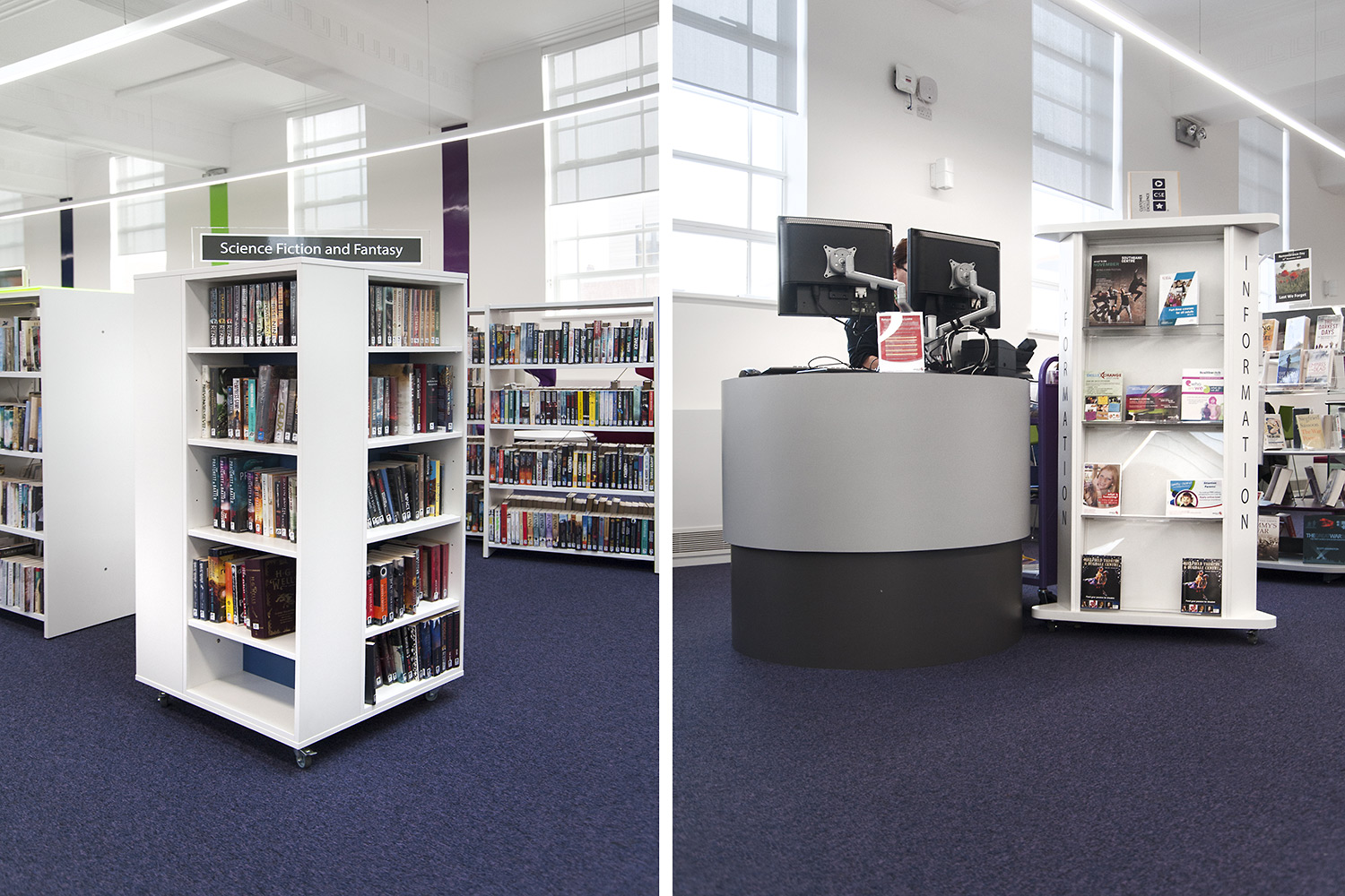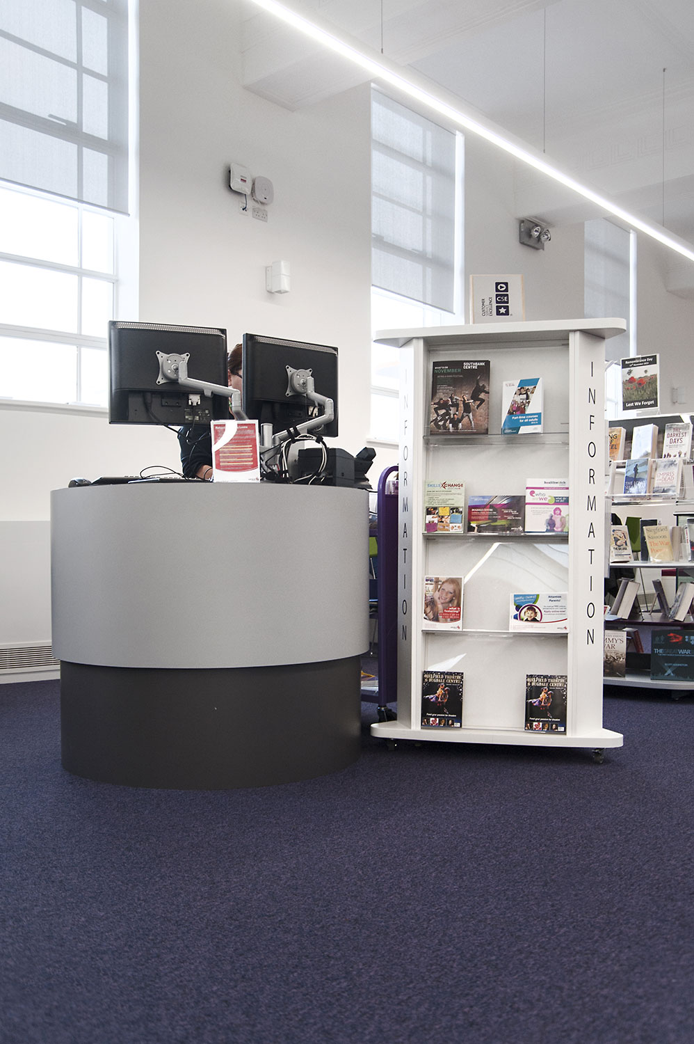 Produkter som används på Palmers Green bibliotek, London, Storbritannien