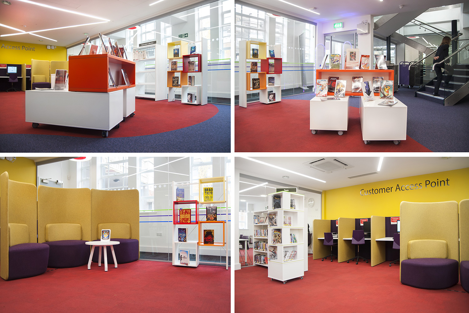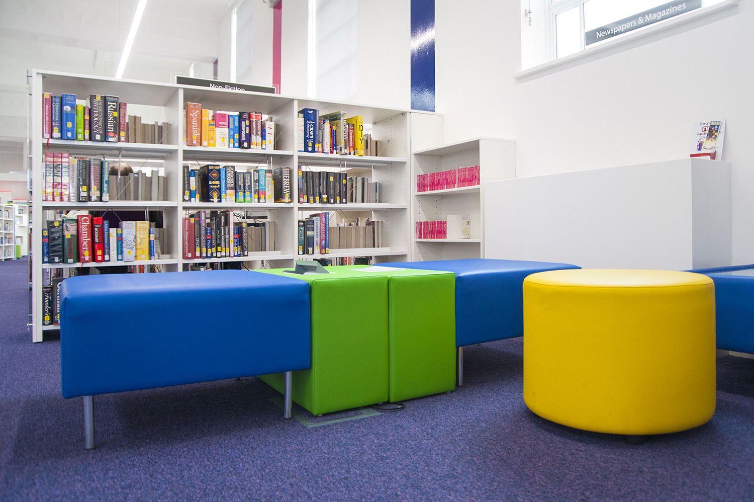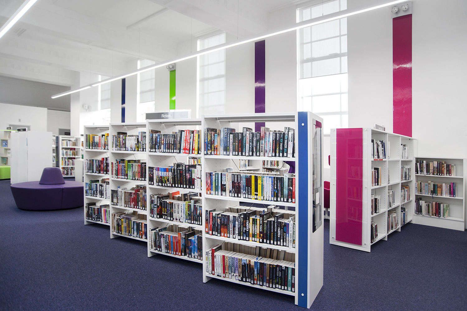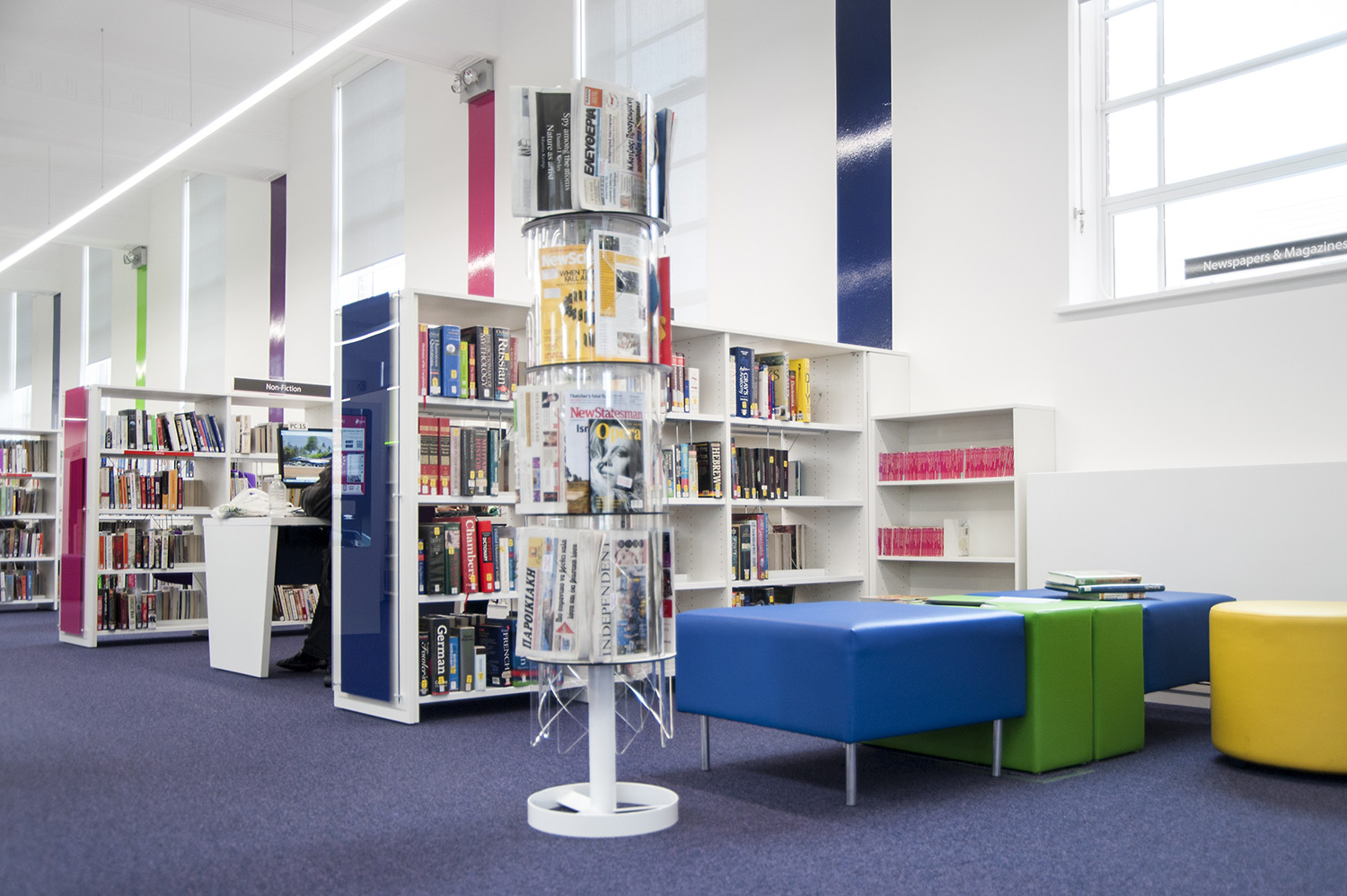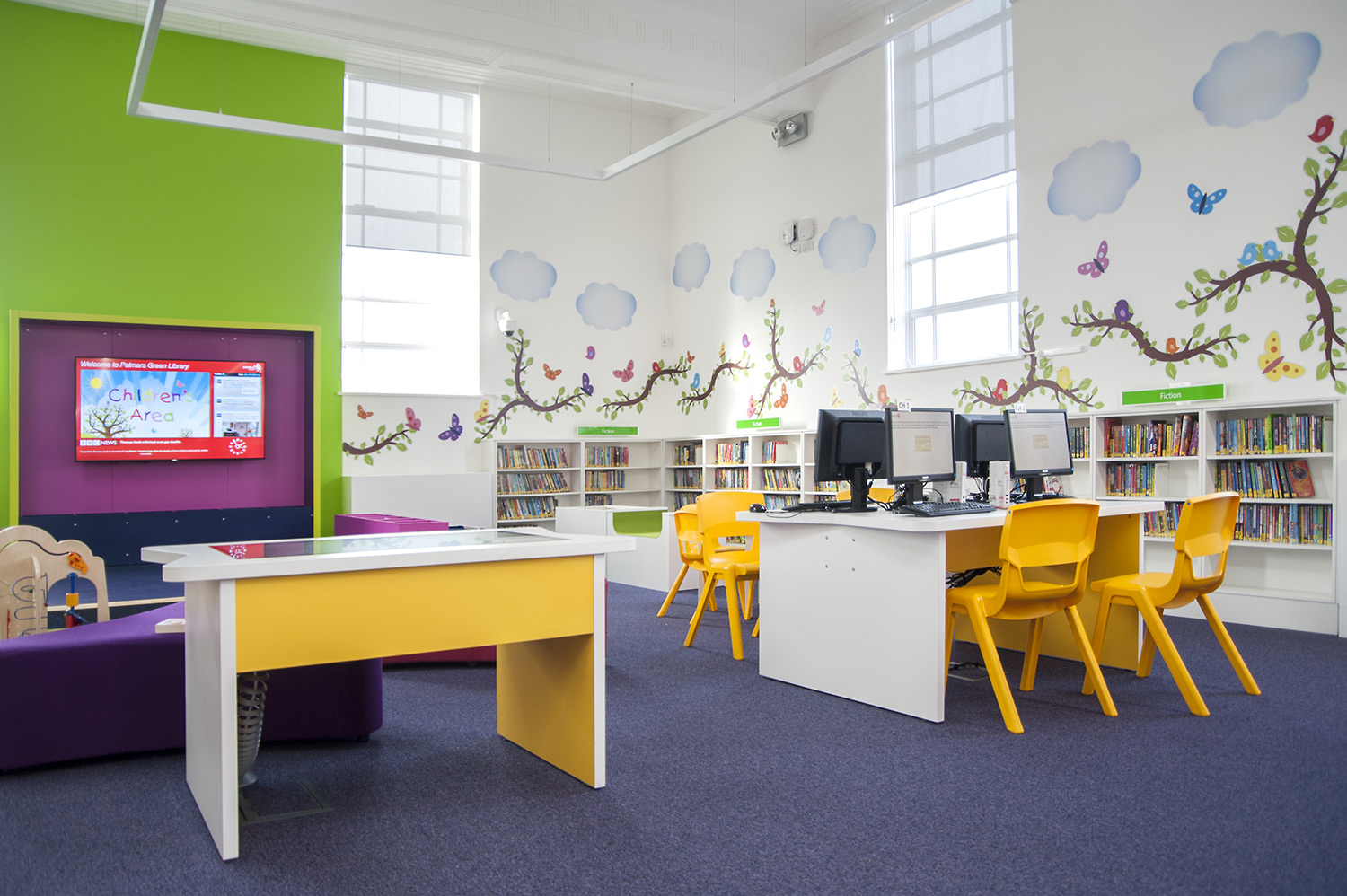Produkter som används på Palmers Green bibliotek, London, Storbritannien