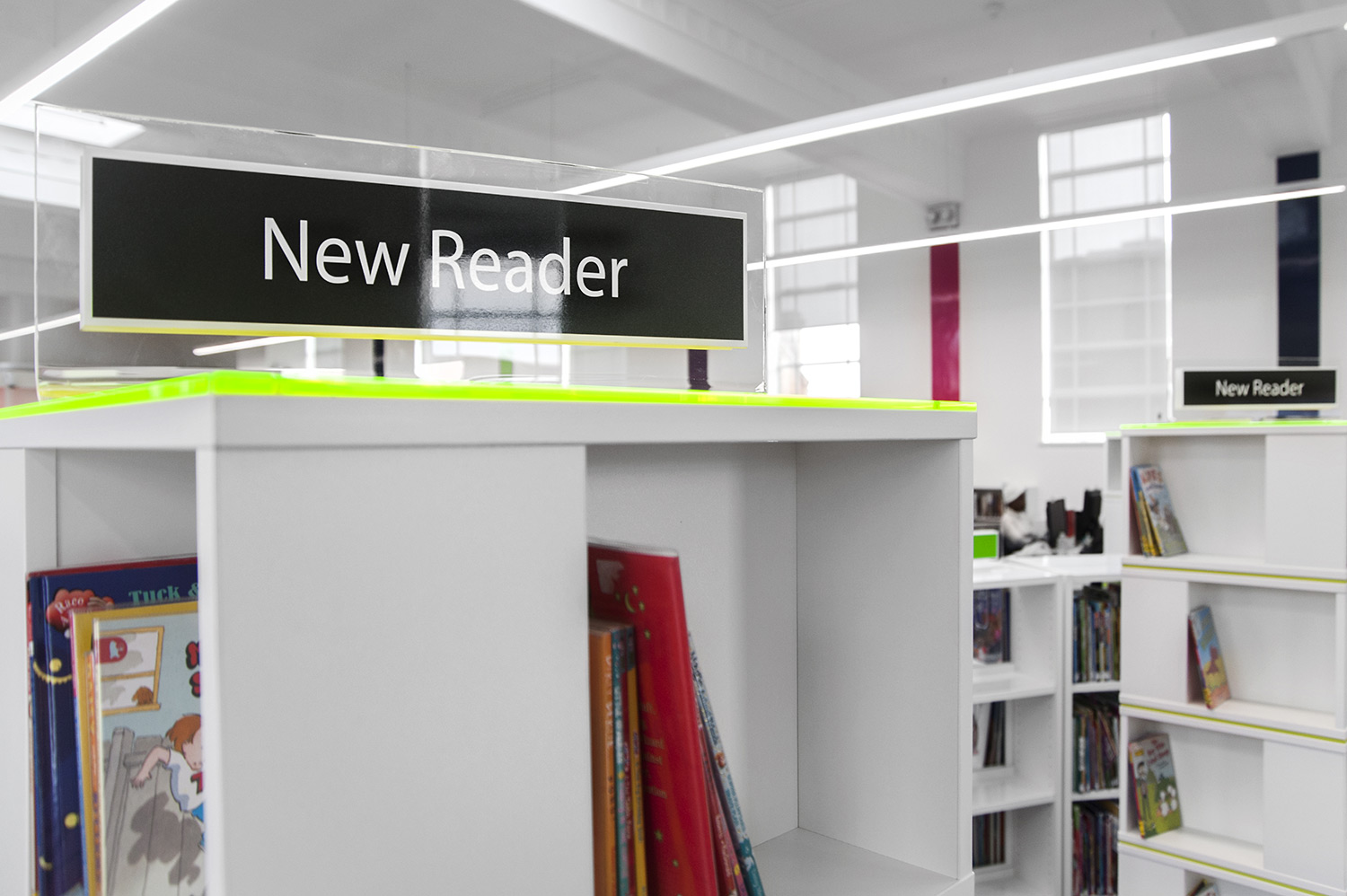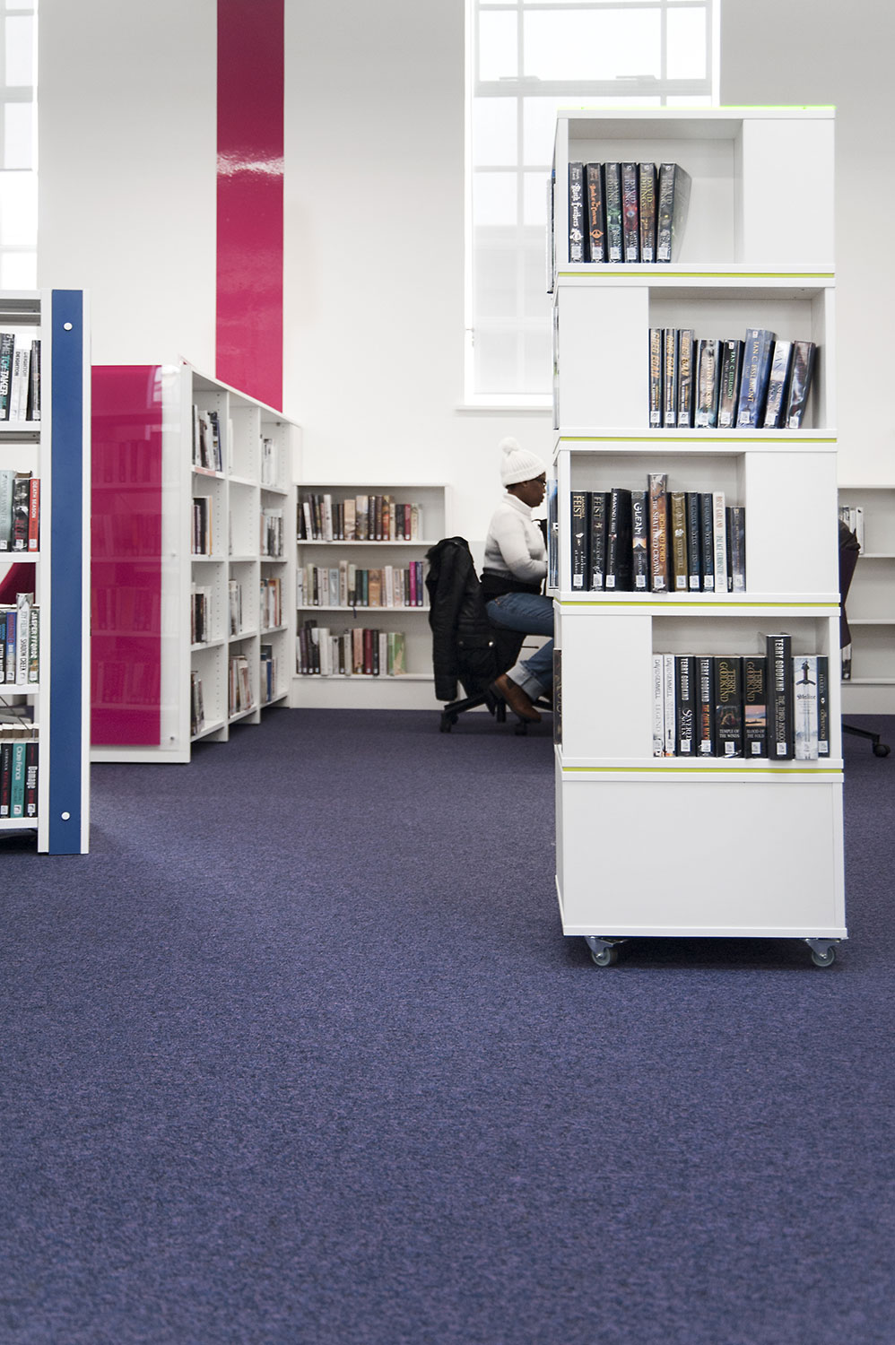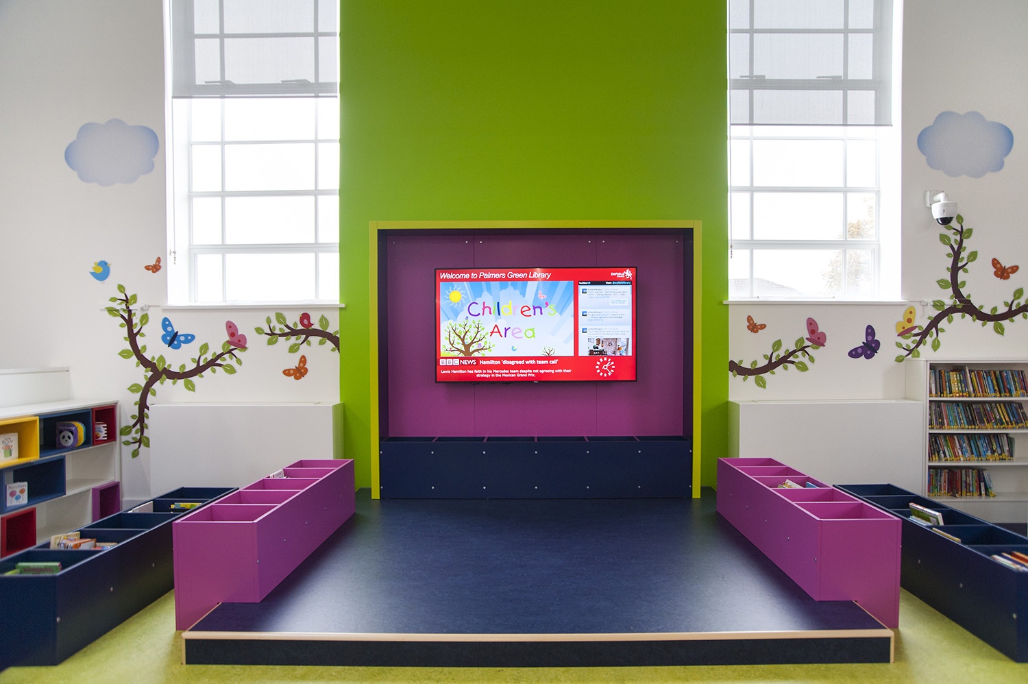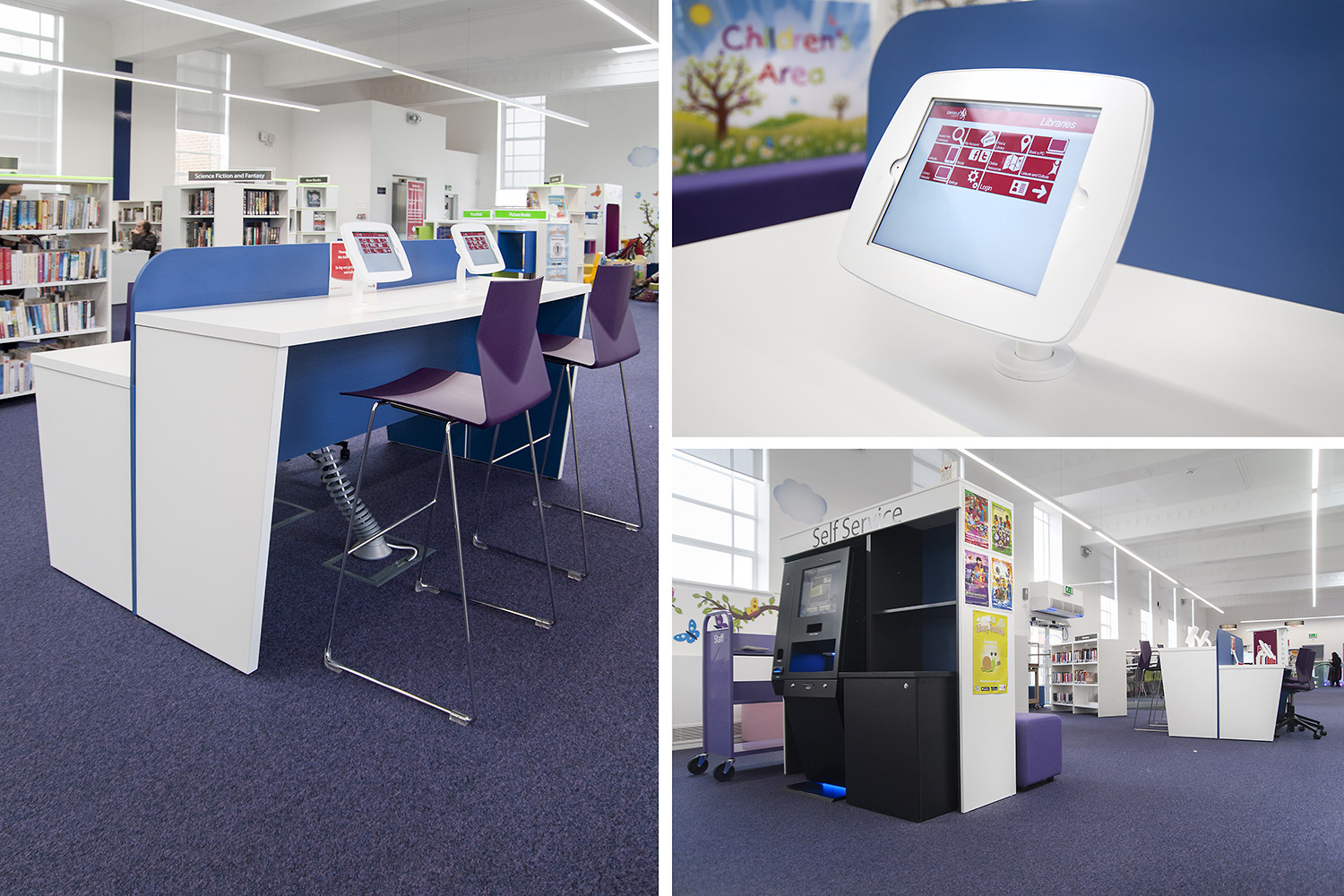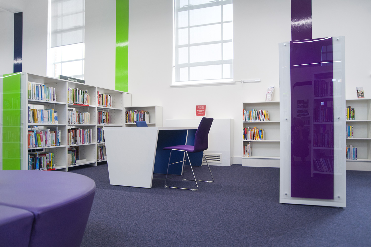 Produkter som används på Palmers Green bibliotek, London, Storbritannien
