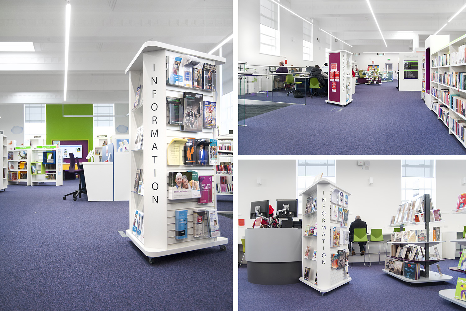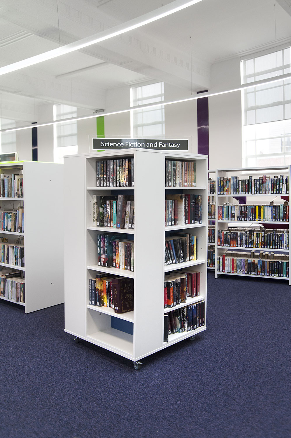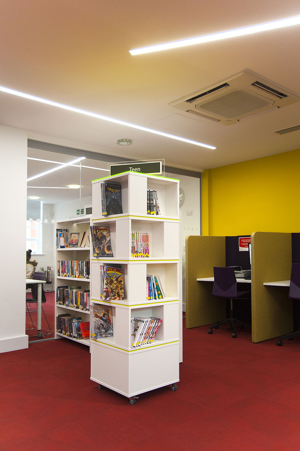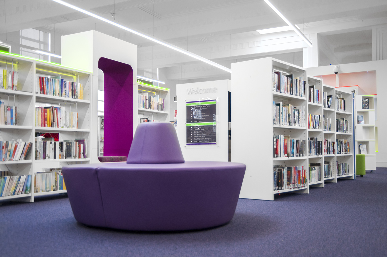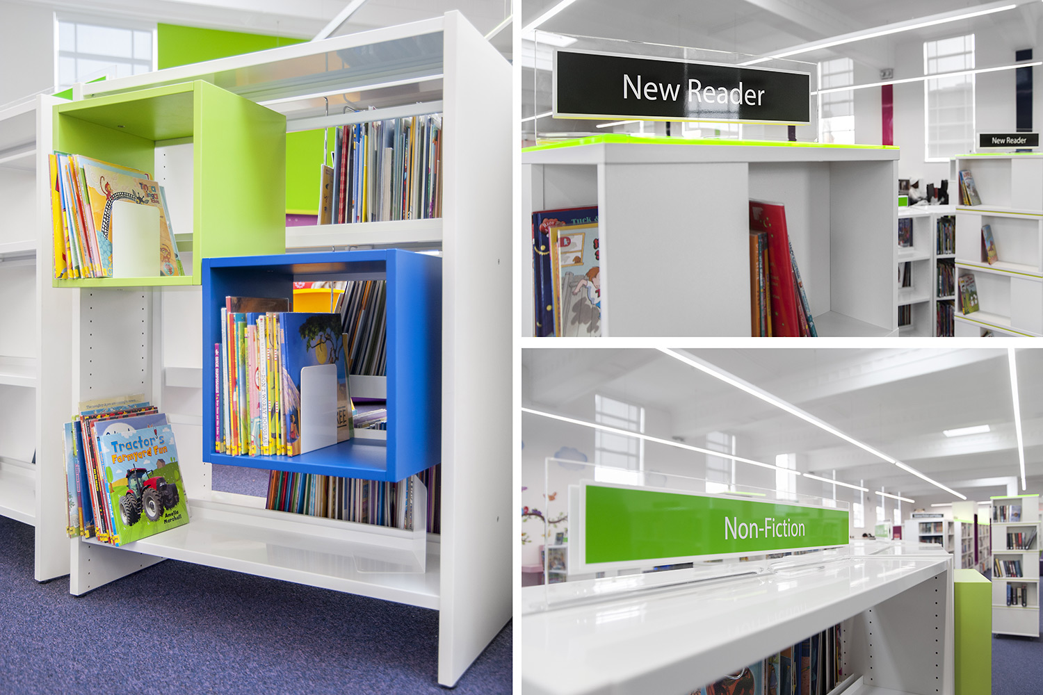 Produkter som används på Palmers Green bibliotek, London, Storbritannien