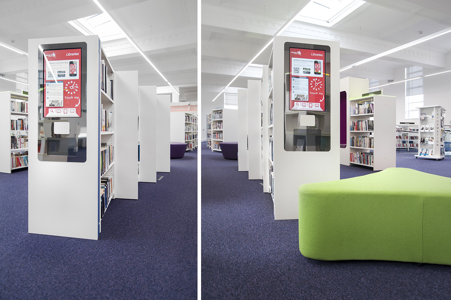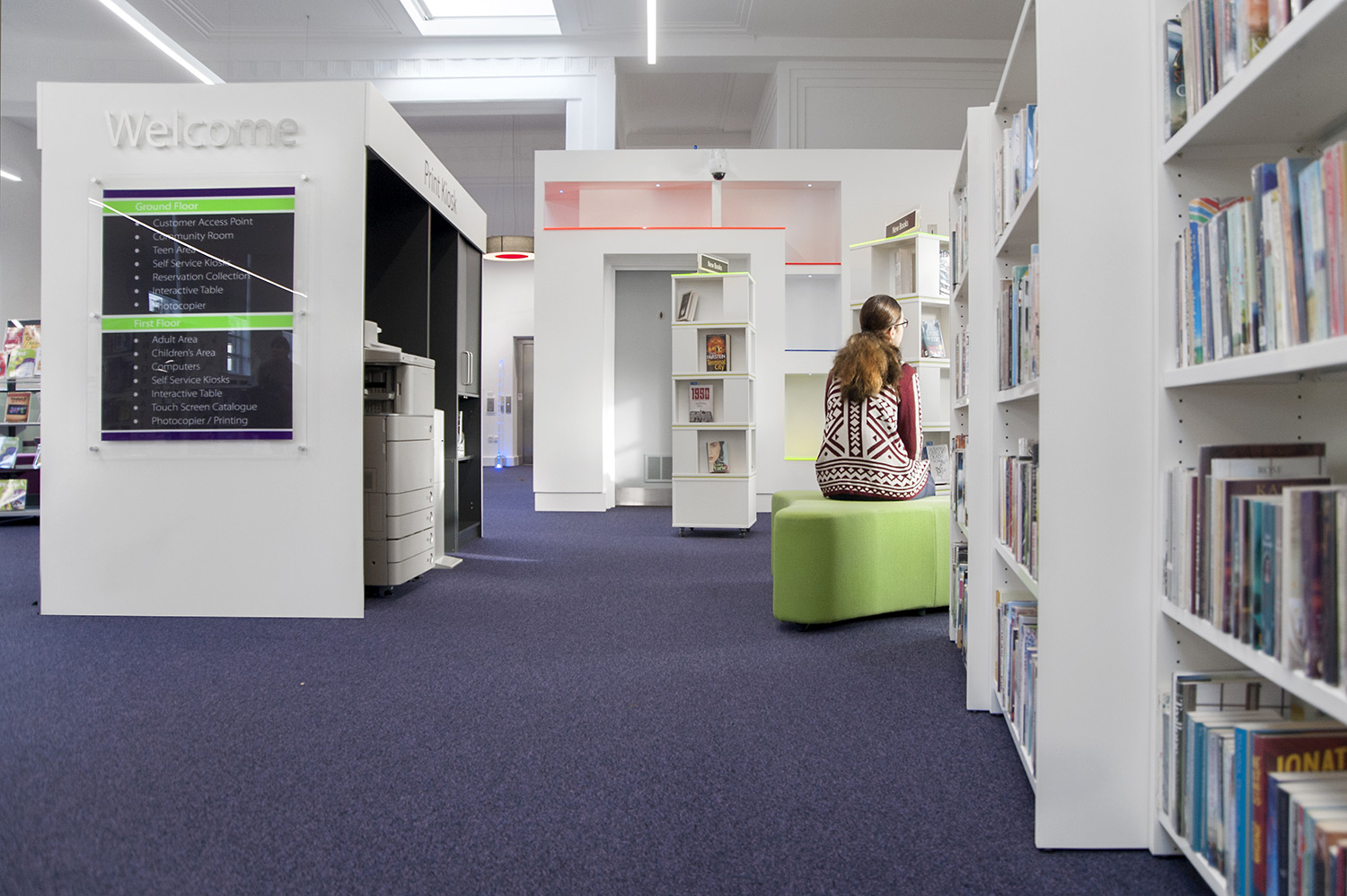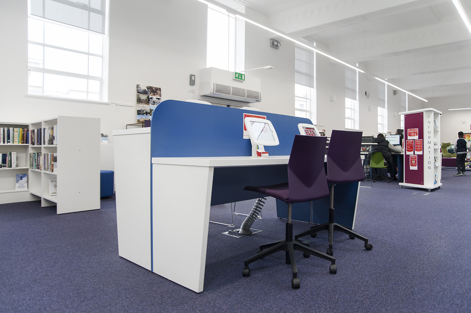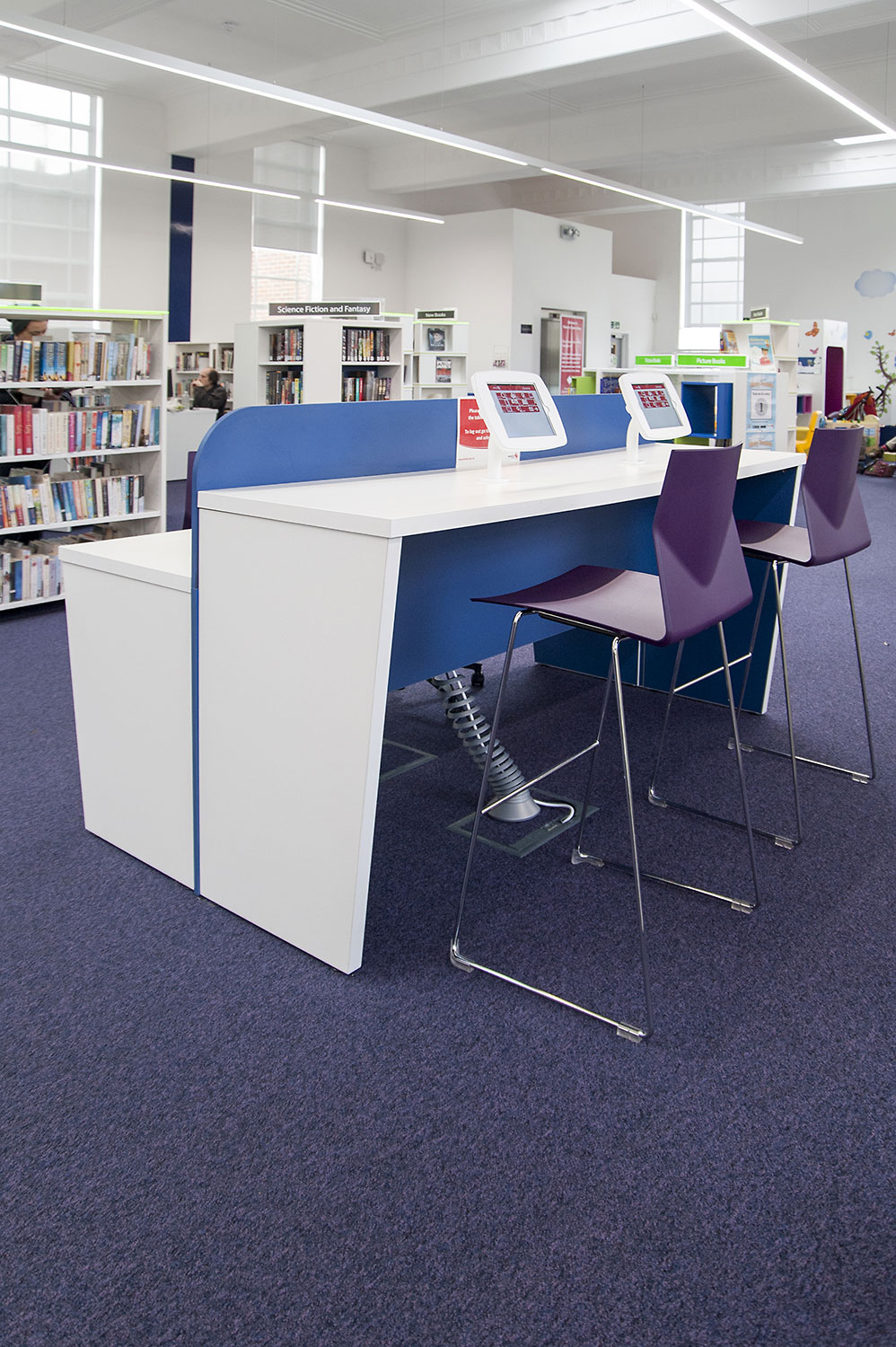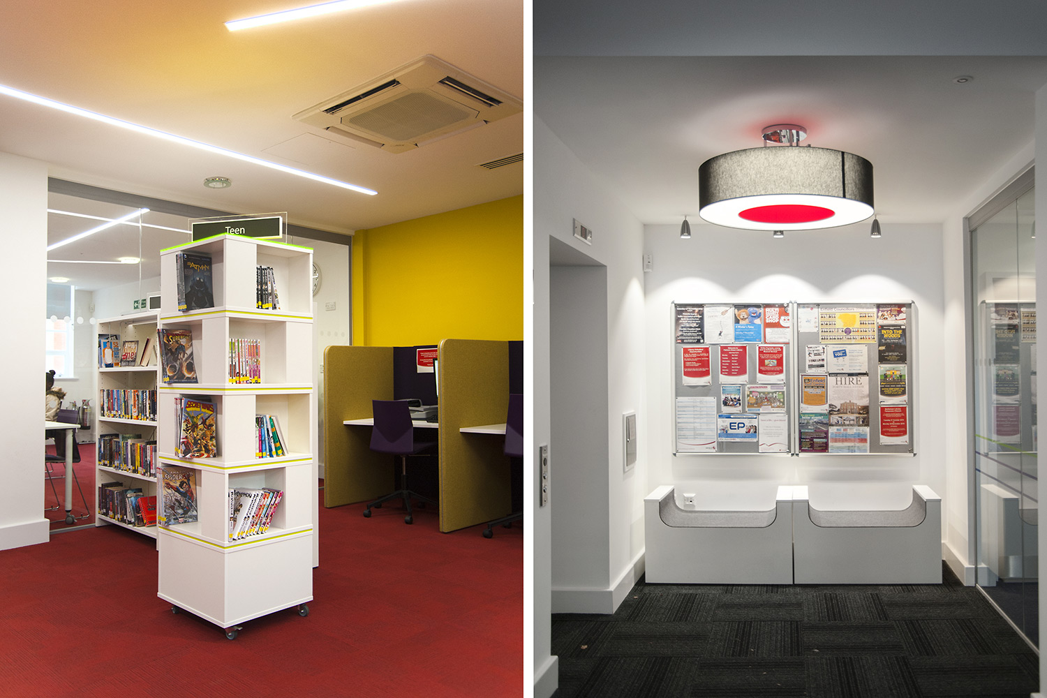 Produkter som används på Palmers Green bibliotek, London, Storbritannien