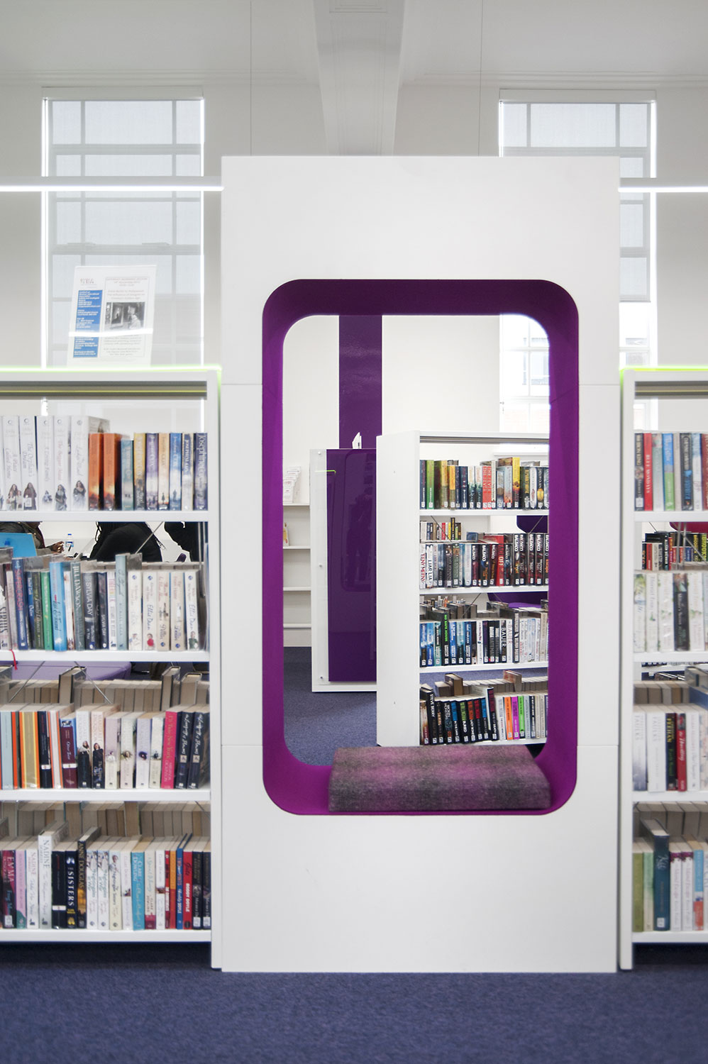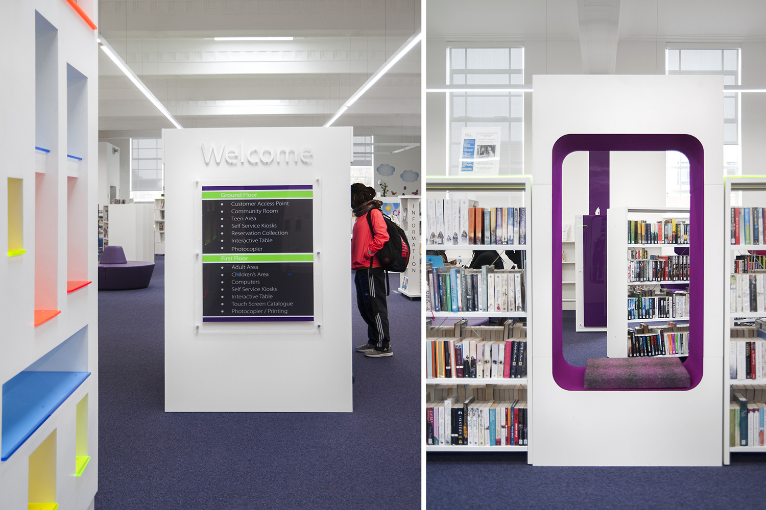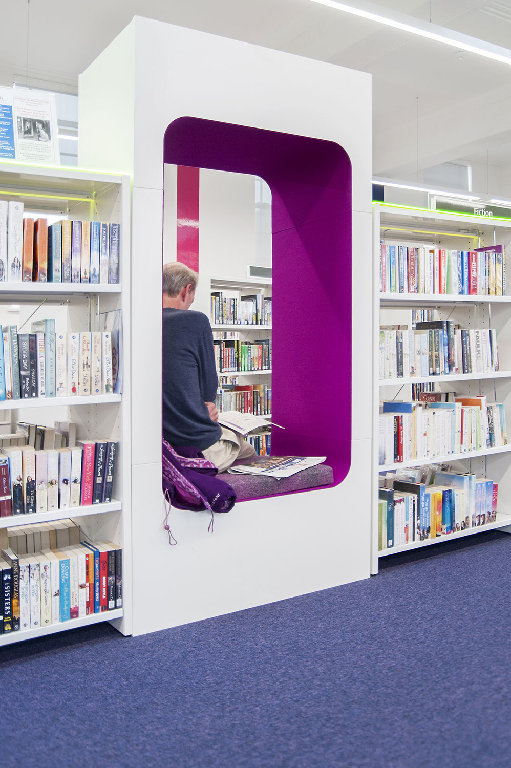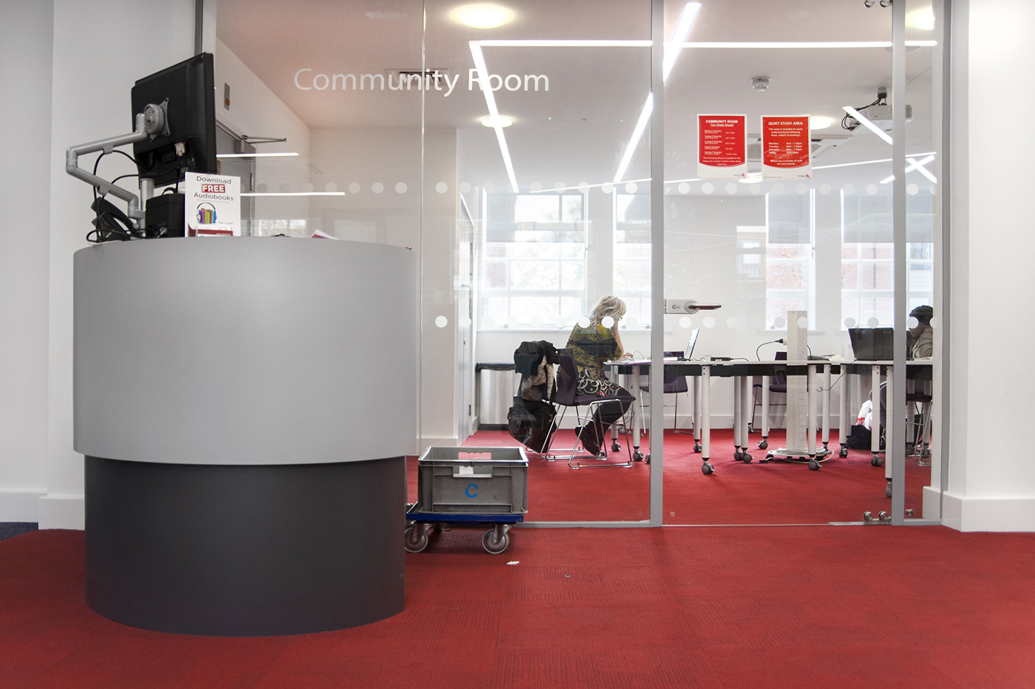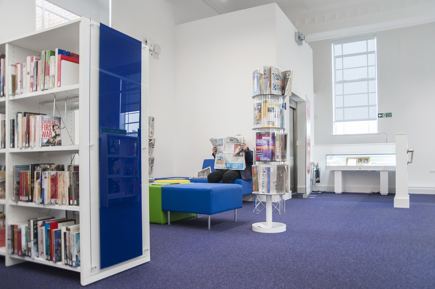 Produkter som används på Palmers Green bibliotek, London, Storbritannien
