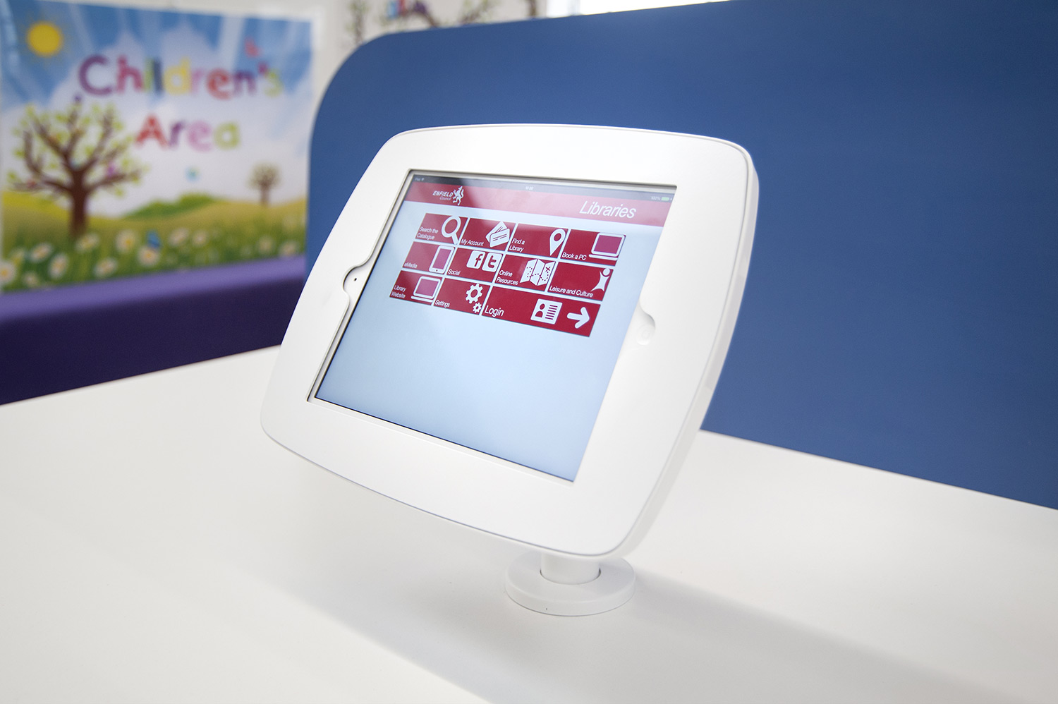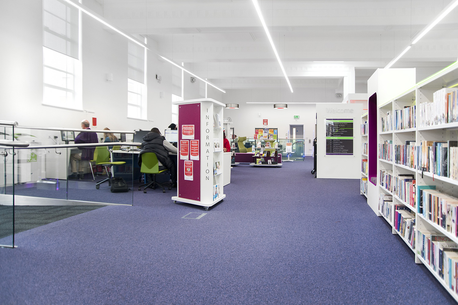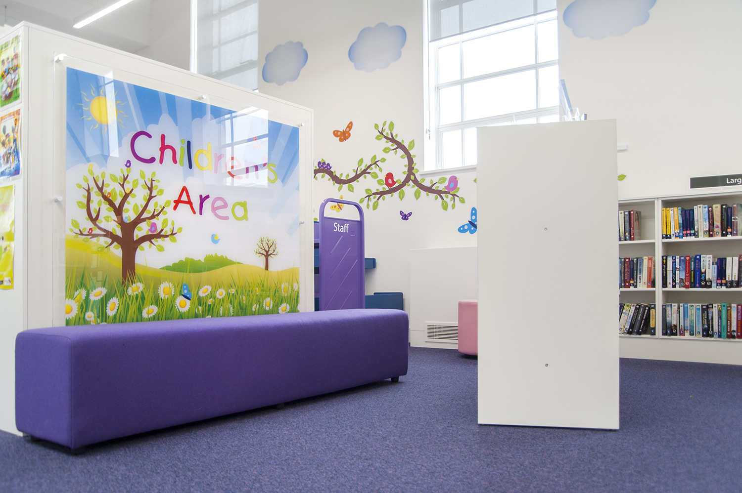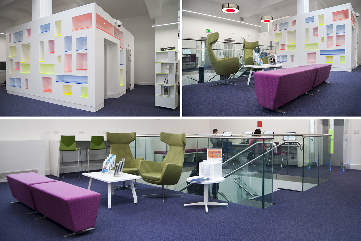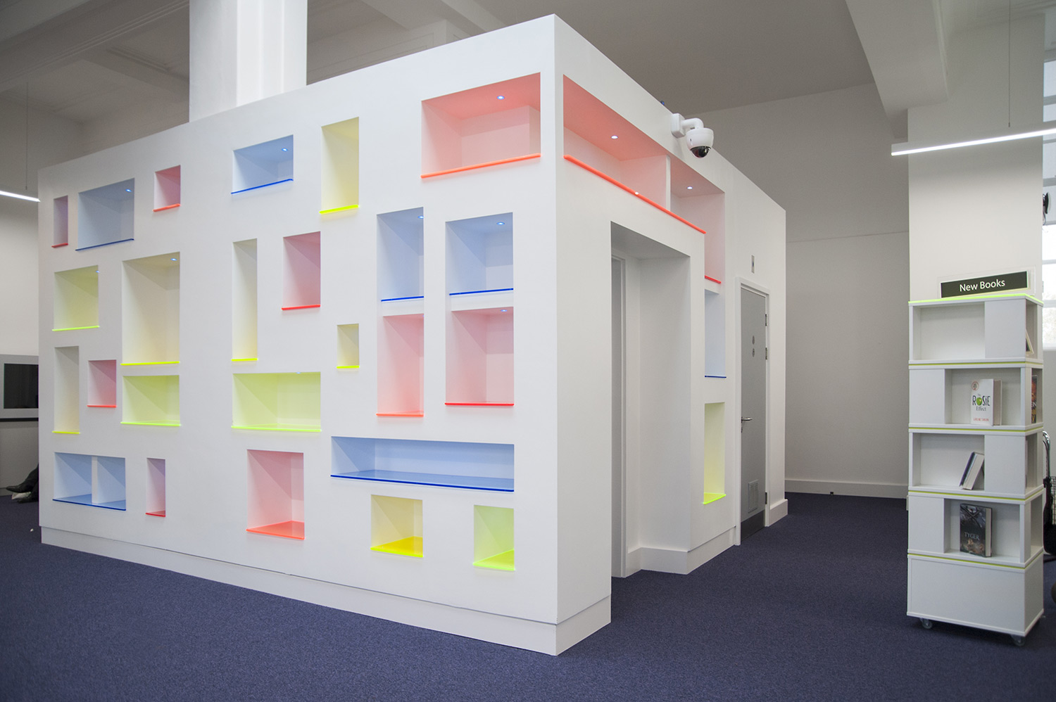 Produkter som används på Palmers Green bibliotek, London, Storbritannien