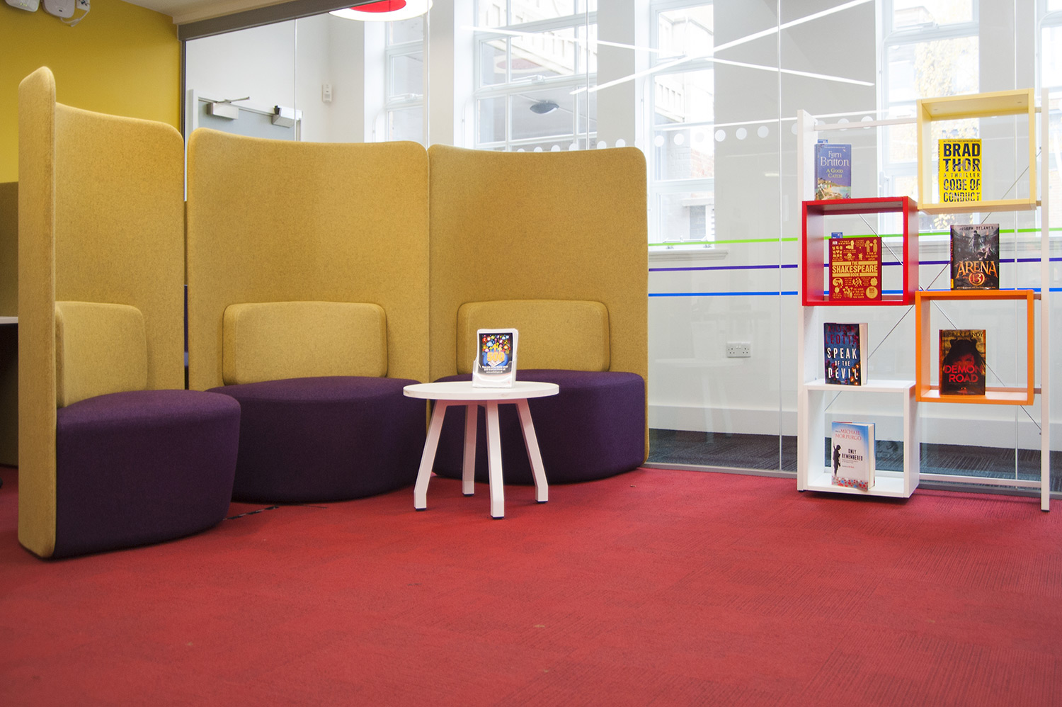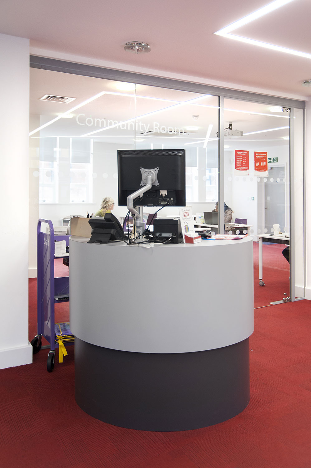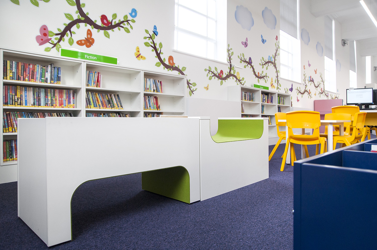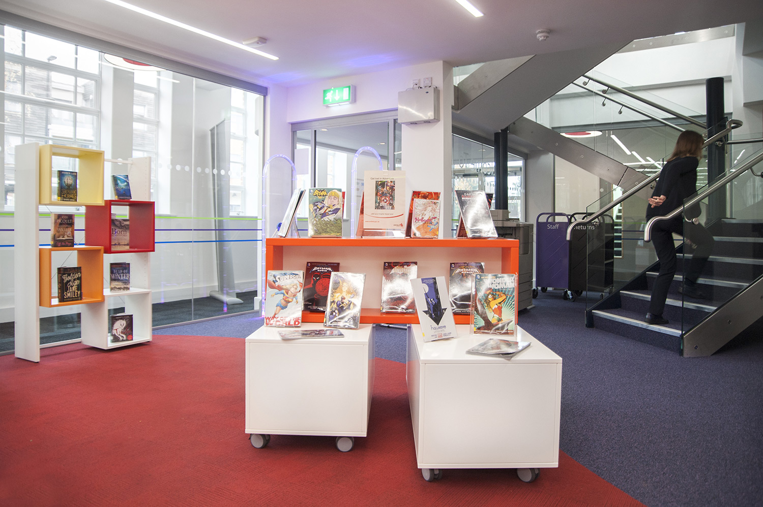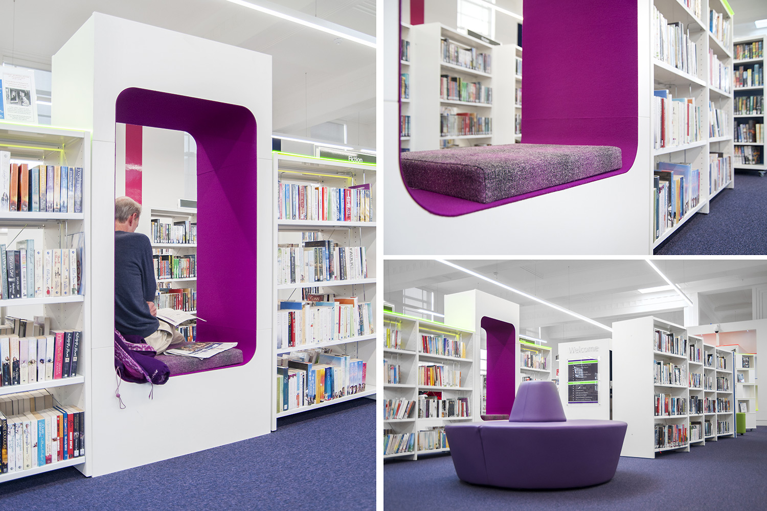 Produkter som används på Palmers Green bibliotek, London, Storbritannien