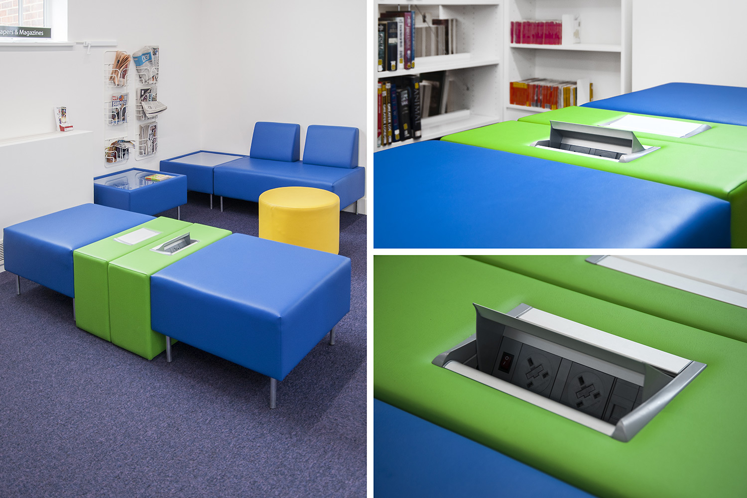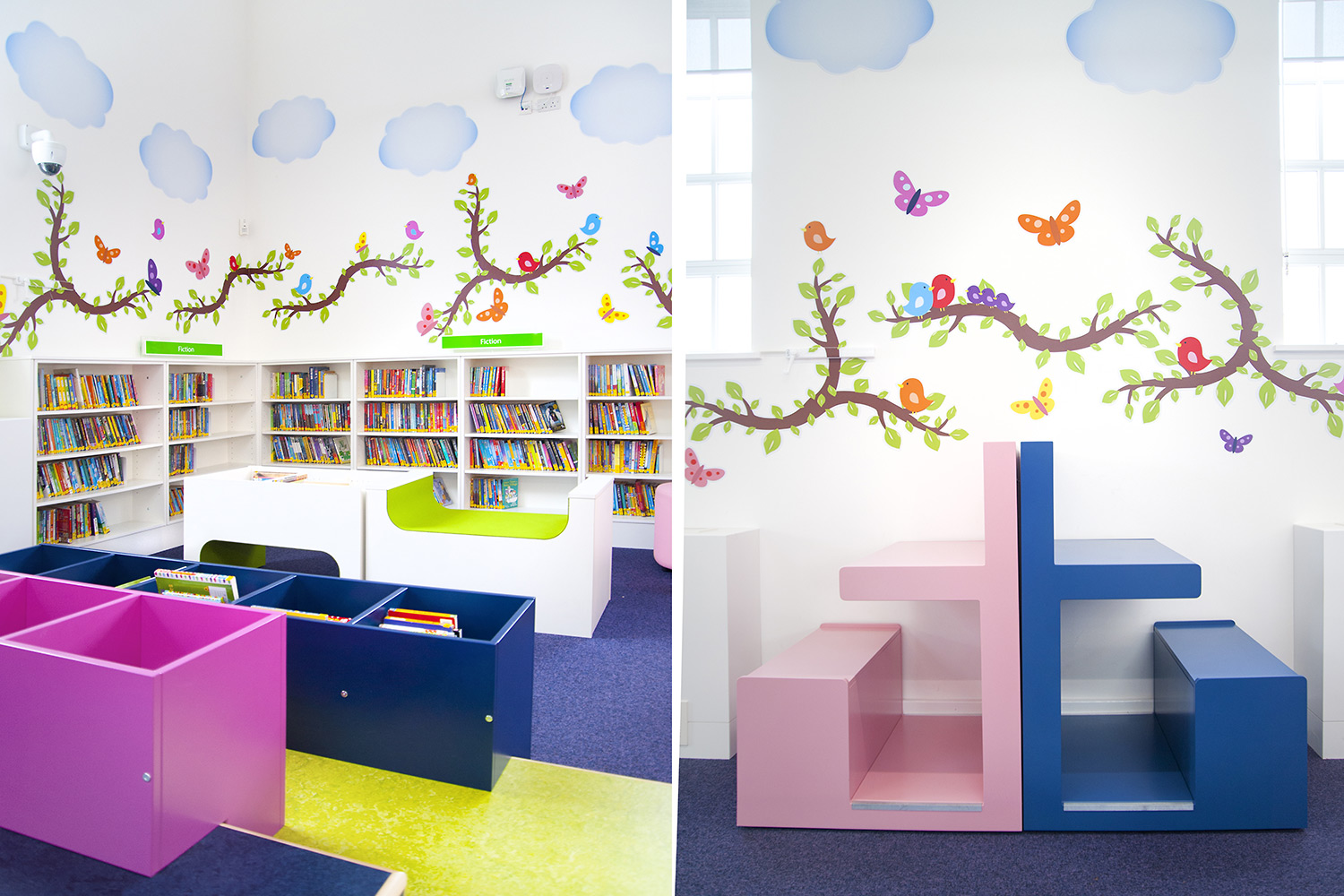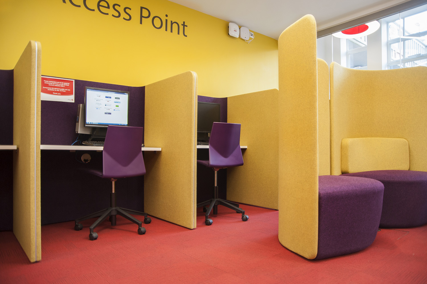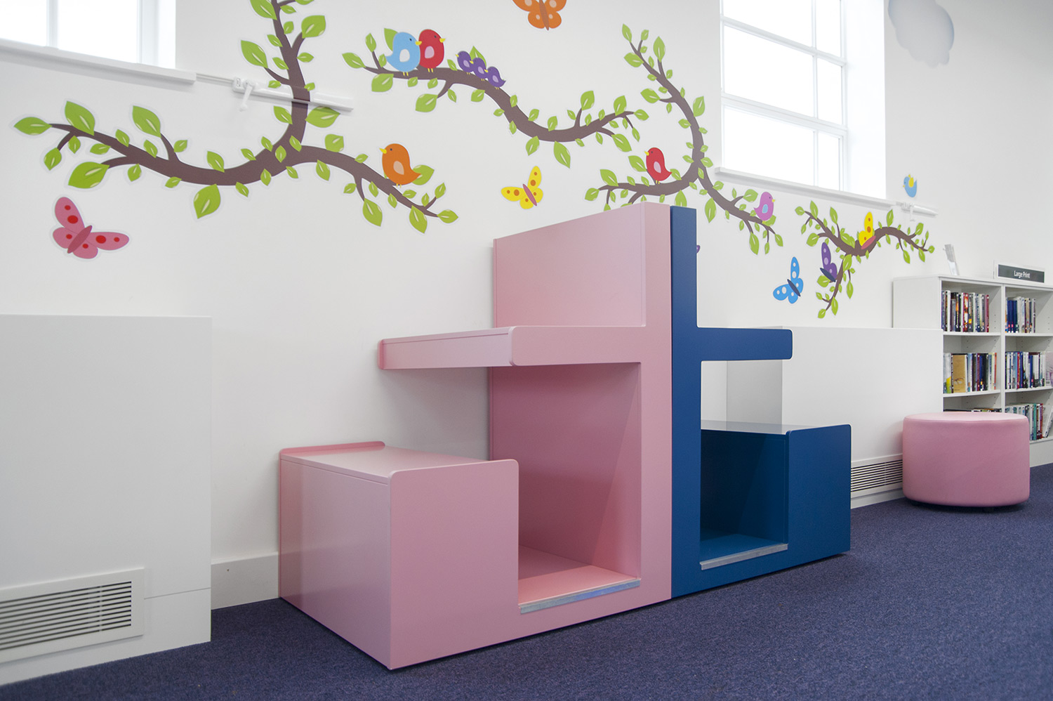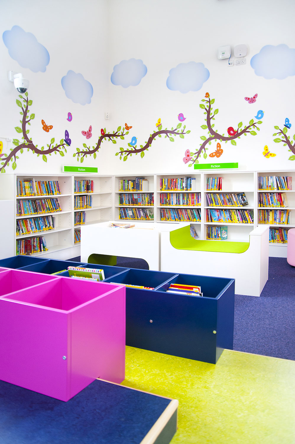 Produkter som används på Palmers Green bibliotek, London, Storbritannien