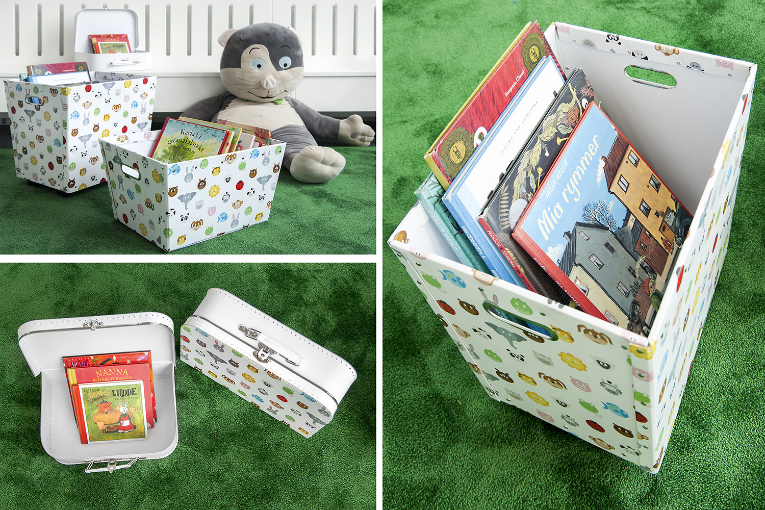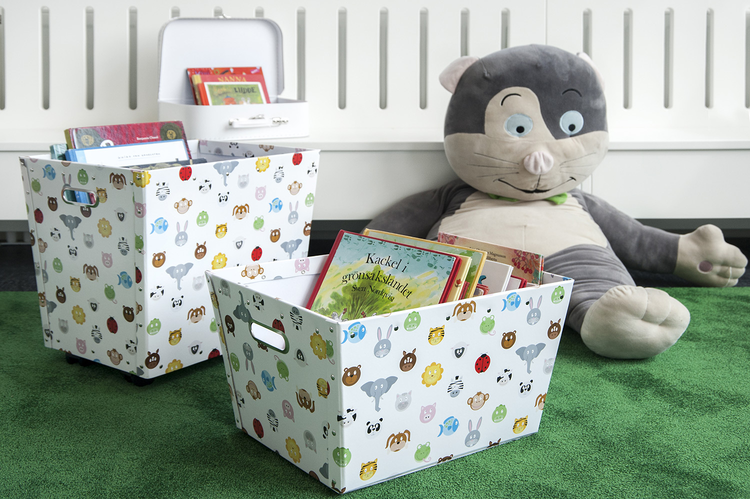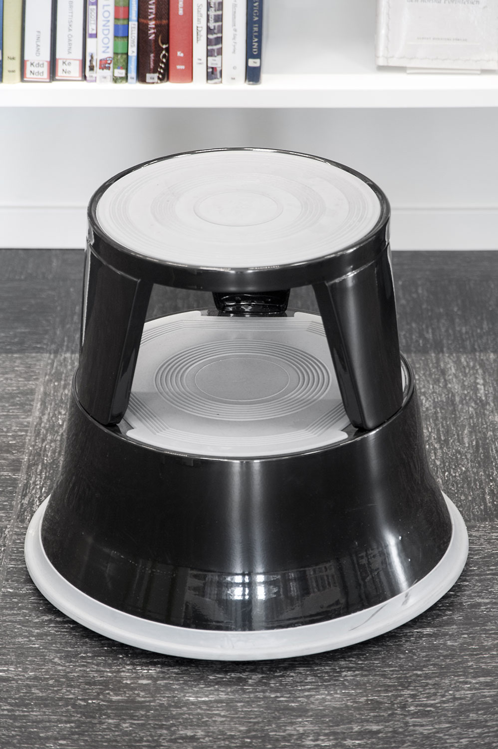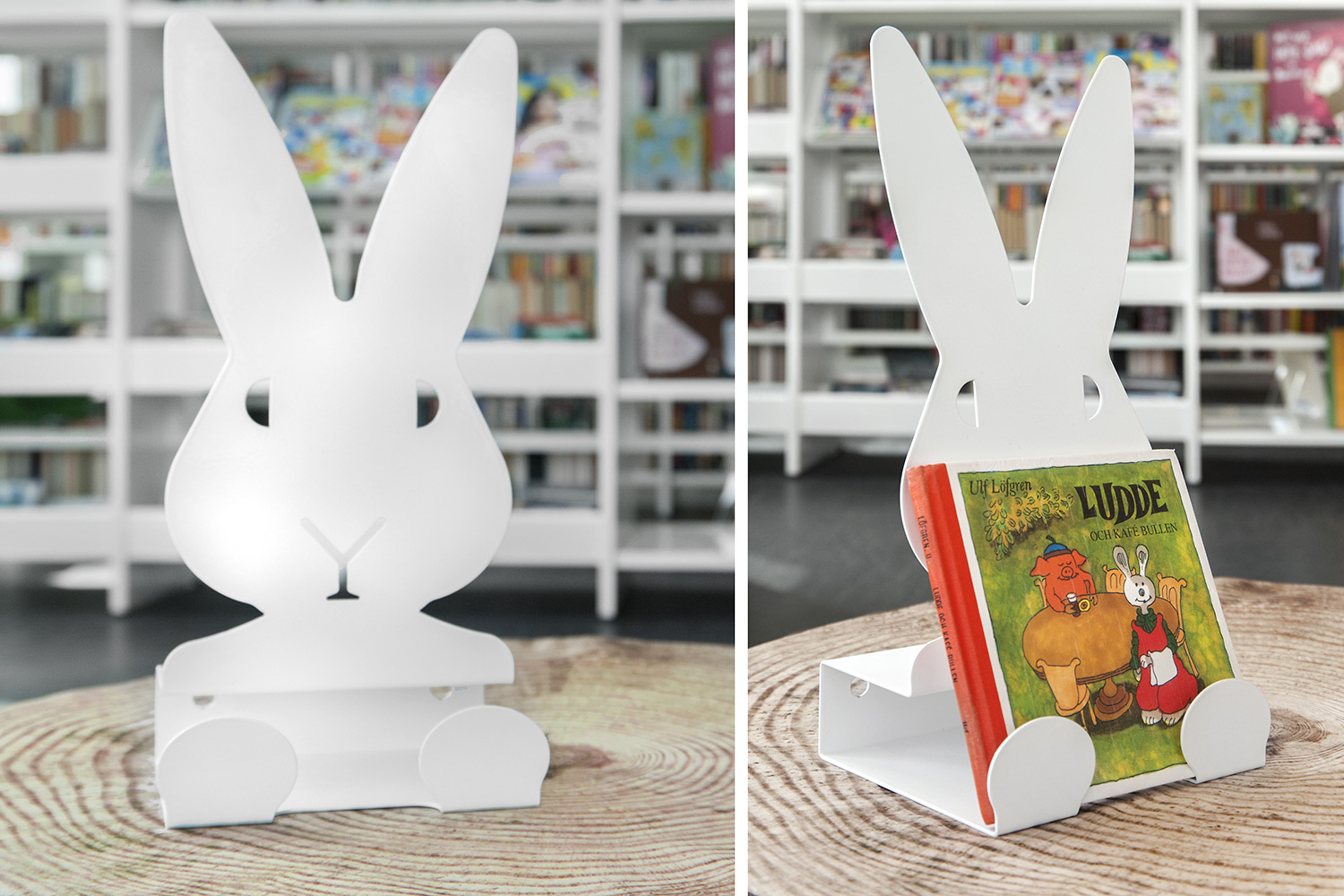 Hyllsystemen skulle delvis vara på hjul och därmed flyttbara för ökad flexibilitet och möjlighet att använda delar av lokalen till olika event. En del hyllgavlar har man använt till databord Eureka, andra låter man vara en del av skyltningen genom att använda text på. För att exponera nyheter, teman och skapa intresse använder man Quattro exponeringstorn i vitt och orange i två olika höjder