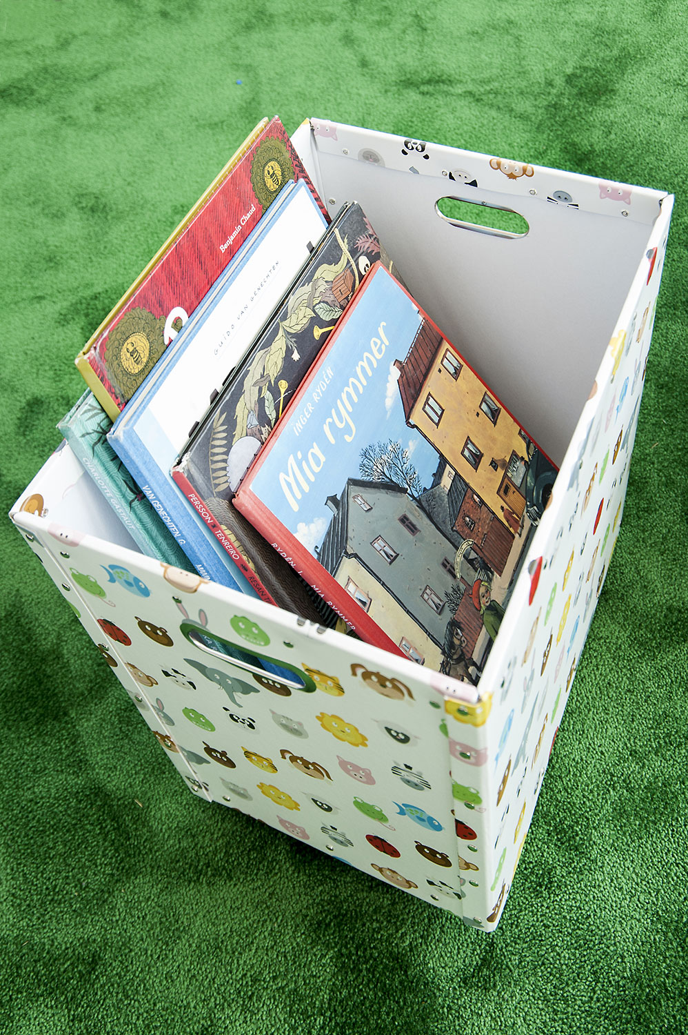 För att göra det enklare för låntagarna att hitta så strävar man dock mot att både skylta och märka i allt större grad med hjälp av färger och symboler. Hyllgavlar och pelare används redan nu till skyltning och tydliga texter talar om vad som finns var.