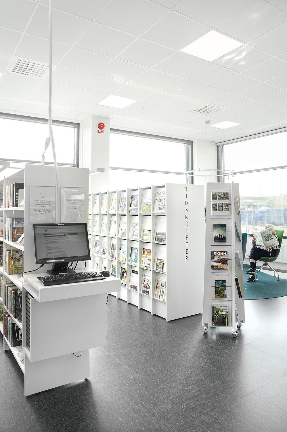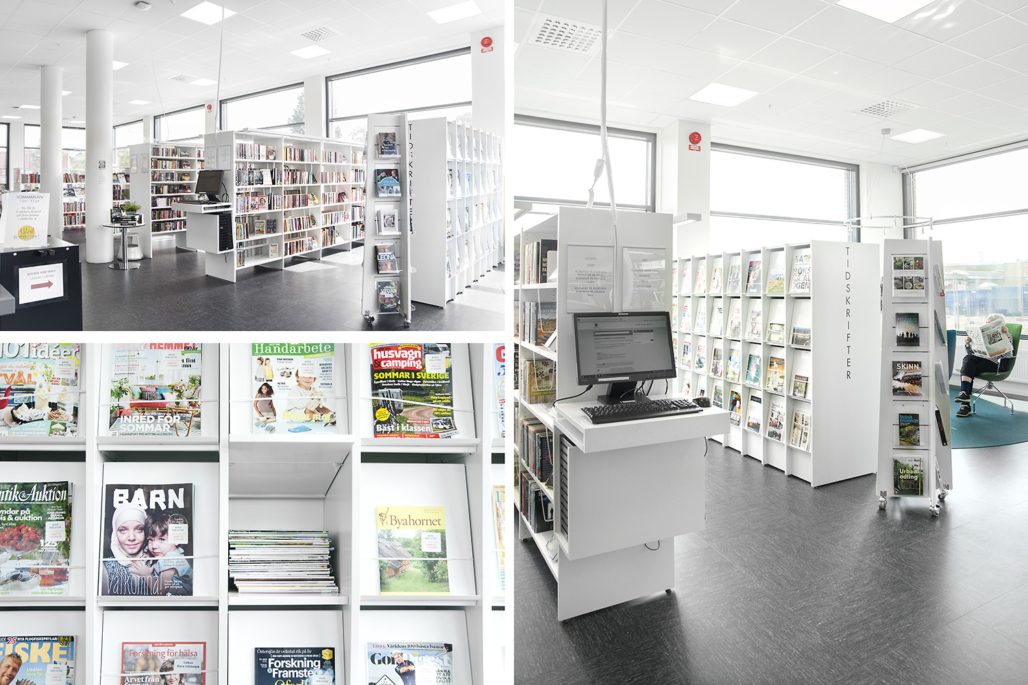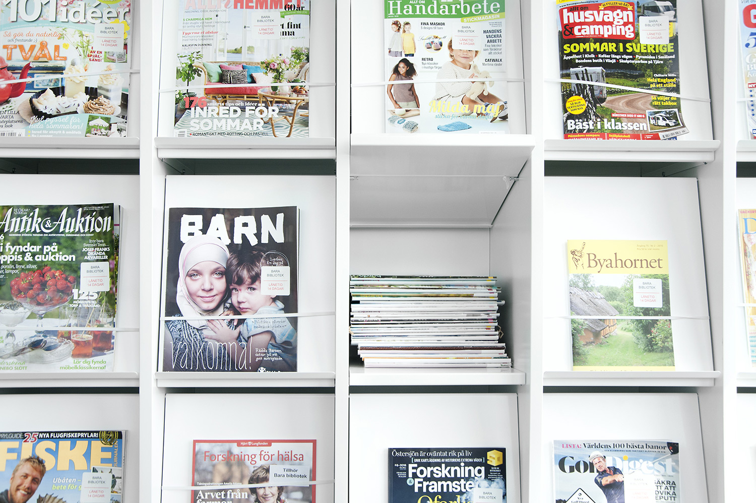 Att allt ska vara tillgängligt ställer krav på möblerna; tex måste både tidskrifter och dagstidningar vara lätta att komma åt. Både senaste nummer men även äldre exemplar. Med funktionen förvaring/exponering i Frontline där dagstidningsförvaring bakom exponeringshyllplanen fungerar utmärkt uppfyllde hyllorna från Lammhults biblioteksdesign dessa krav väl och är idag en mycket uppskattad lösning både hos personal och besökare.