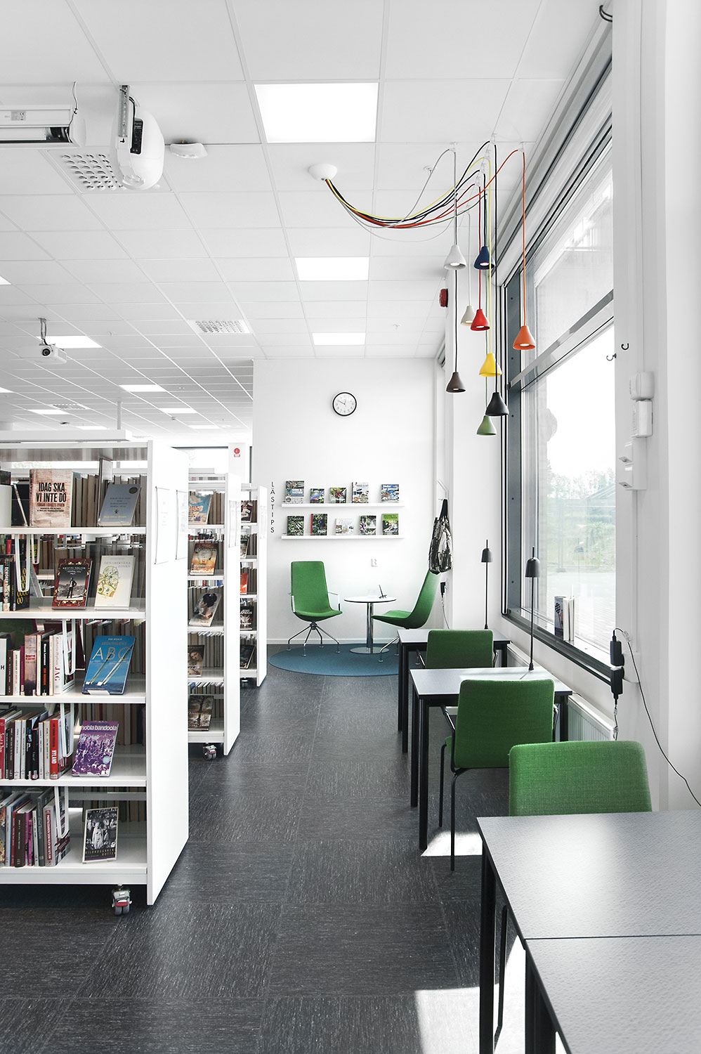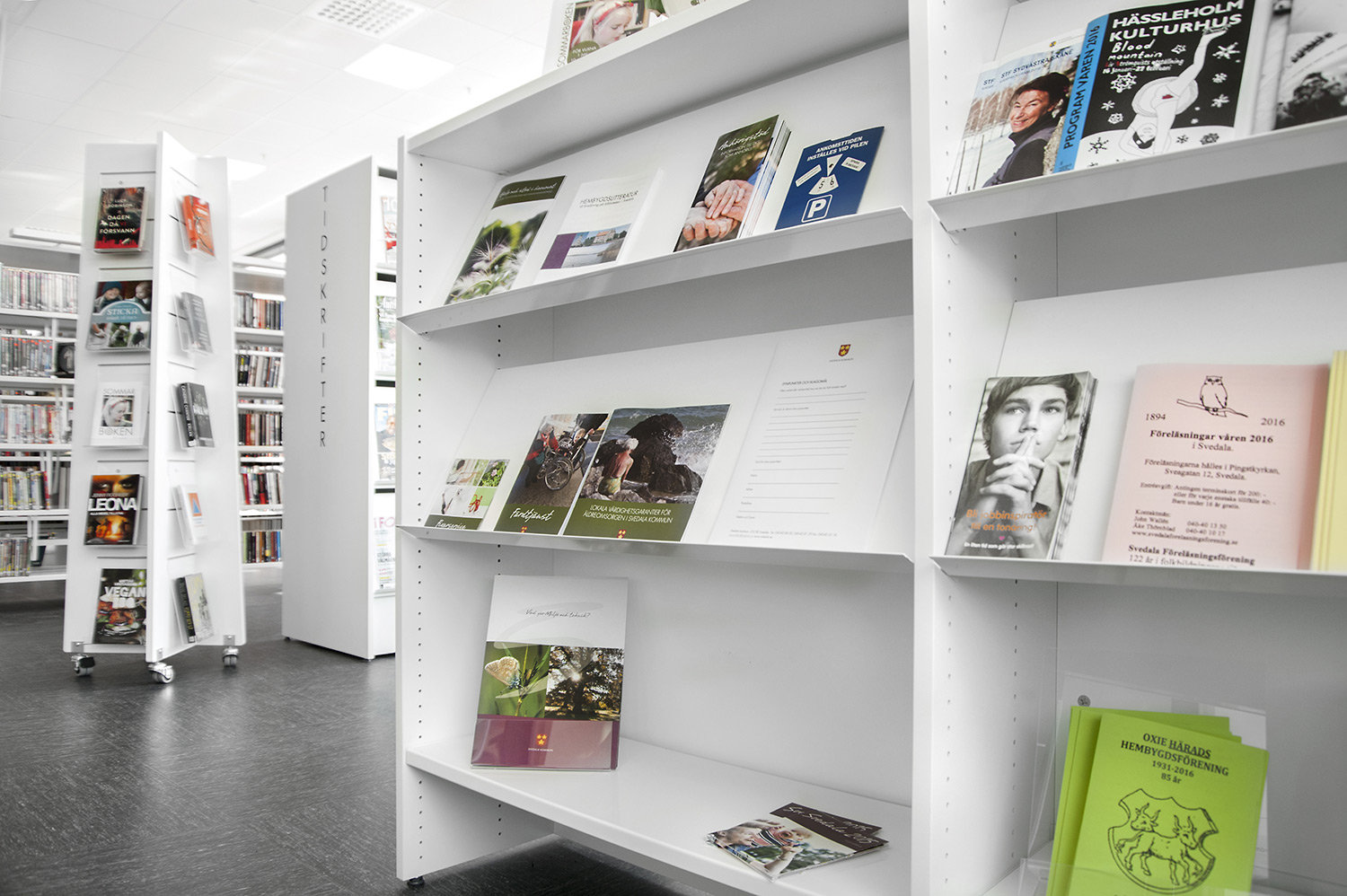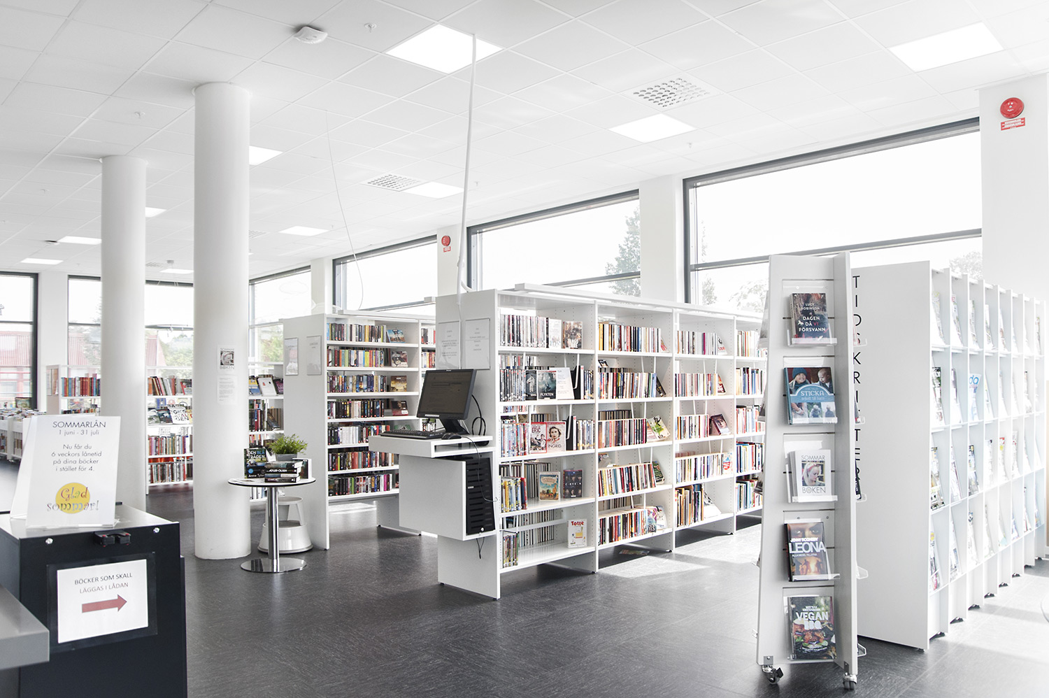 Att allt ska vara tillgängligt ställer krav på möblerna; tex måste både tidskrifter och dagstidningar vara lätta att komma åt. Både senaste nummer men även äldre exemplar. Med funktionen förvaring/exponering i Frontline där dagstidningsförvaring bakom exponeringshyllplanen fungerar utmärkt uppfyllde hyllorna från Lammhults biblioteksdesign dessa krav väl och är idag en mycket uppskattad lösning både hos personal och besökare.