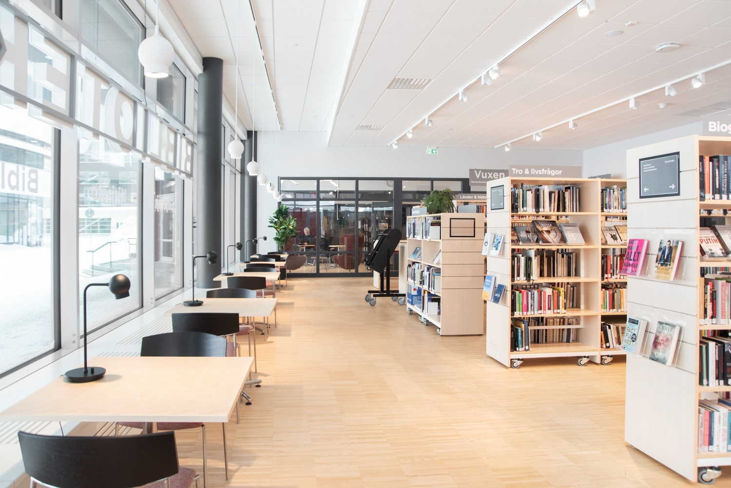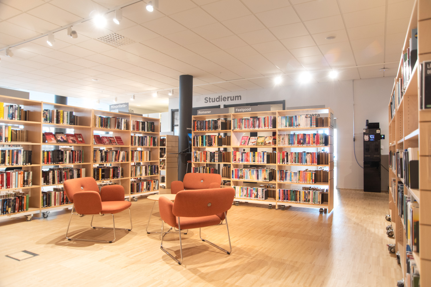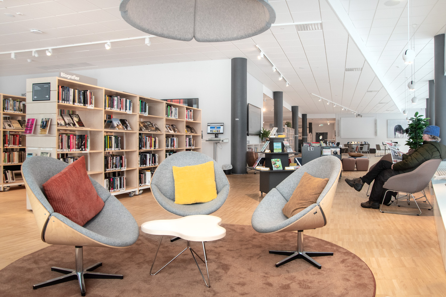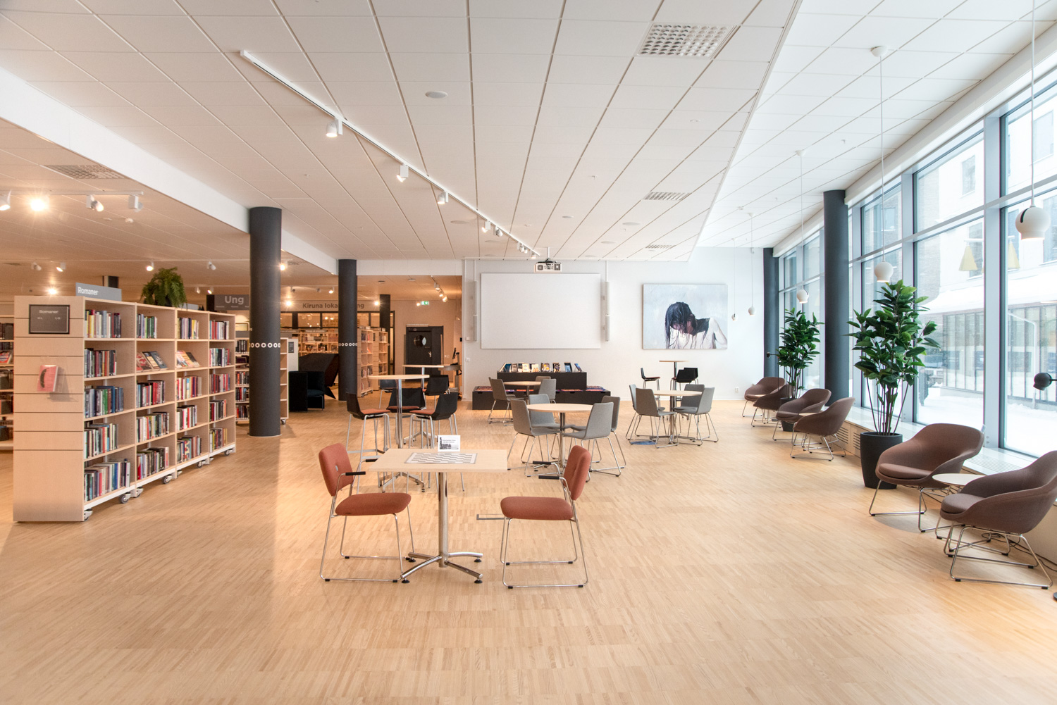 Stadens bibliotek har också flyttats, och i samband med flytten till ett nytt kulturcentrum har bibliotekets interiör gjorts om med i huvudsak befintliga möbler.