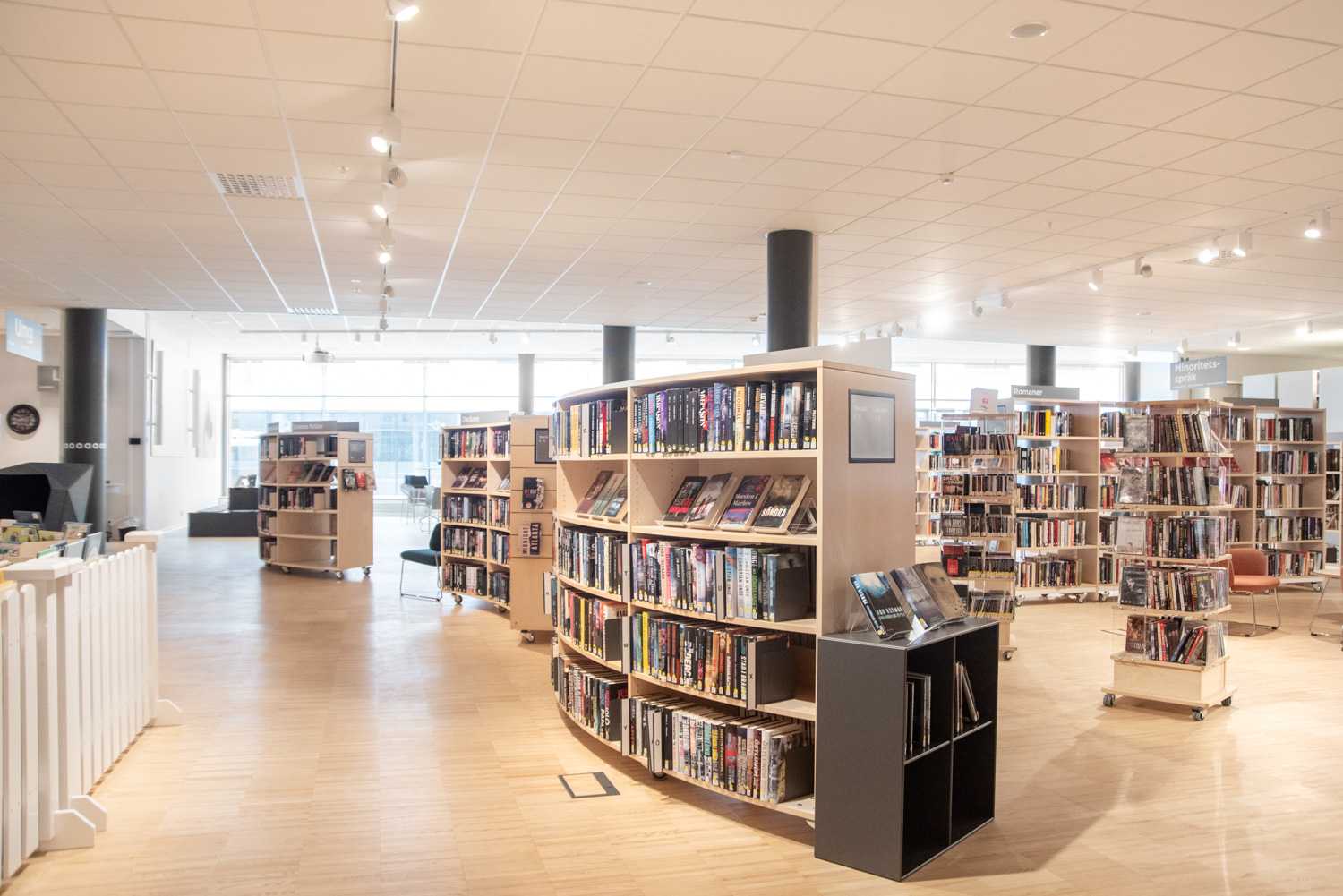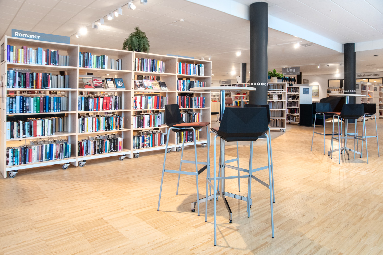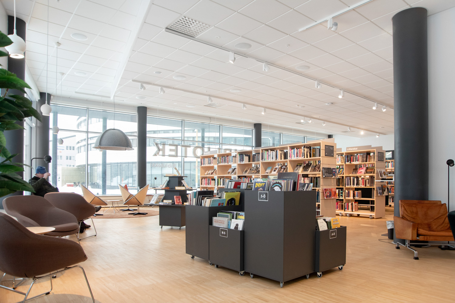 Stadens bibliotek har också flyttats, och i samband med flytten till ett nytt kulturcentrum har bibliotekets interiör gjorts om med i huvudsak befintliga möbler.