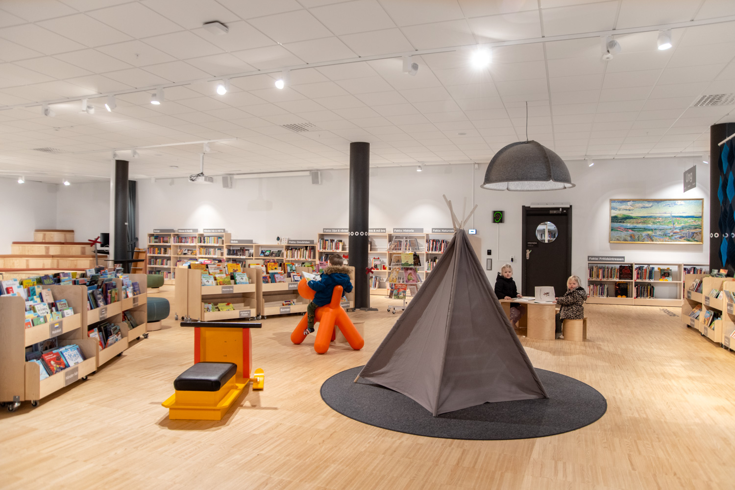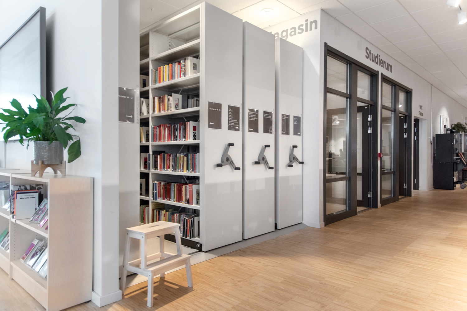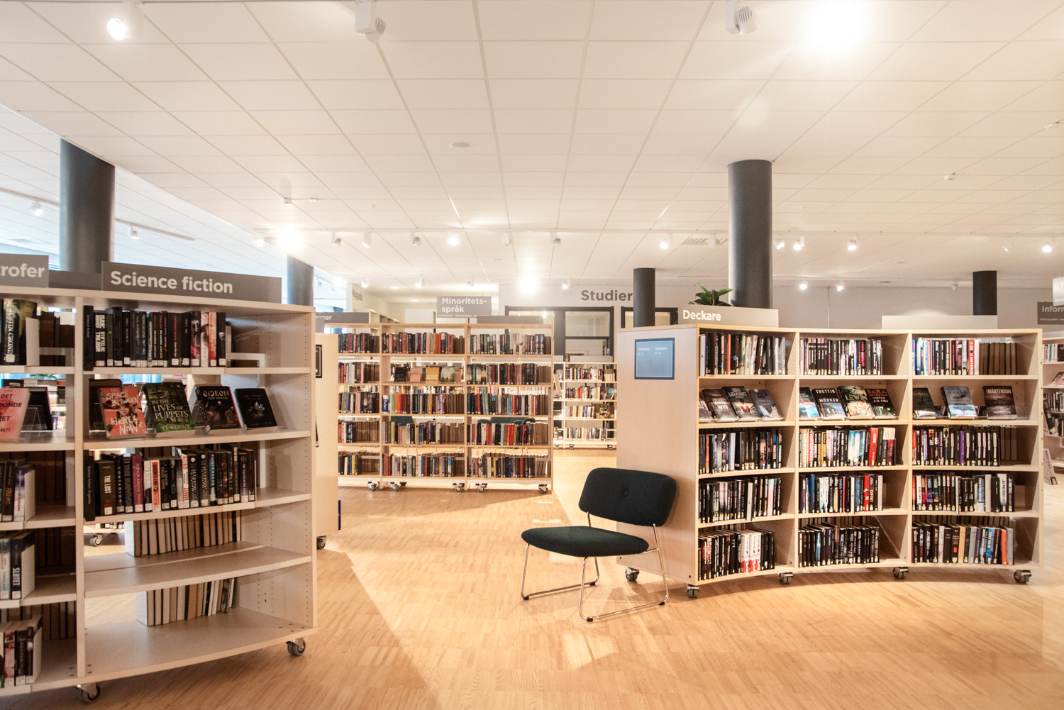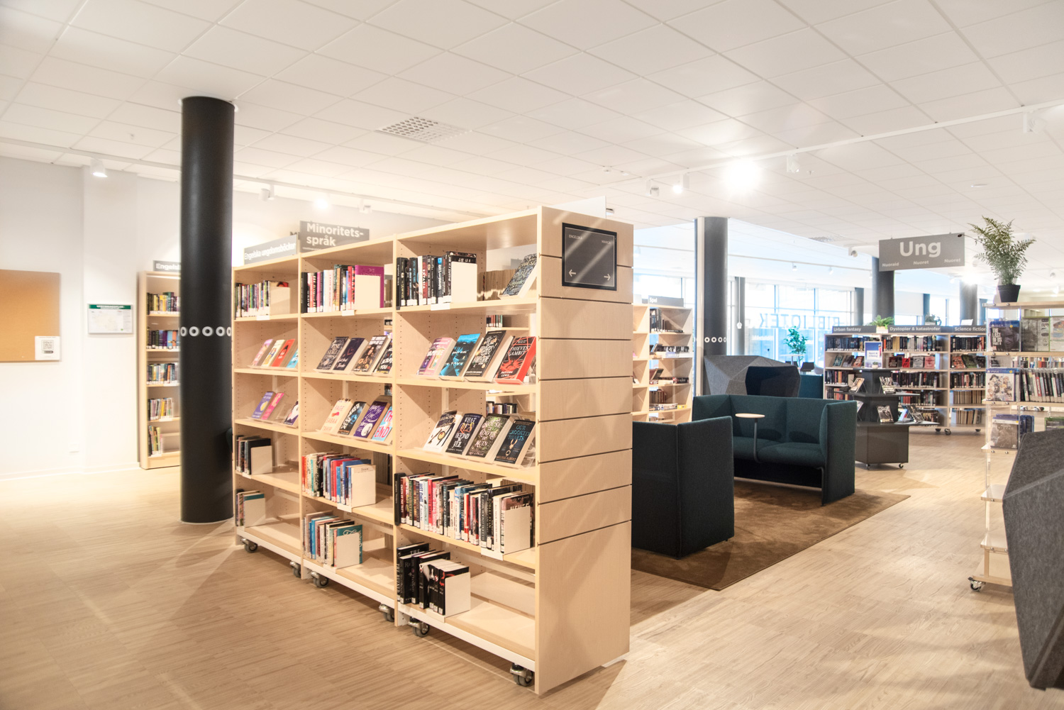 Stadens bibliotek har också flyttats, och i samband med flytten till ett nytt kulturcentrum har bibliotekets interiör gjorts om med i huvudsak befintliga möbler.