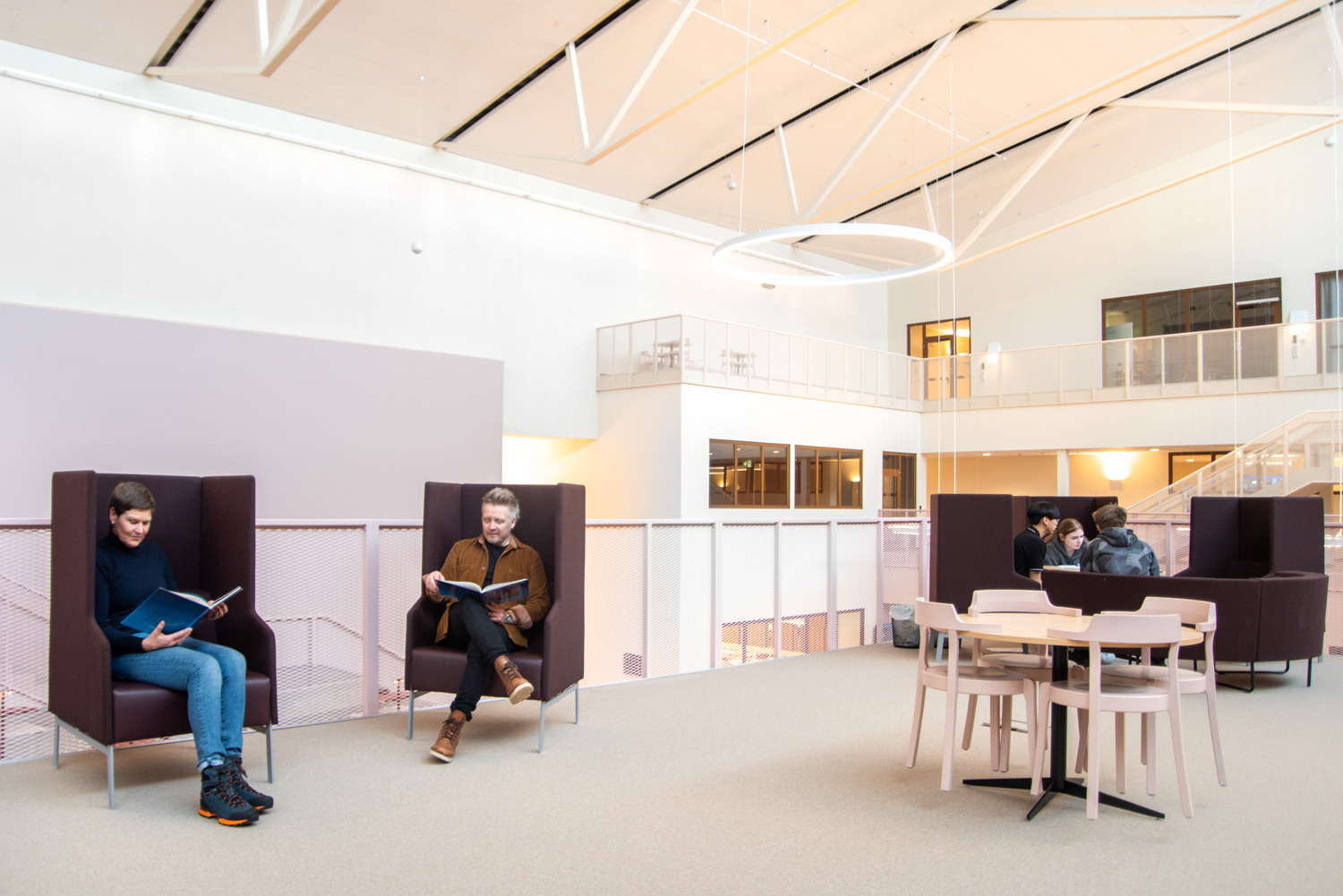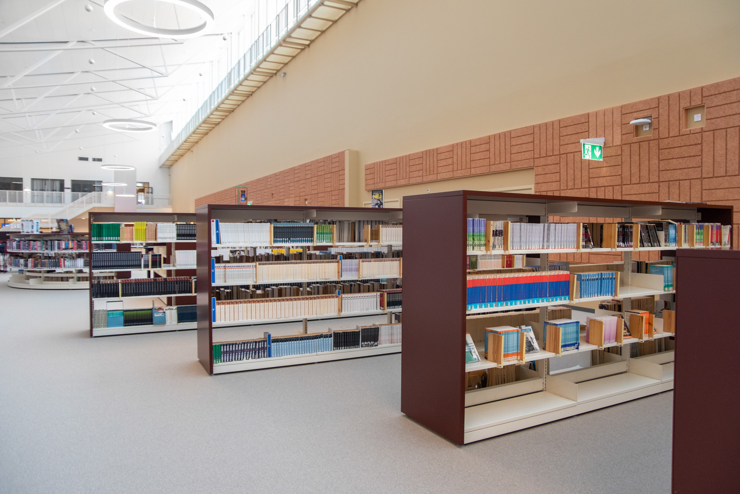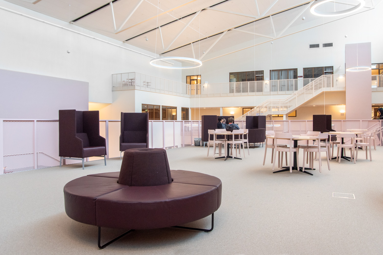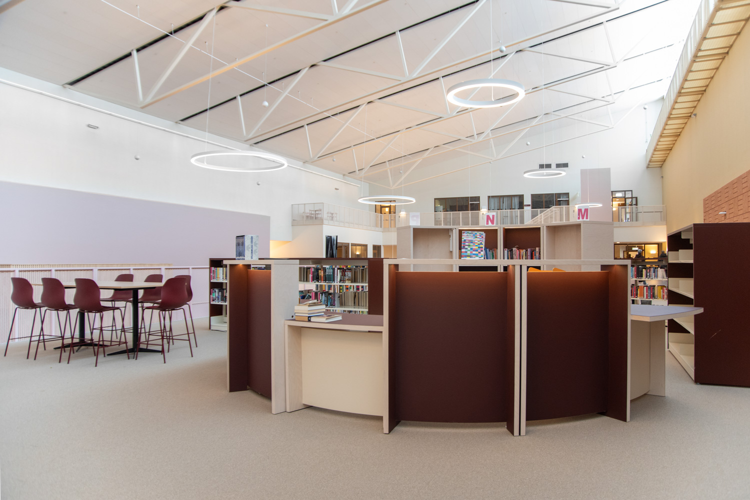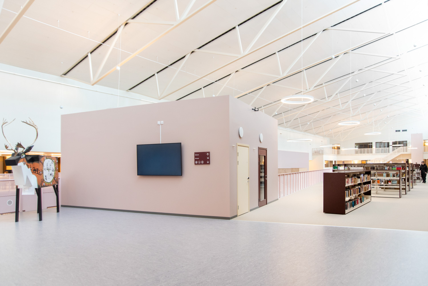 I hjärtat av byggnaden finns ett centralt torg som utgör en länk mellan kunskapsstaden och resten av stadskärnan. Härifrån leds besökaren in i ett rymligt atrium där stadens och skolans verksamheter möts i ett gemensamt och offentligt rum. Här ligger också biblioteket, där en generös mängd dagsljus kommer från stora glaspaneler på taket, vilket inbjuder besökarna att titta upp mot himlen och följa årstidernas olika skiftningar.