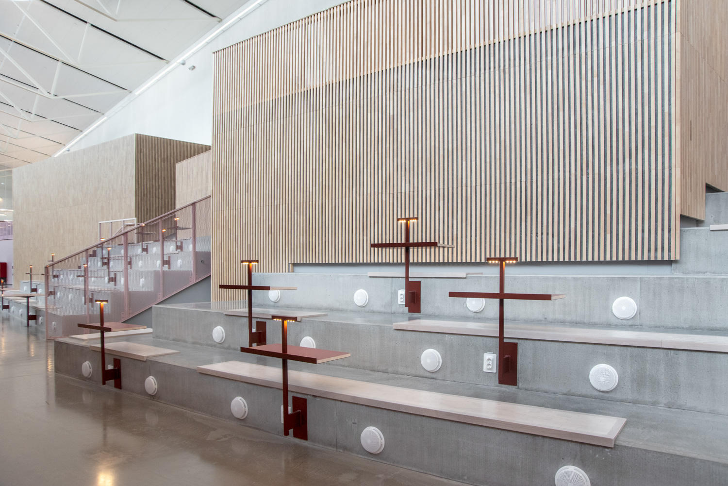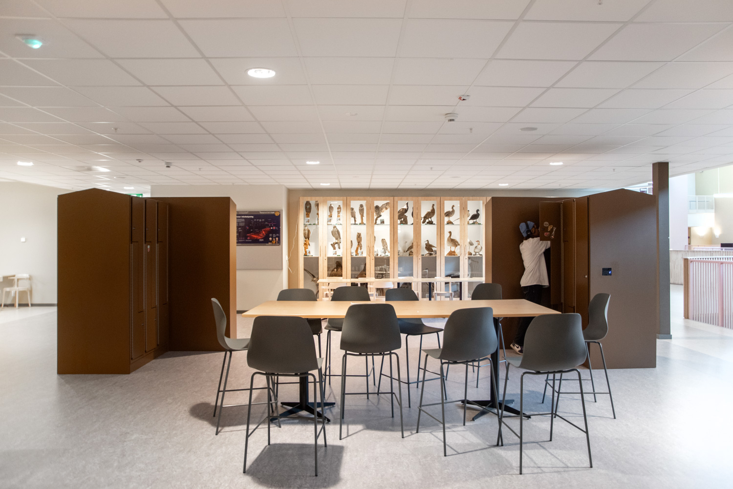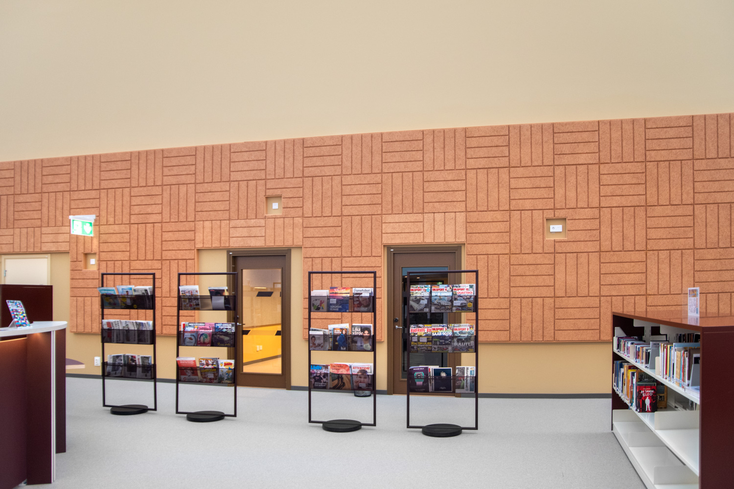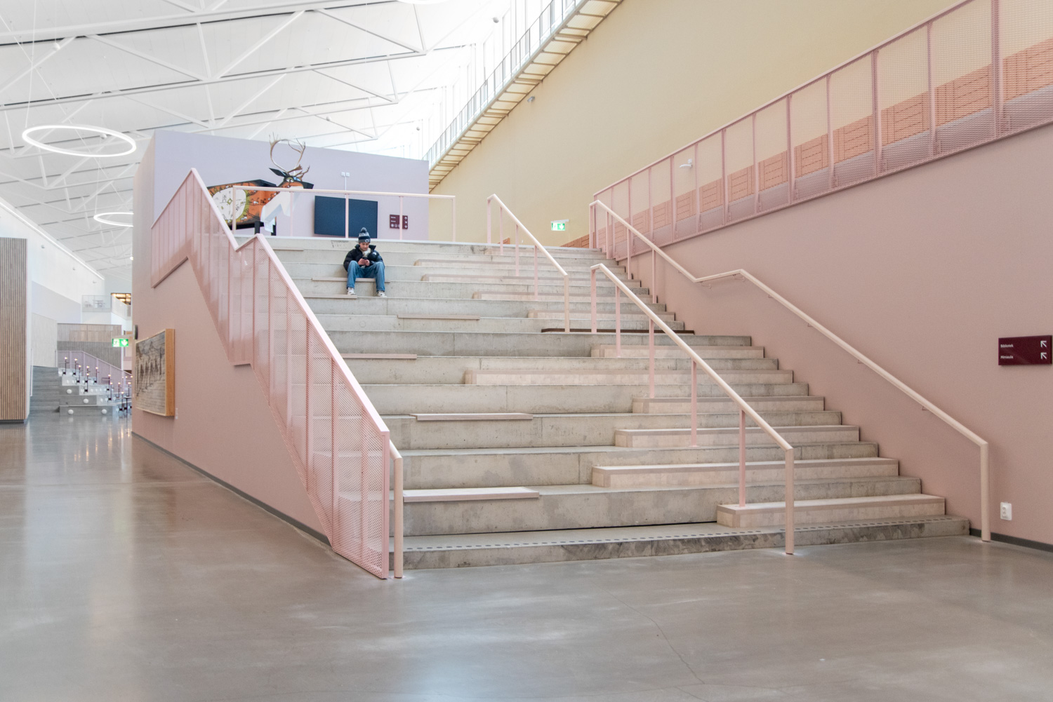 I hjärtat av byggnaden finns ett centralt torg som utgör en länk mellan kunskapsstaden och resten av stadskärnan. Härifrån leds besökaren in i ett rymligt atrium där stadens och skolans verksamheter möts i ett gemensamt och offentligt rum. Här ligger också biblioteket, där en generös mängd dagsljus kommer från stora glaspaneler på taket, vilket inbjuder besökarna att titta upp mot himlen och följa årstidernas olika skiftningar.