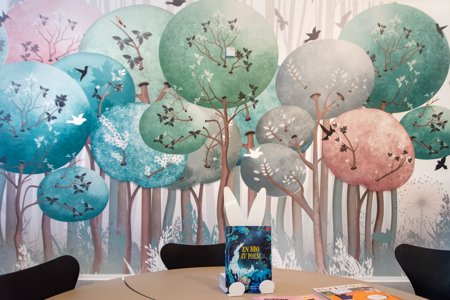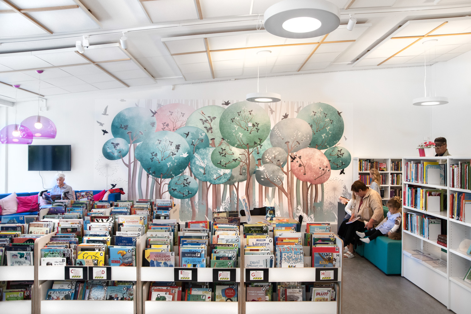 Alla åldersgrupper känner sig nu välkomna på barnavdelningen medan de vuxna kan njuta av ljuset som faller in genom takfönstren samt den fina lokala glaskonsten.