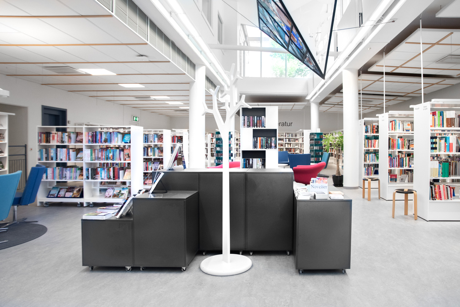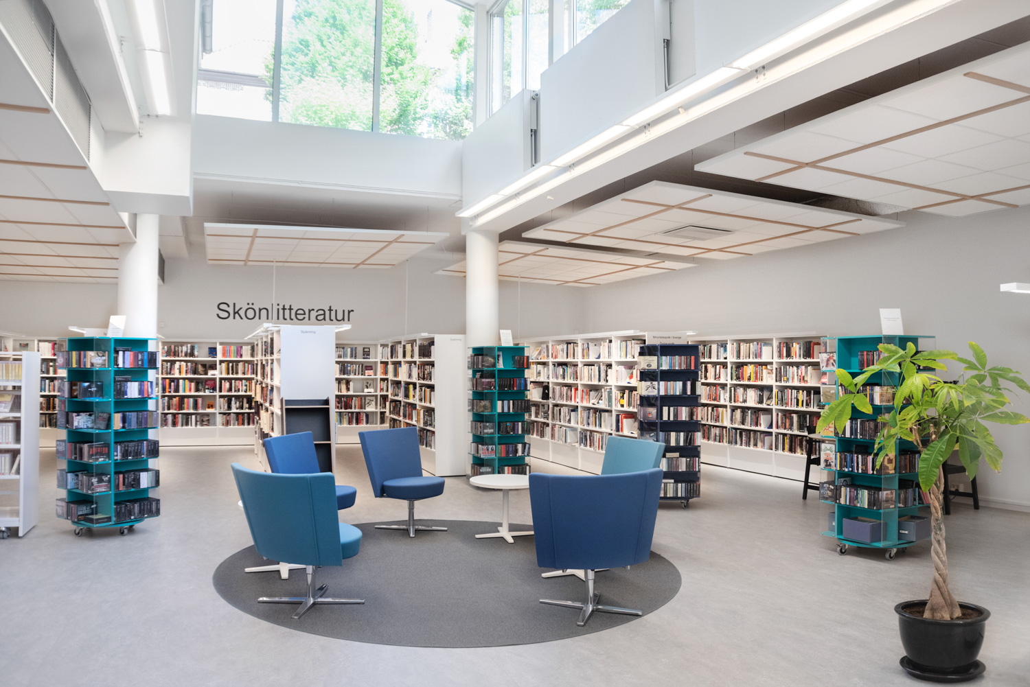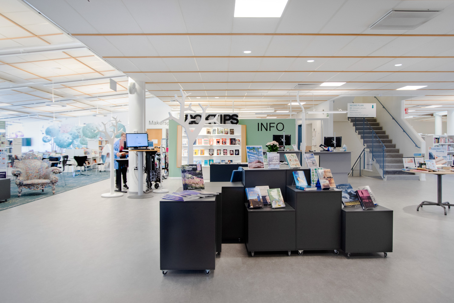 De olika områdena är uppdelade så att man lätt ska hitta rätt. Samtidigt har den nya inredningen gjort att det har blivit gott om plats att vara på, till arrangemang och utställningar.