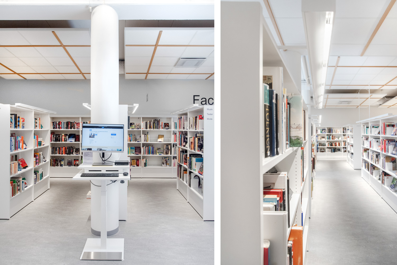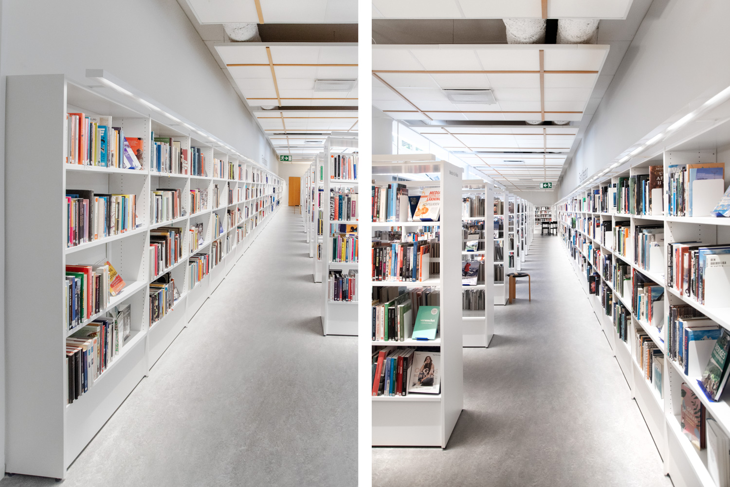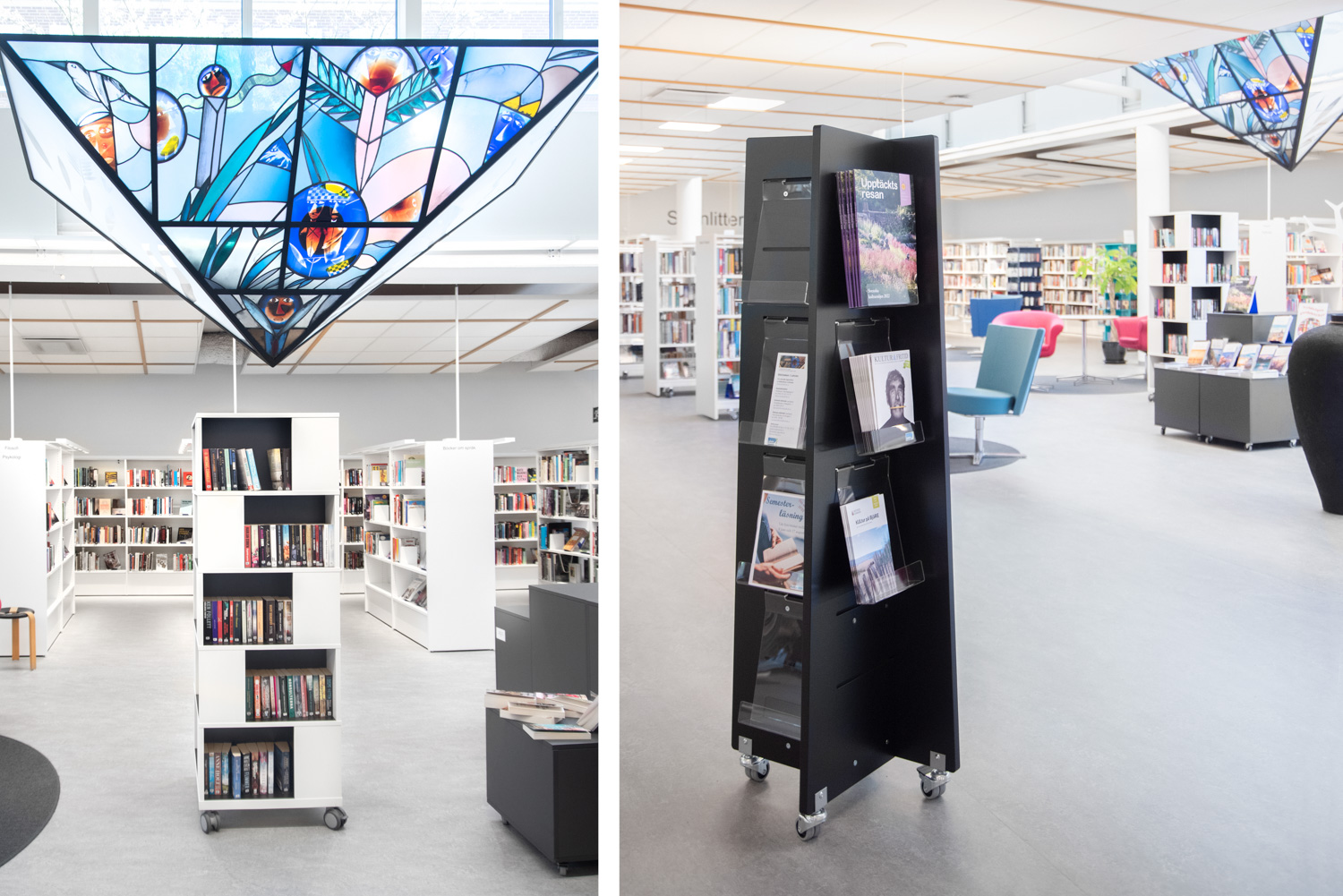 De olika områdena är uppdelade så att man lätt ska hitta rätt. Samtidigt har den nya inredningen gjort att det har blivit gott om plats att vara på, till arrangemang och utställningar.