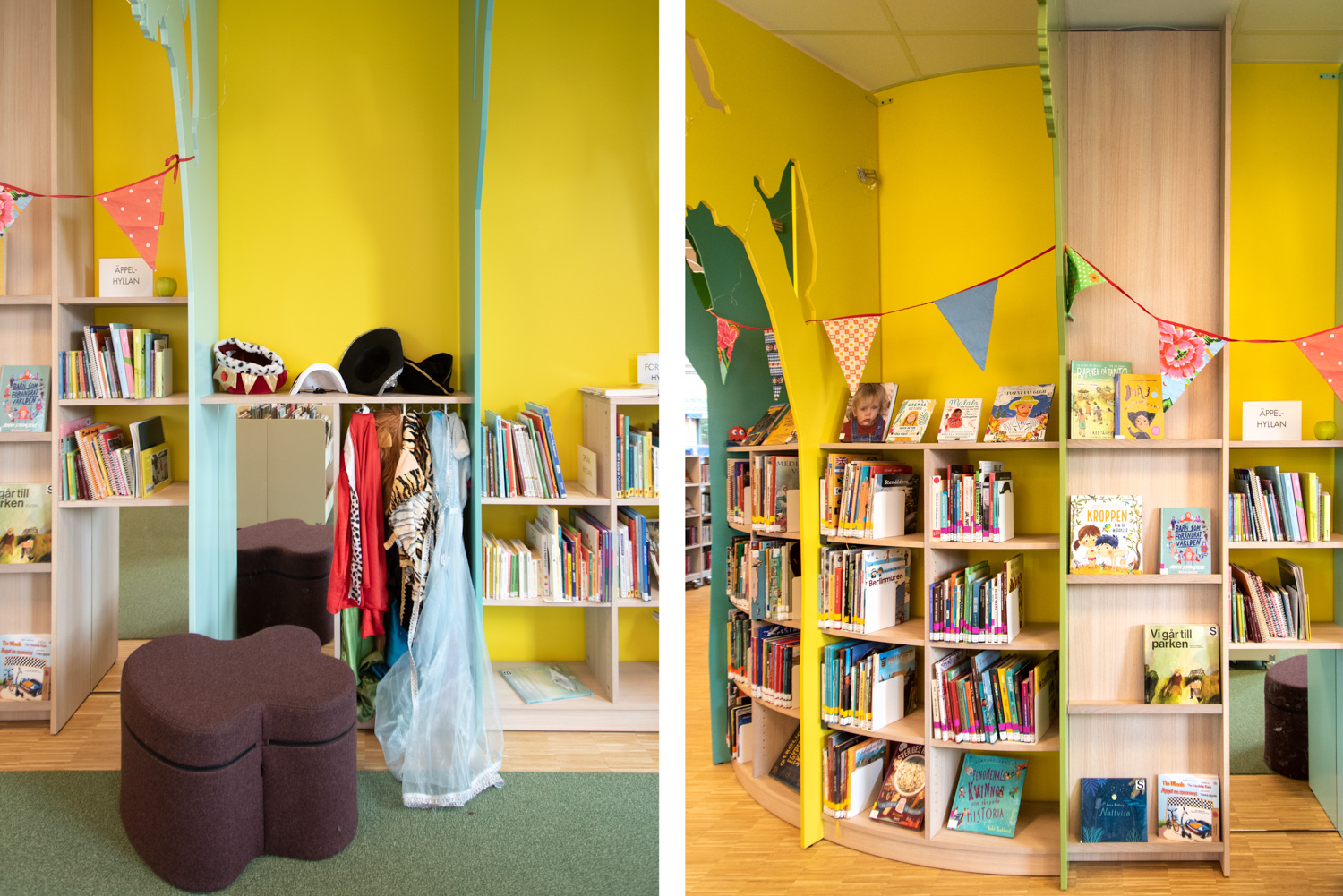 Varje vrå är utnyttjad så det finns plats för avkoppling, fantasi och möteslokaler samtidigt som barnavdelningen med sin specialbyggda skogsbokhylla har blivit det blickfång de drömde om från början.