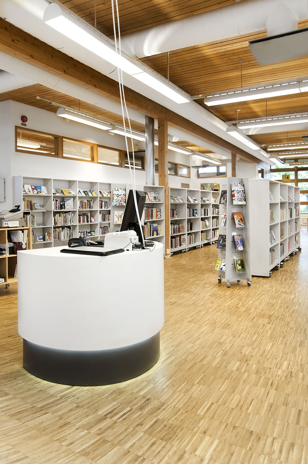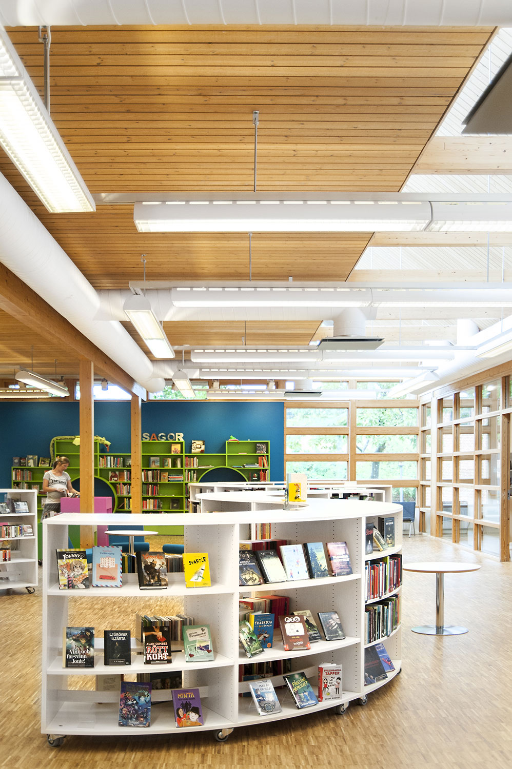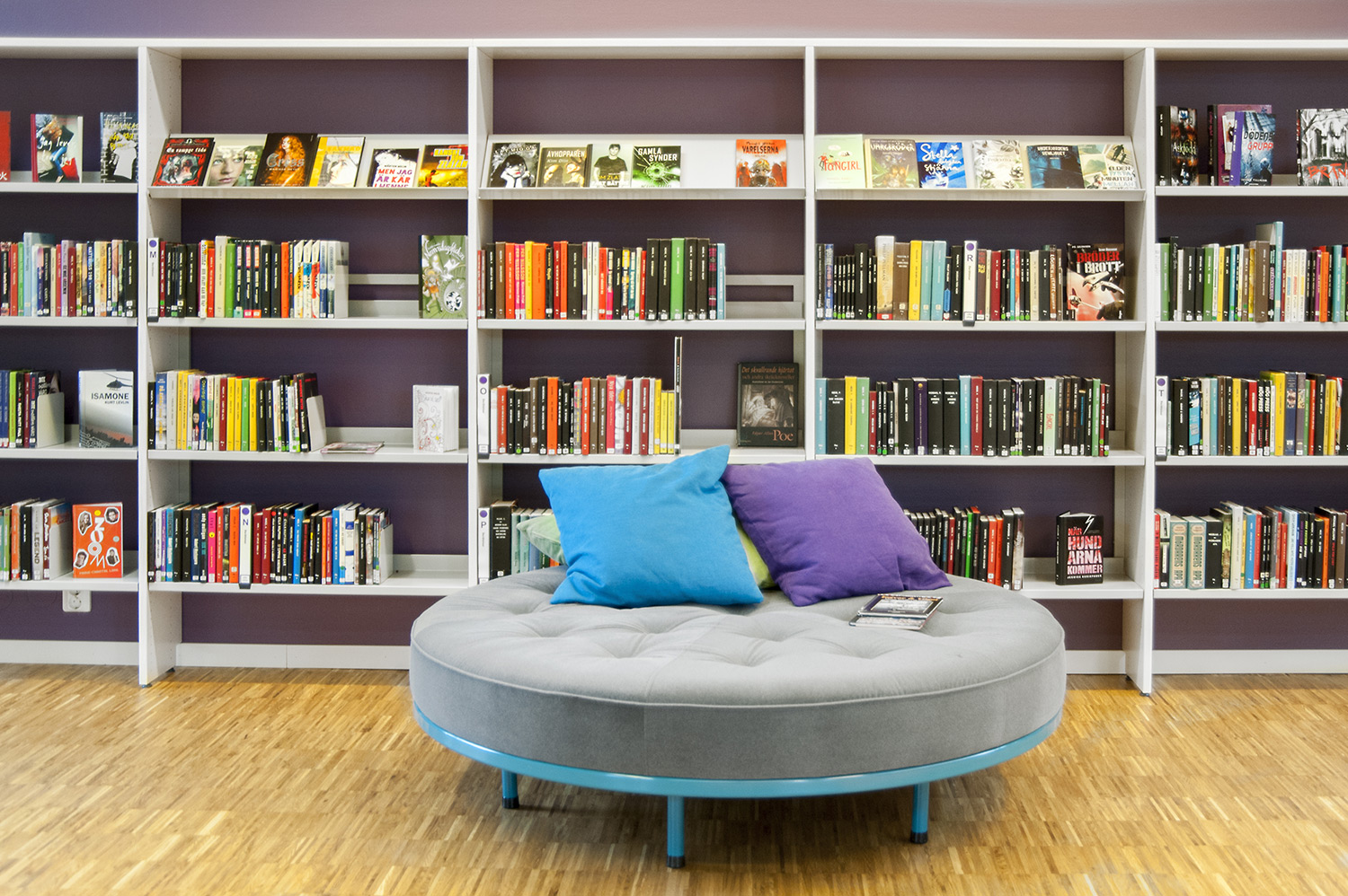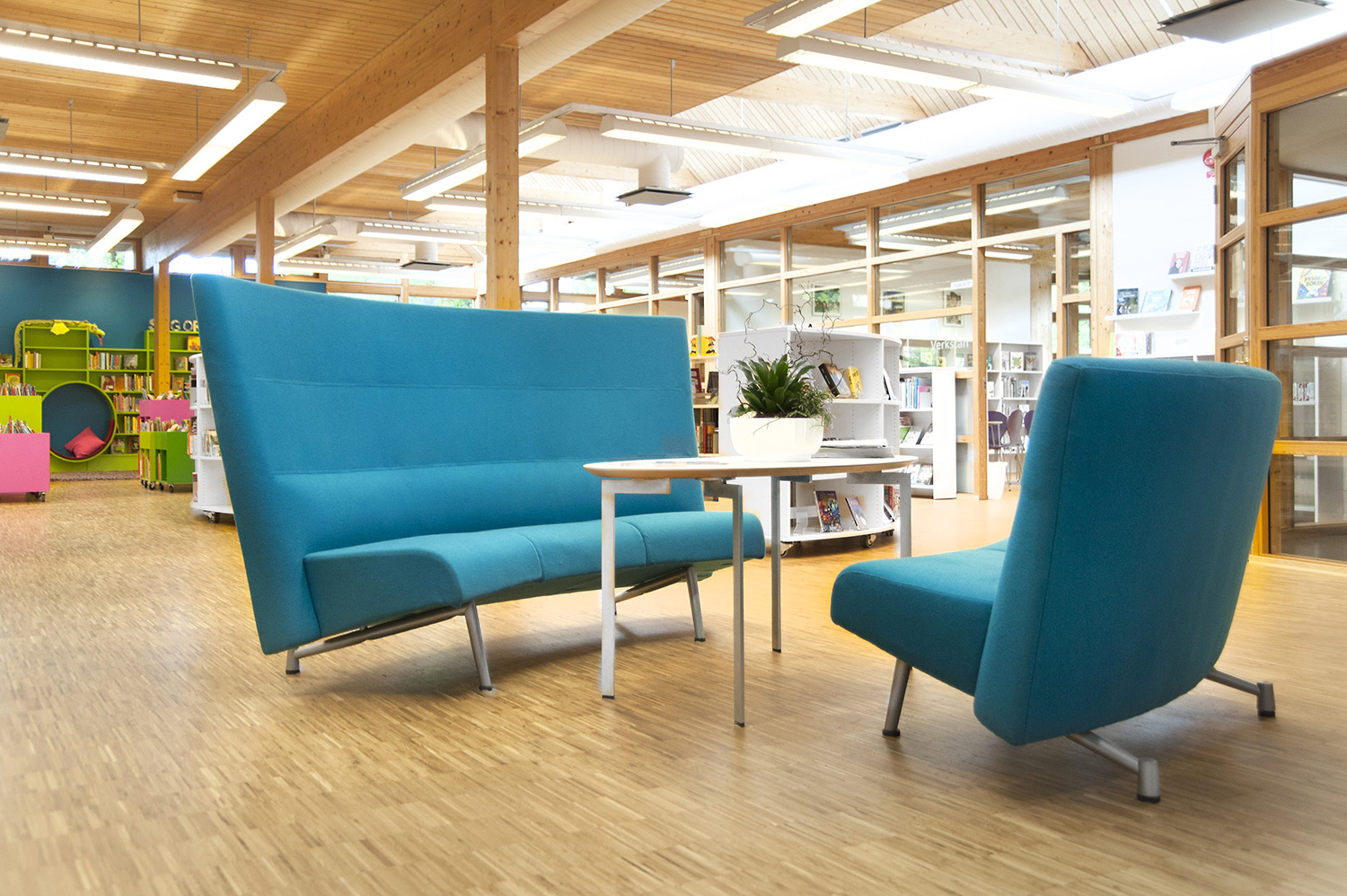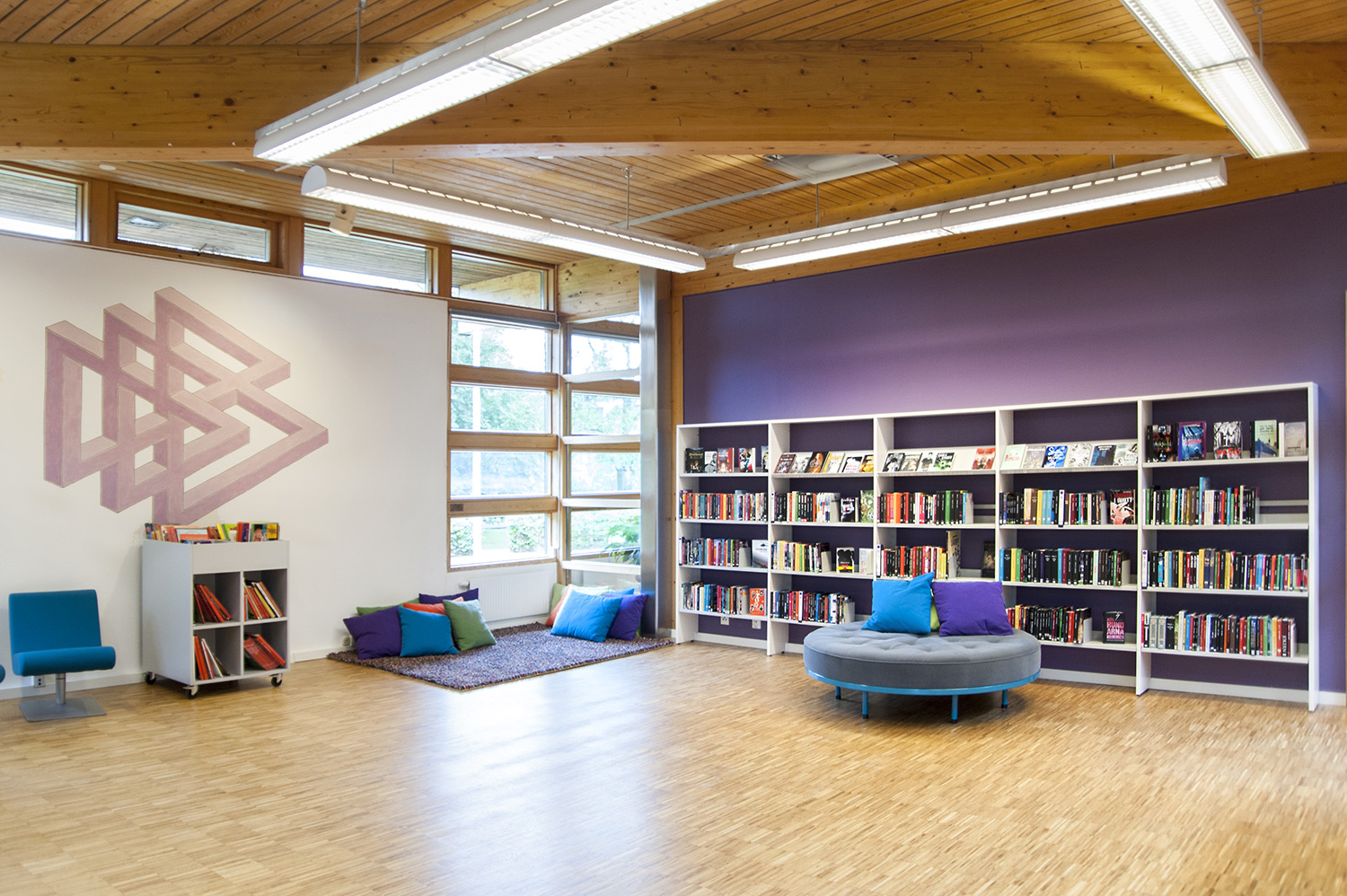 Alla Frontlinehyllor är försedda med hjul för bästa flexibilitet och kan flyttas vid föreläsningar och kulturarrangemang. Ordrup tidskriftshylla pryder sin plats och gör sitt innehåll lättillgängligt medan InfoPodar med inbyggd LED-belysning är placerade vid entrén om man vill rådfråga personalen om något. För fristående exponering av ljudböcker använder man Book Tower på hjul.