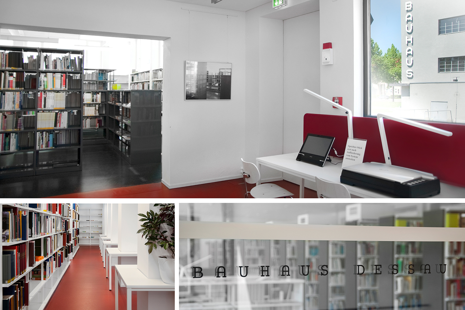 Bauhaus-stiftelsens bibliotek används som ett offentligt forsknings- och informationsbibliotek för såväl Bauhaus’ historia som vanligt projektarbete. Efter 20 år i tillfälliga lokaler ger det nya biblioteket en permanent lösning. Samlingen är en av de mest betydande i sitt slag i Europa.