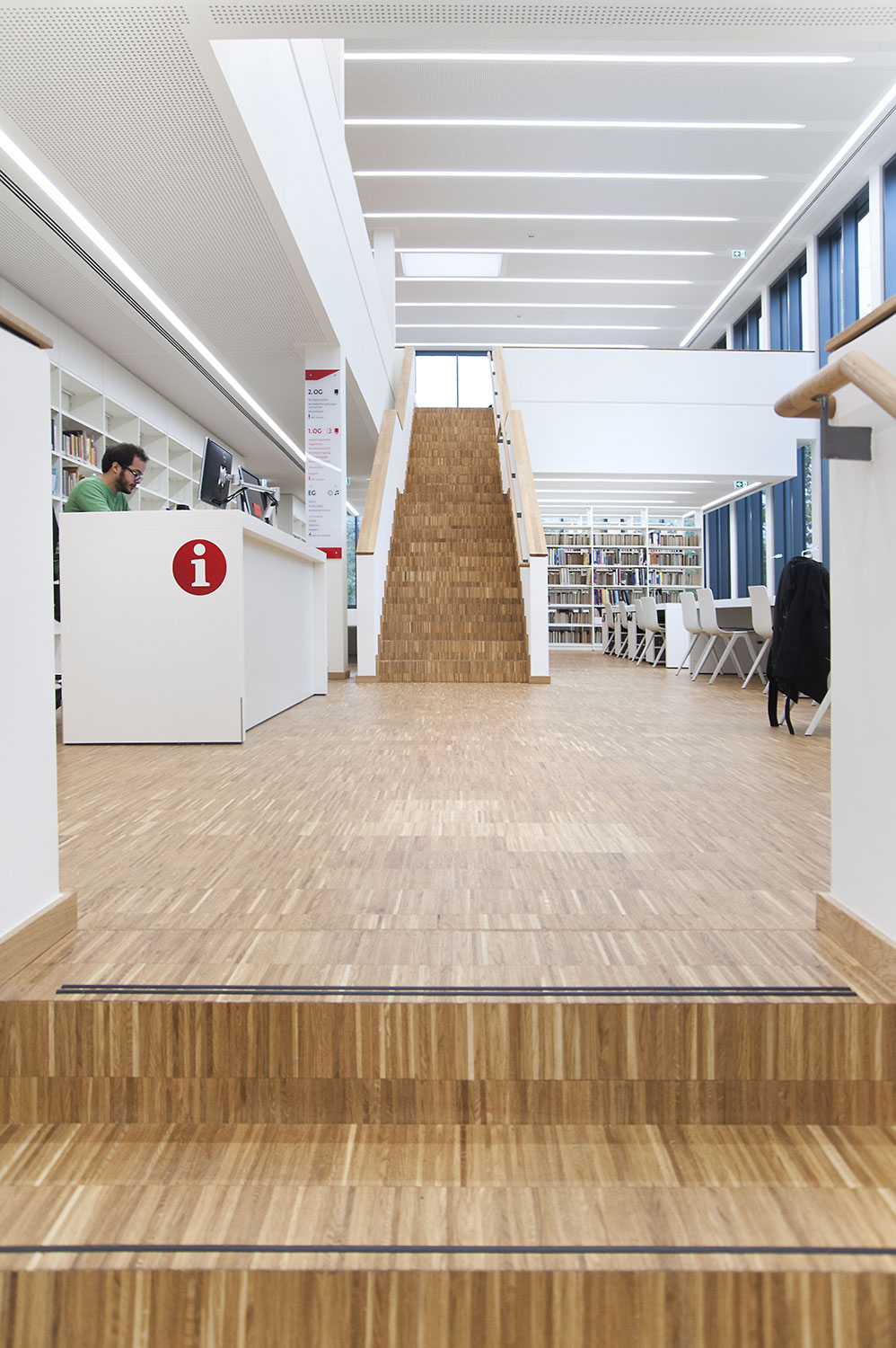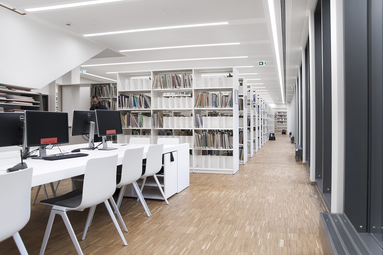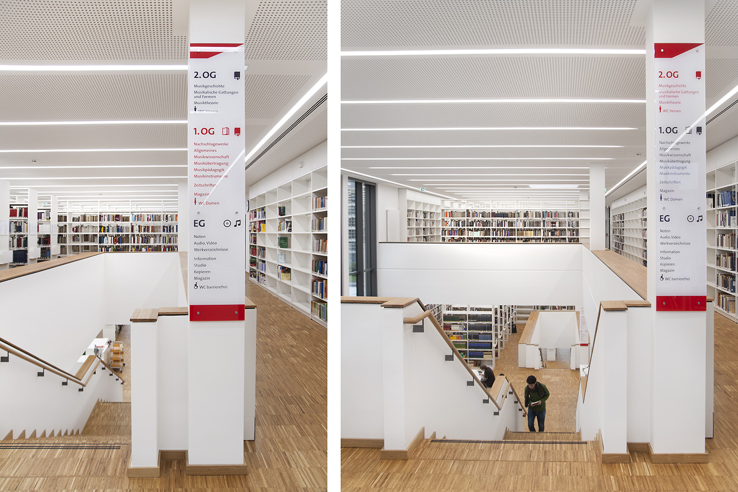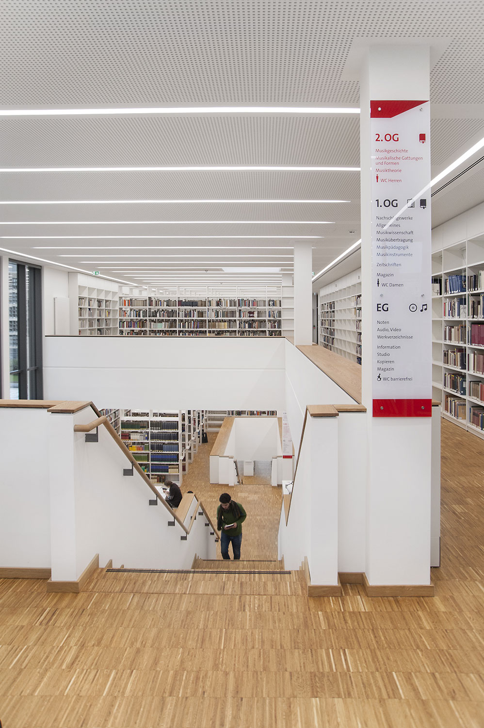 Det nya biblioteket och Lippe bibliotek (LLB) bildar tillsamman med grannen Landesarchiv (lokalt arkiv) NRW Abt OstWestfalenLippe (LAV) ”Forskningscenter | Bibliotek | Musik".