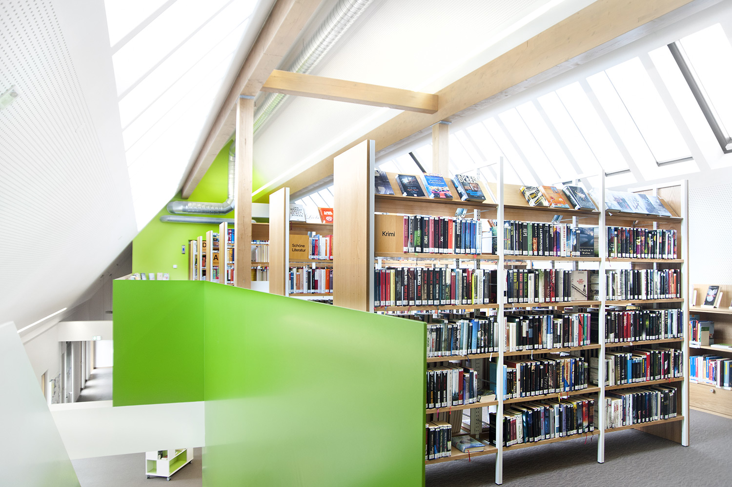 Gammertingens folkbibliotek öppnade 2015 i ett renoverat slott med en modern tillbyggnad.