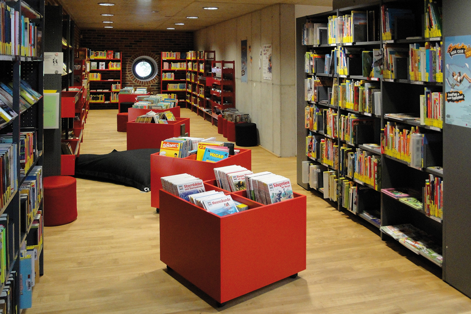 Biblioteket erbjuder ett omfattande utbud av medier för barn i alla åldrar. Dessutom erbjuder biblioteket läsprogram, guidade turer för skolklasser och barnaktiviteter, vilket också gör det högintressant för dagis och skolor. Avdelningarna finns på två våningar tillgängliga via trappa eller hiss.