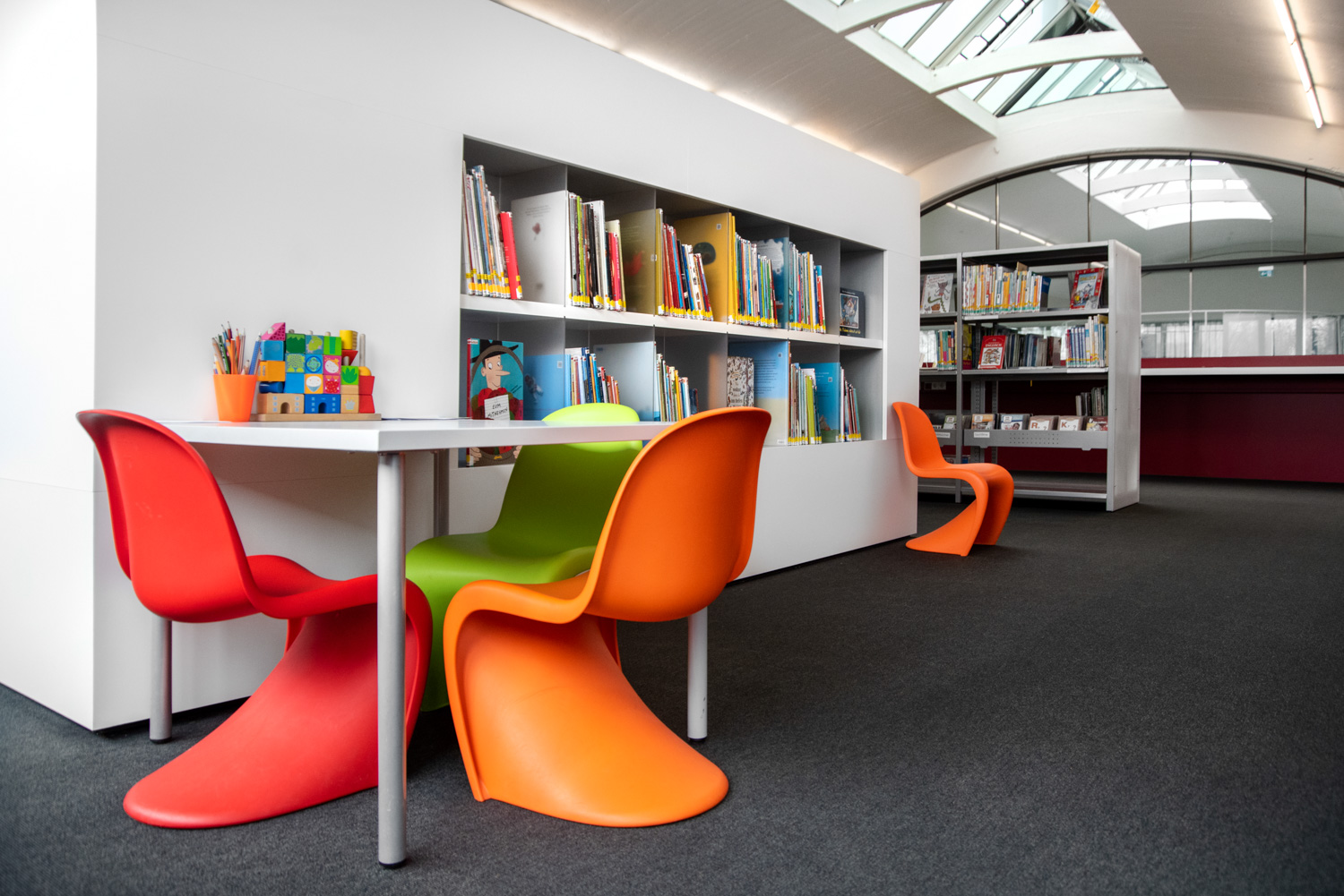 Här har detta realiserats på ett fint sätt av arkitekterna med många små detaljer. Badande i ljus, med gott om plats och ett lekfullt uttryck erbjuder Mössingens bibliotek sina besökare en behaglig och rymlig mötesplats.