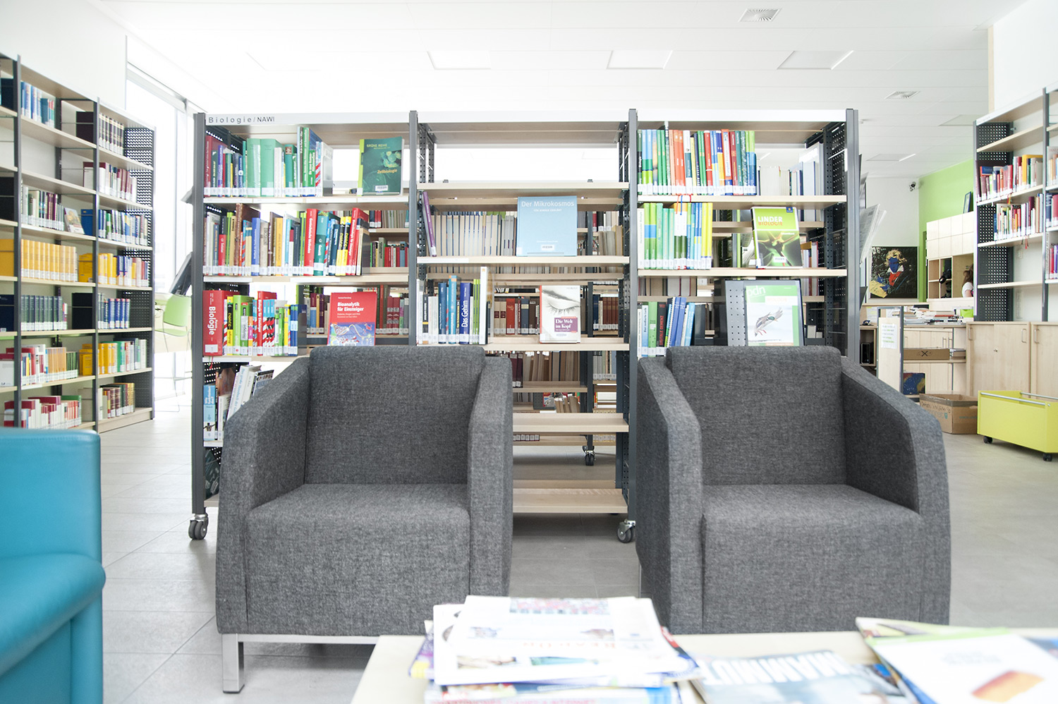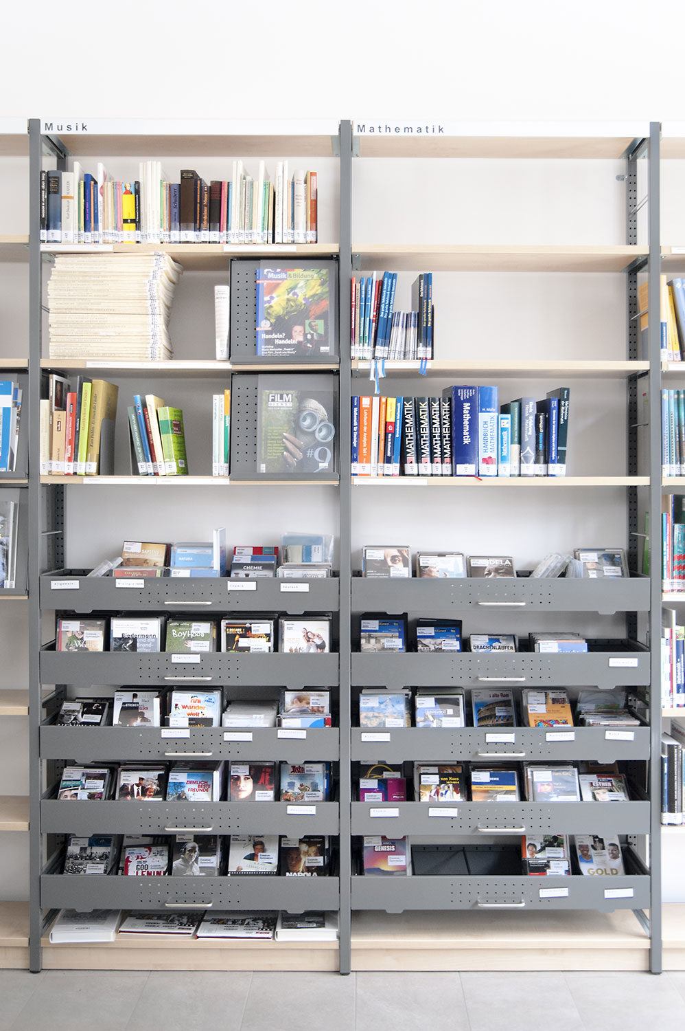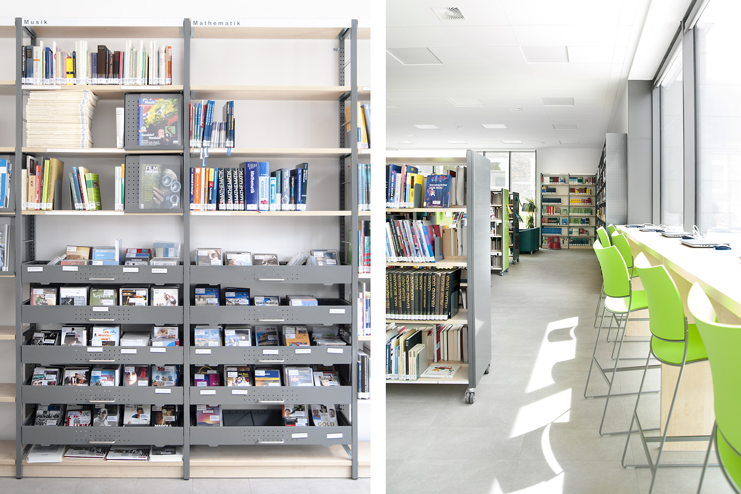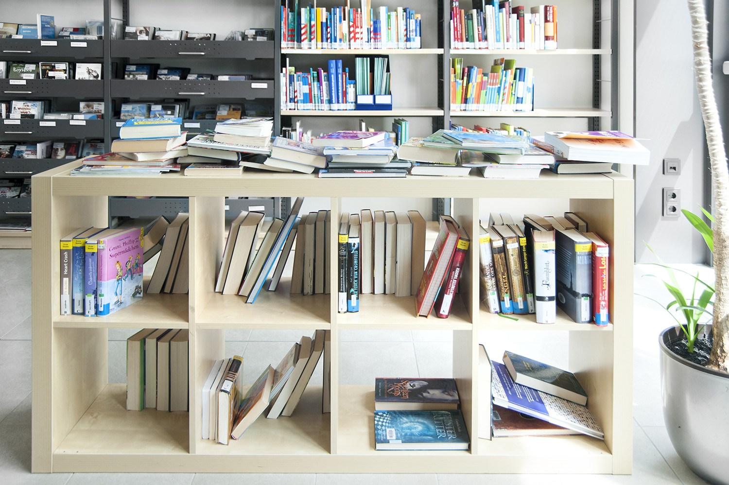 Produkter som används på Casanus skolbibliotek, Wittlich, Tyskland