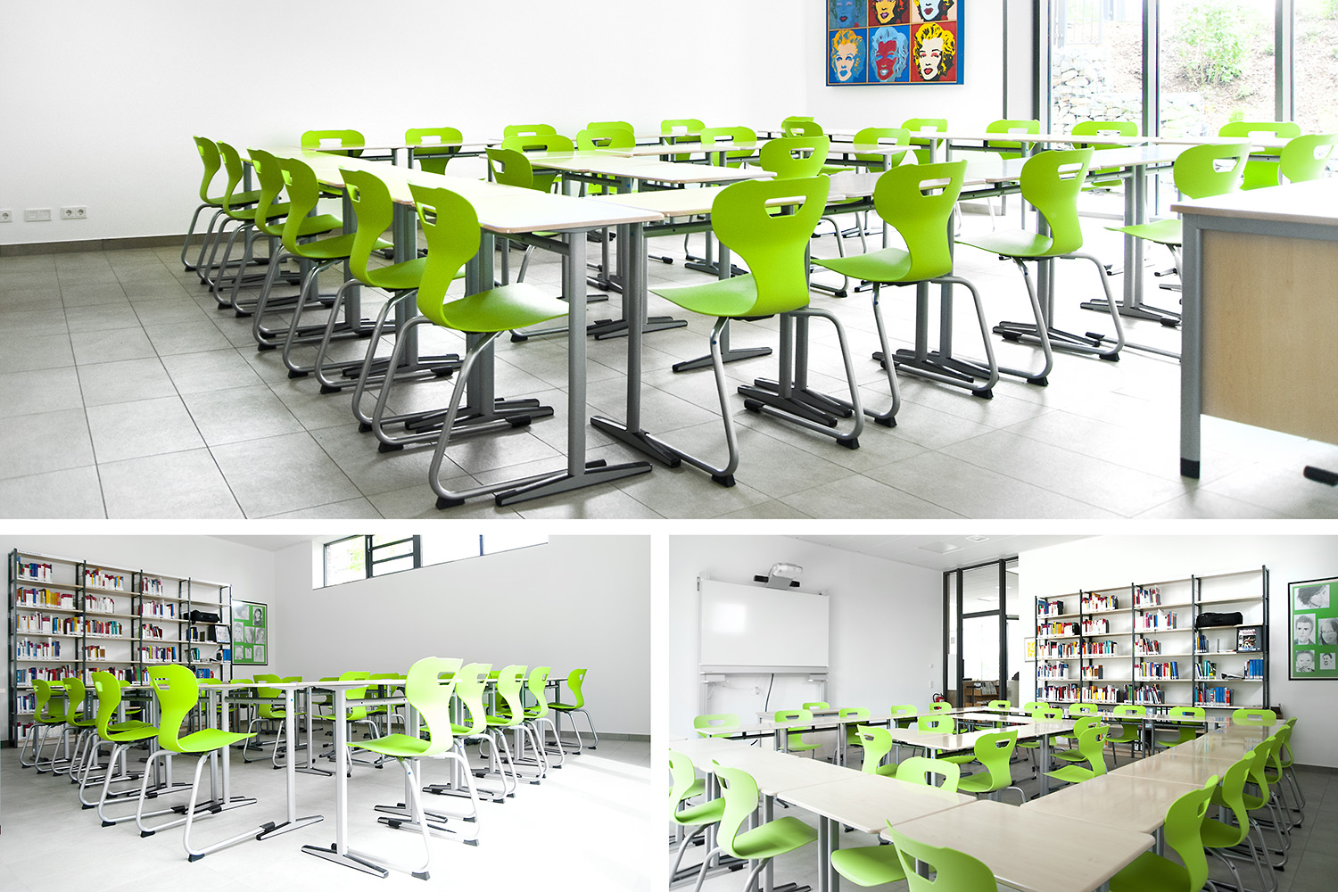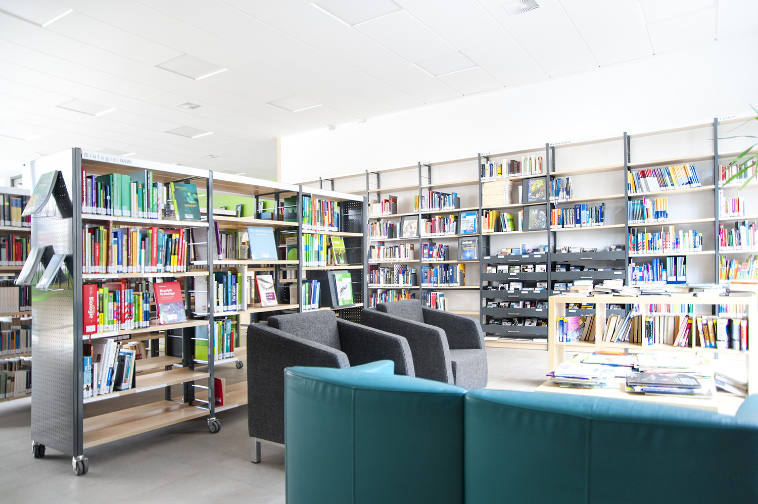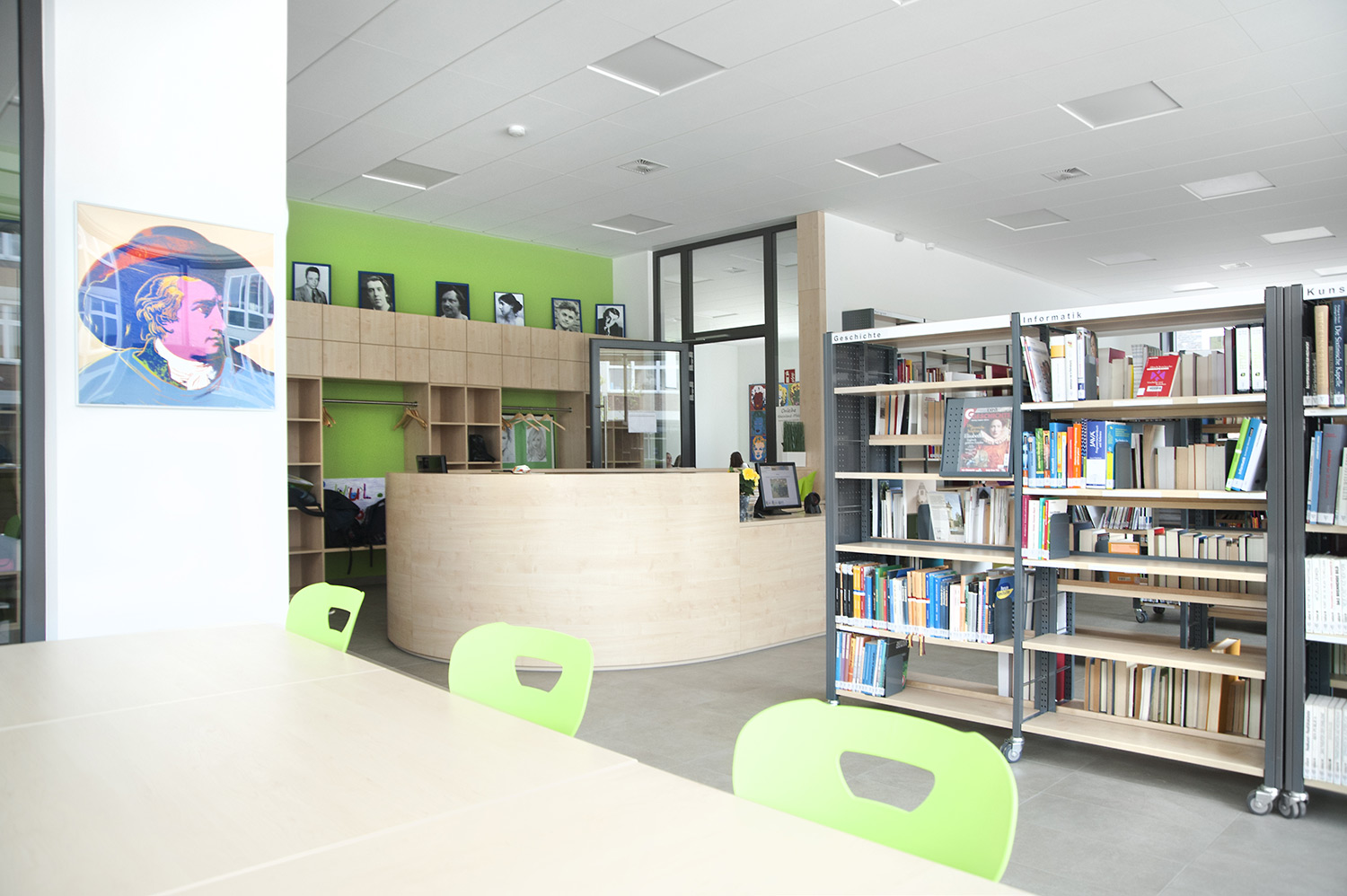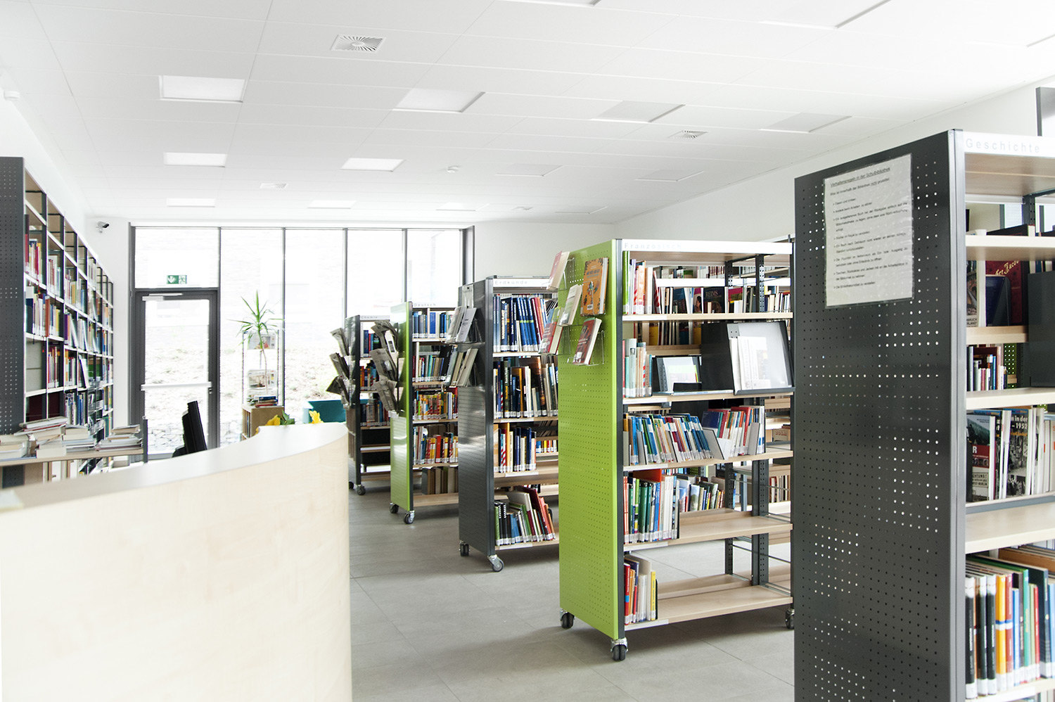 Produkter som används på Casanus skolbibliotek, Wittlich, Tyskland